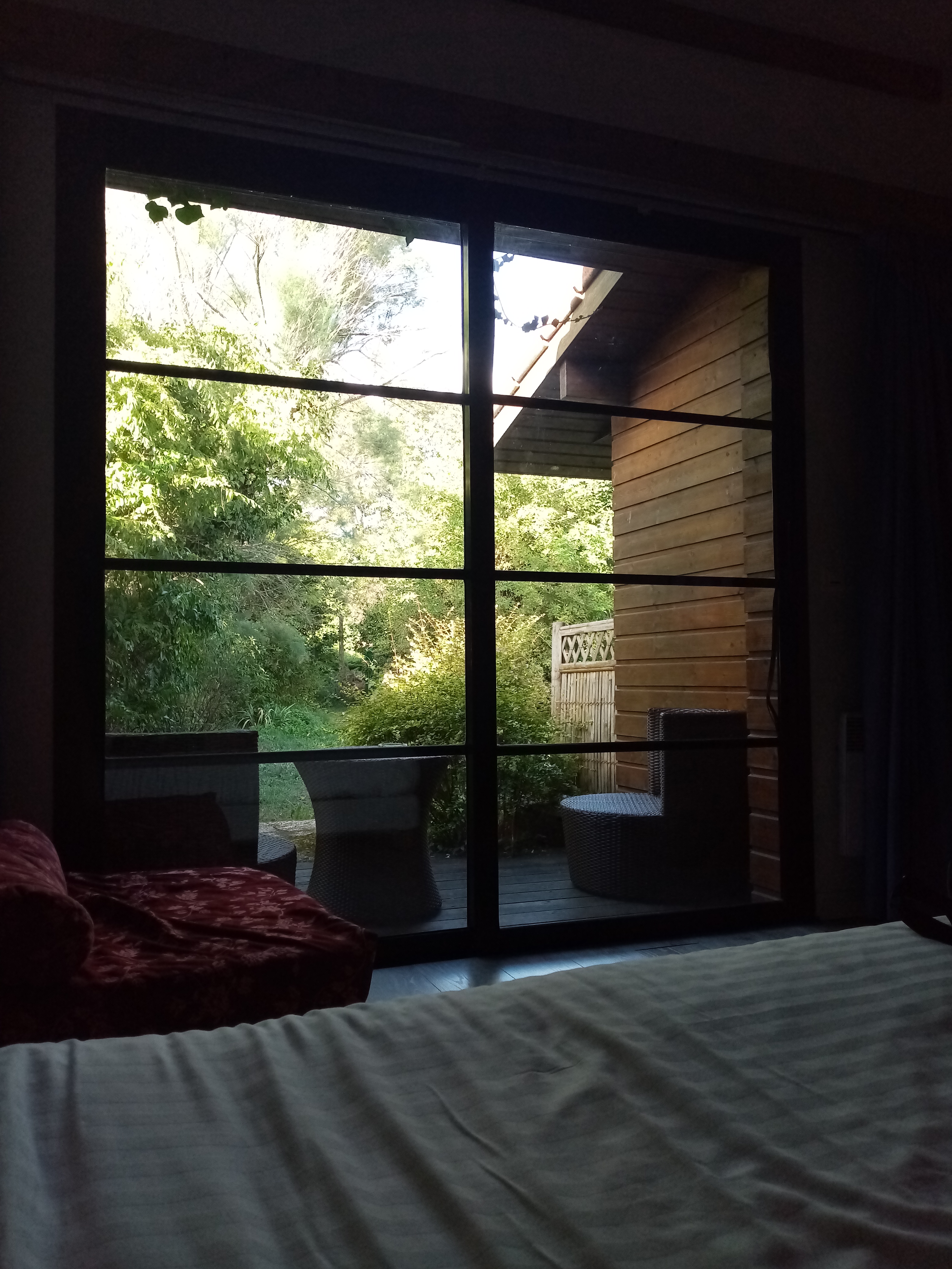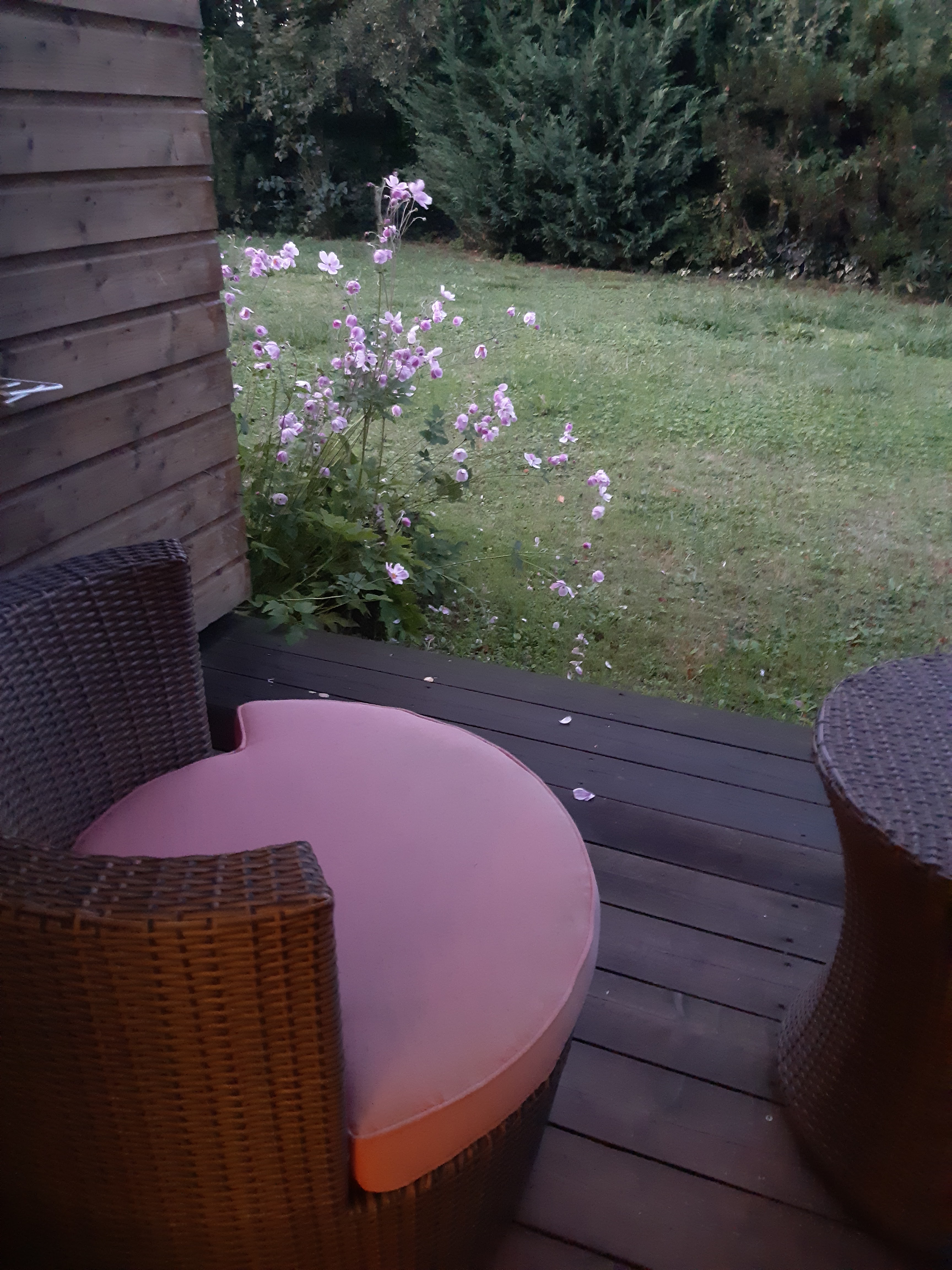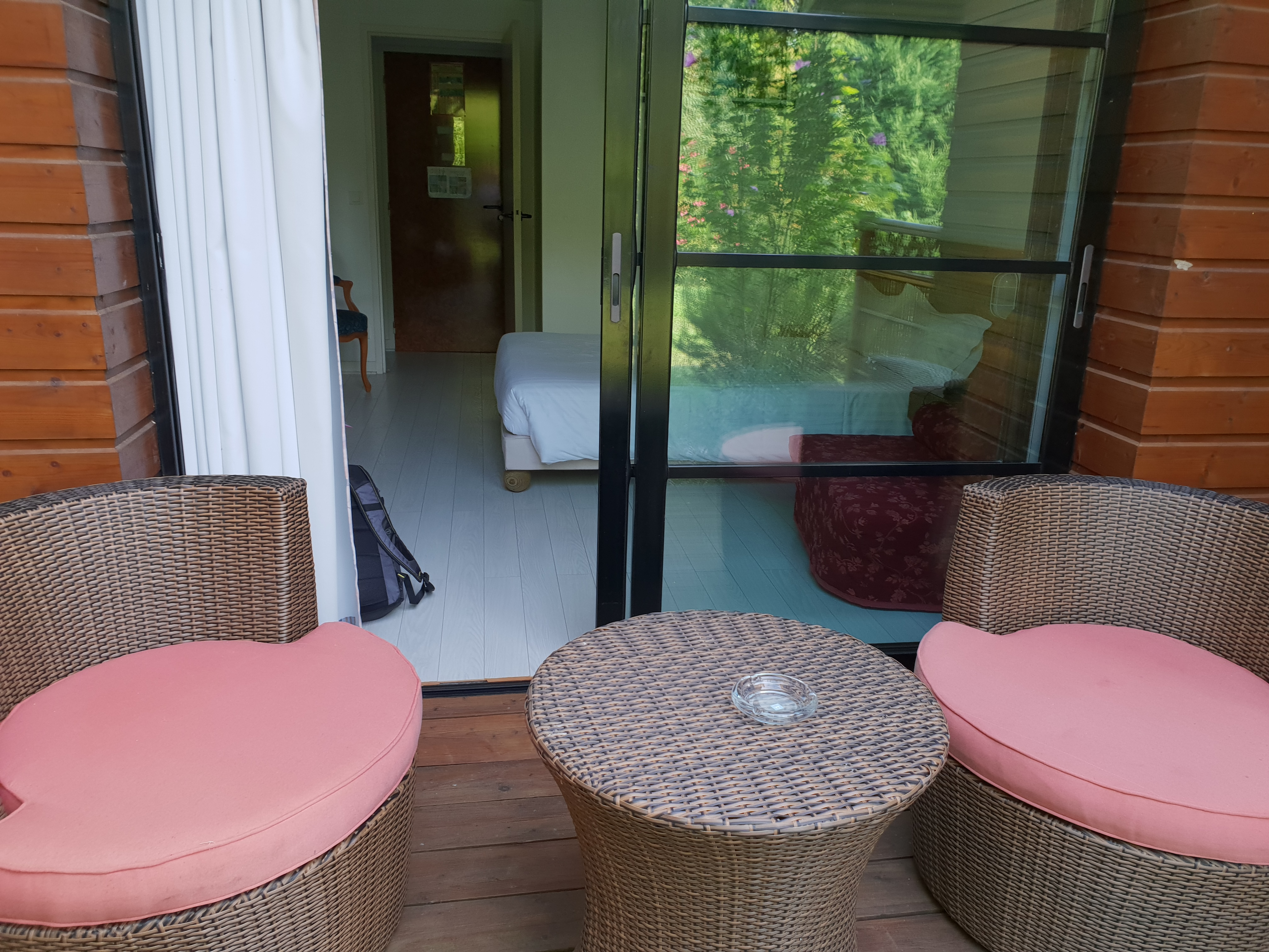 Chambre de plain-pied avec la pelouse,avec petite terrasse privative..petit déjeuner correct ,repas du soir sur agréable terrasse couverte ,choix de plats un peu juste