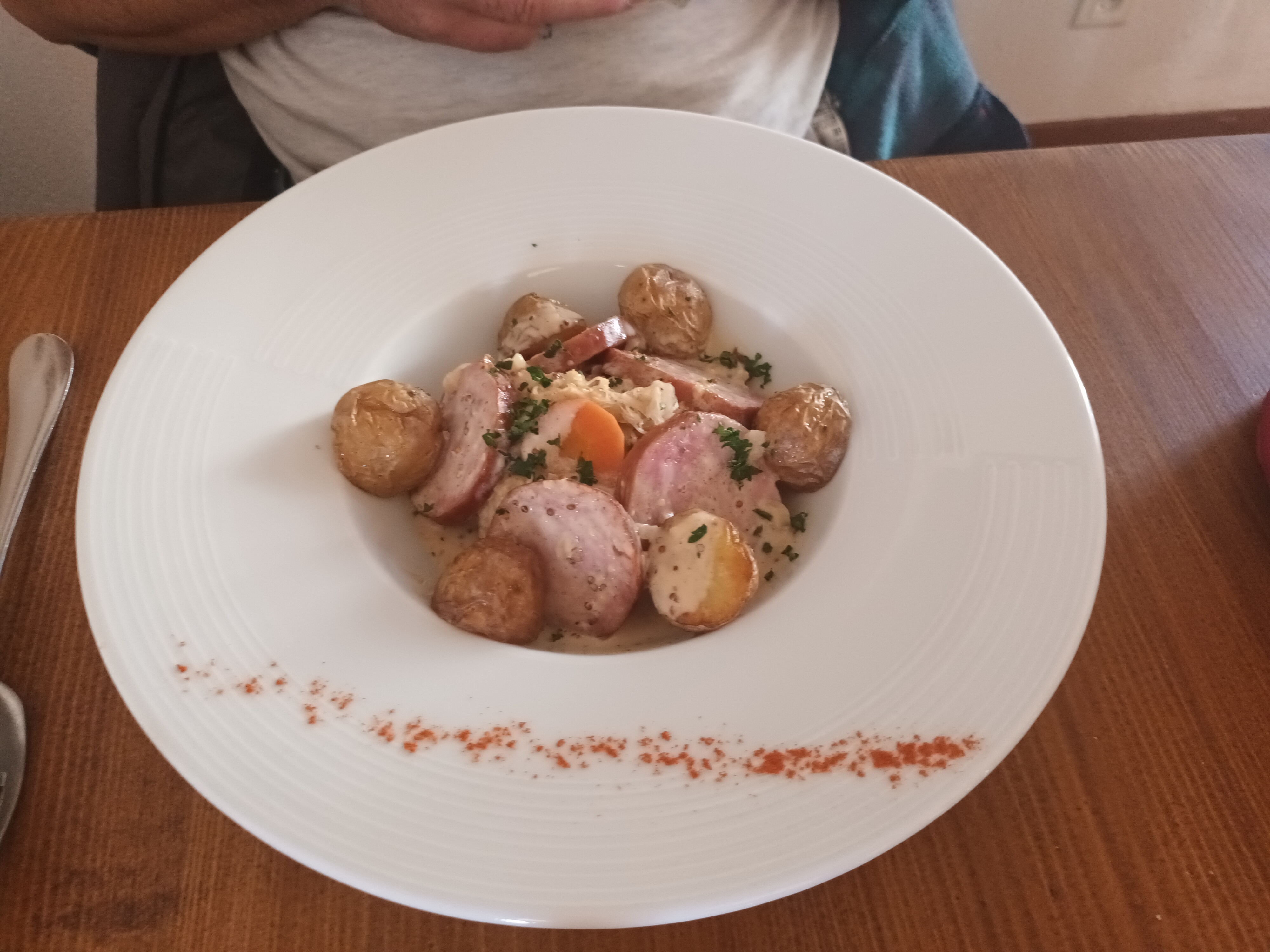 Cadre sympa, personnel souriant, patrone agréable, voilà pour la forme et pour le principal : le repas, parfais, une cuisine maison, des produits locaux, jolie présentation ( ex, Morteau à la crème de Morbier...) un choix de vins régionaux et, ce qui ne gâche rien, une addition légère.