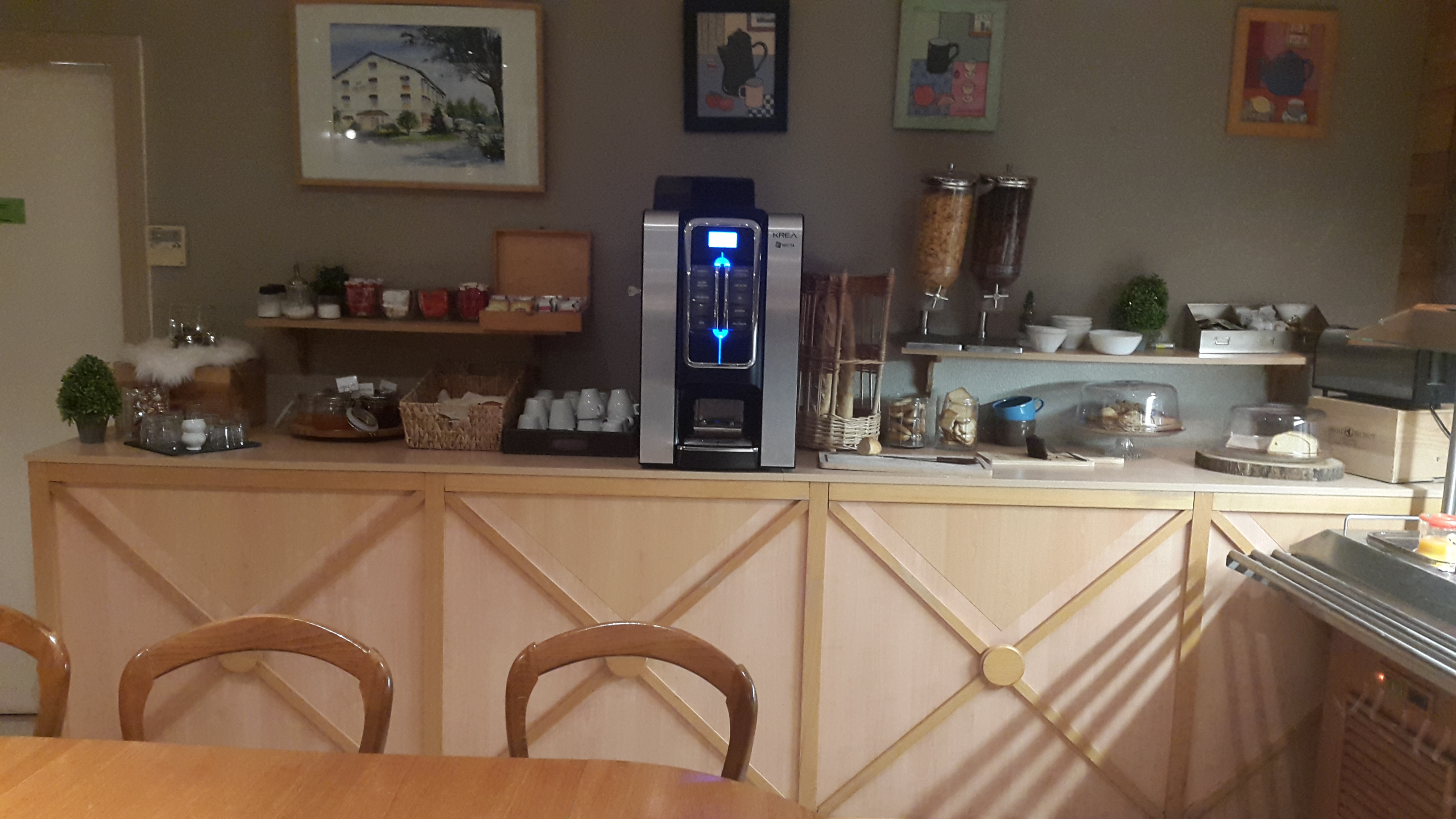 Nous y sommes allés pour une formation. il n'y avait que très peu de café dans le thermos, pas assez pour tout le monde... l'eau chaude pour le thé, étais un peu jaune et sentait le café.. (thermos mal rincé) nous étions envahi de grosses mouches bleues, et nous y avons vu un cafard😱 cela ne donne pas envie d'aller dormir ni manger dans cet hôtel restaurant
