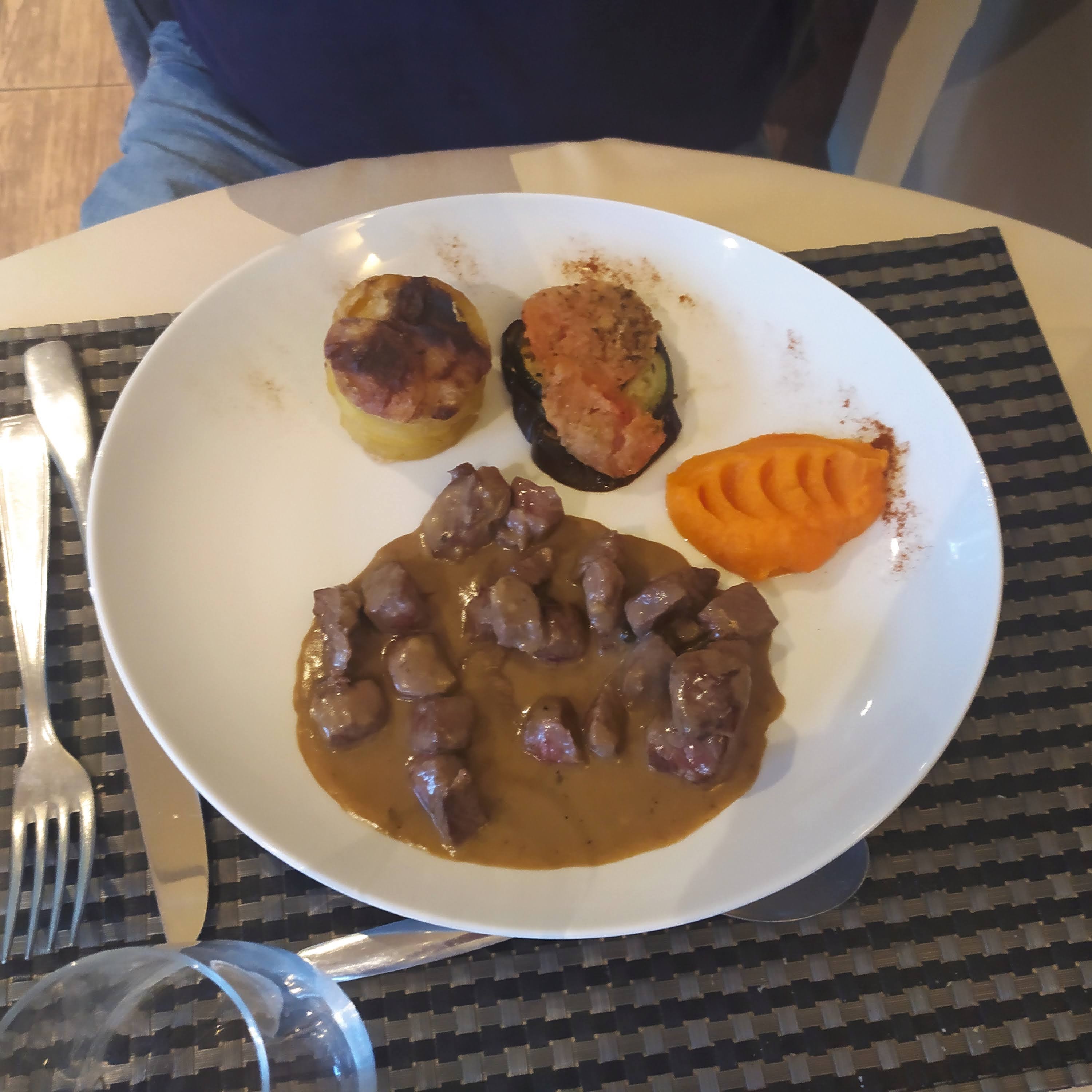 Nourriture bonne. Lieu agréable. Prix correct . Mais un manque de rigueur dans le service . Vaisselle tâchee . Erreur dans les assiettes... c est dommage.