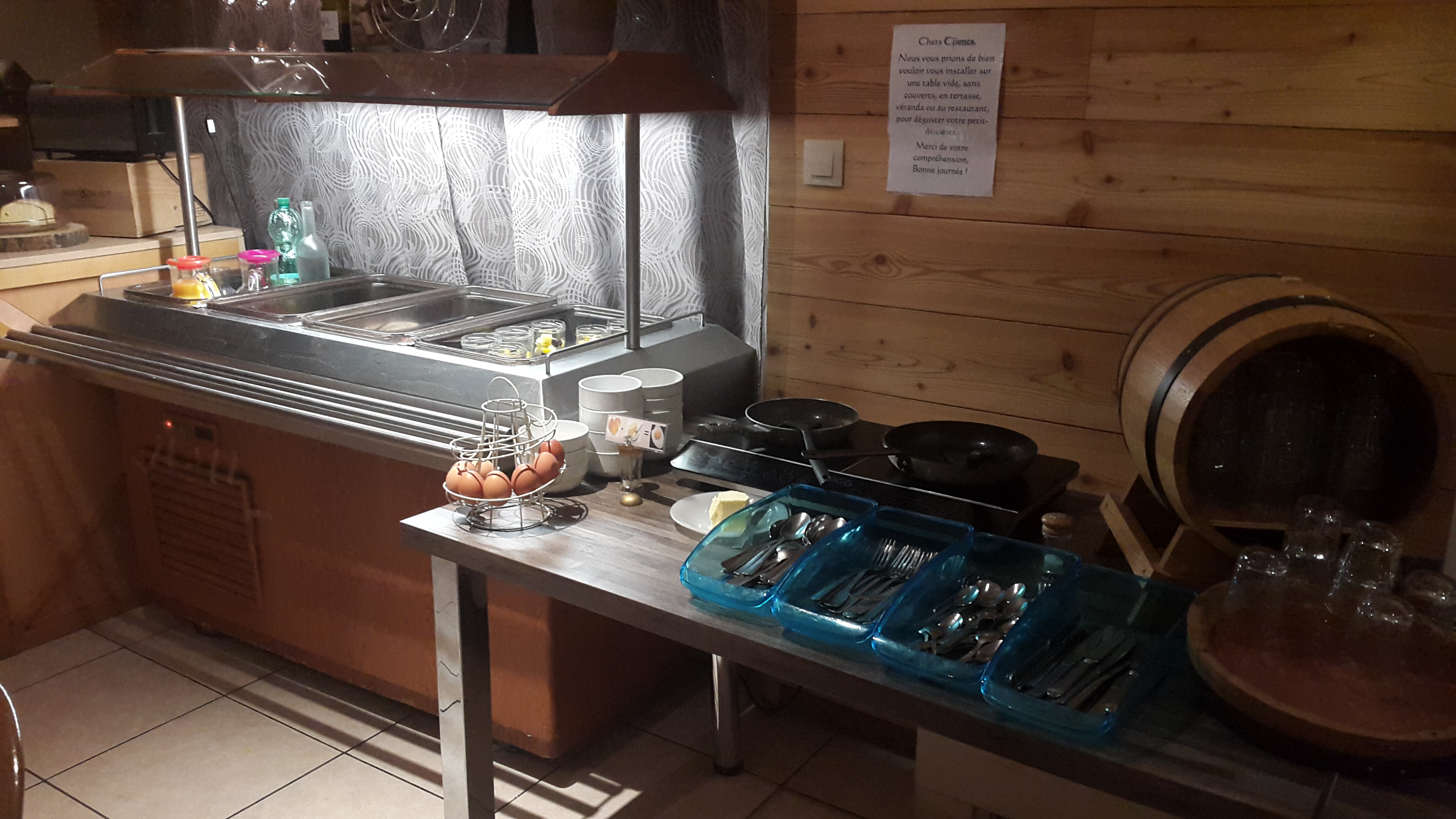 Nous avons réservé une chambre avec lit bébé. Nous nous sommes retrouvés dans une minuscule chambre collée au cuisine et obligé de passer par le restaurant, impossible d’ouvrir la fenêtre car les clients du restaurant été en train de manger. En arrivant nous avons attendu longtemps avant qu’on s’occupe de nous. Au restaurant pareil très long mais délicieux. Impossible de faire chauffer le biberon de mon fils avant 7h30 ! Très déçu.