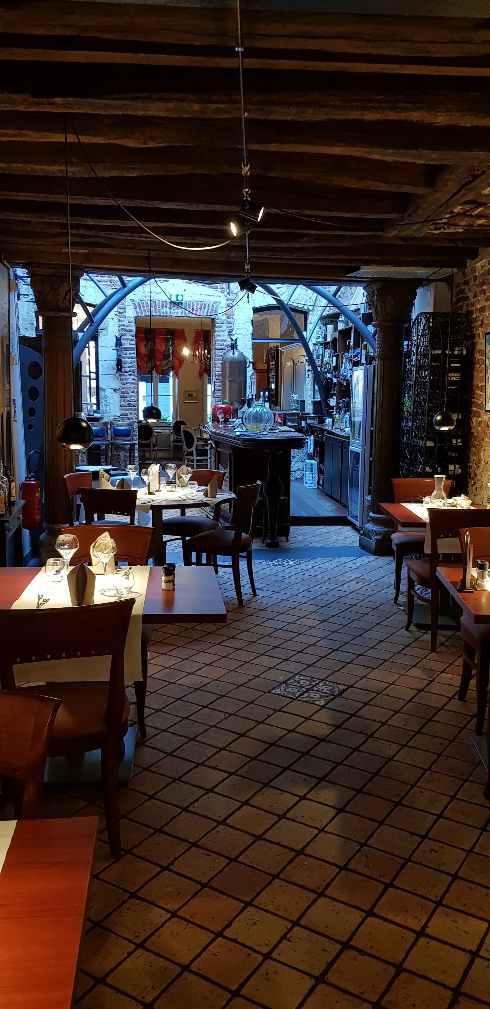 Une super trouvaille lors d’une halte pour une visite guidée. Nous avions besoin de nourriture, ils ne servaient pas de nourriture mais nous préparaient un plateau de jambon et de fromage. Personnel très sympathique et serviable étant donné que notre français n'était pas génial ! Hôtel extrêmement ancien et plein de charme, avec une cour à l'arrière.