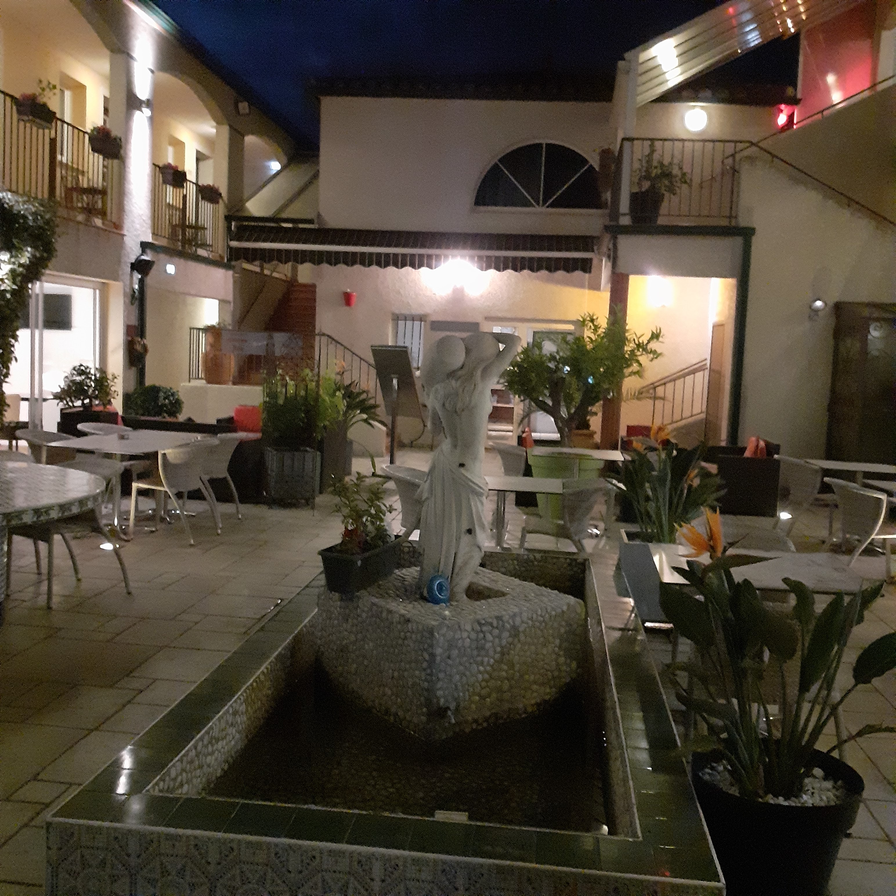 Hôtel très agréable avec des chambres spacieuses et calmes Accueil personnalisé et agréable Patio invitant à la détente Menus très bien élaborés et délicieux j ai adoré les brochettes d espadon ..