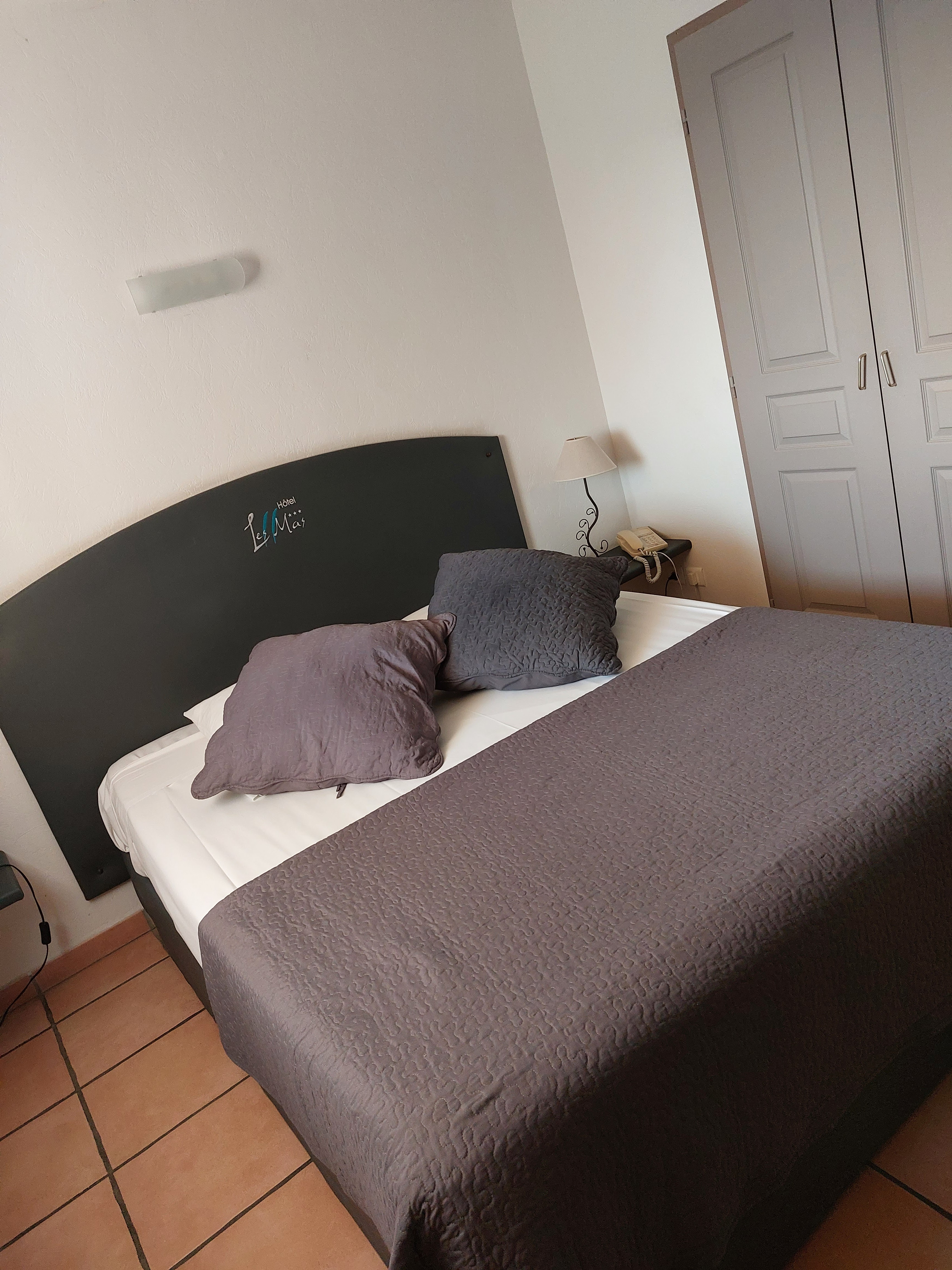 L'hôtel est situé dans une zone commerciale ( je pensais que c'était un mas dans la nature d'après les photos), la piscine ne fonctionne pas, et nous avons été placés dans une chambre donnant sur la rue passante de la zone commerciale, je trouve cela cher (129 euros) même si l'accueil est sympathique et la chambre spacieuse et moderne avec climatisation et le personnel gentil