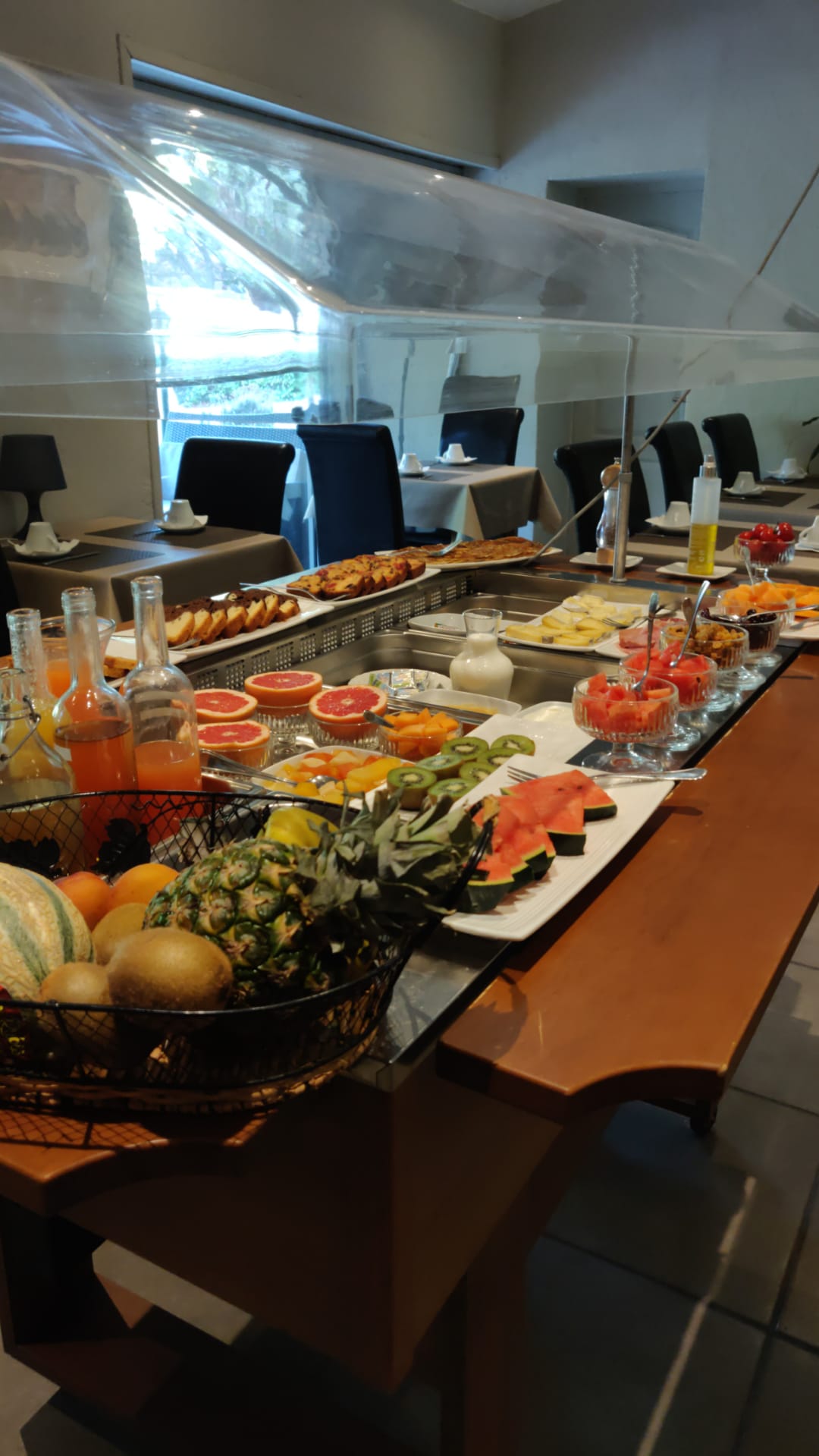Nous sommes restés 2 nuits sans petit déjeuner. LES PLUS : parking intérieur, gentillesse du propriétaire. LES INCONVÉNIENTS : chambre sale, par exemple sur le sol de la douche j'ai retrouvé des cheveux et des résidus, c'est la première fois de ma vie que je dois nettoyer la douche dans un hôtel avant de me laver. Serviettes feutrées et tachées à l'eau de Javel. Nettoyer la chambre le lendemain, c'est simplement ranger sans rien nettoyer. Climatisation très bruyante et dégage une odeur désagréable à chaque fois qu'elle est allumée, signe que le bon entretien n'est pas effectué. Piscine définitivement sale, pleine de cheveux, de saletés et de débris au fond, signe qu'elle est rarement nettoyée. Mon conseil à tous ceux qui lisent est d’évaluer les autres hôtels si vous avez un minimum de sens de l’hygiène.