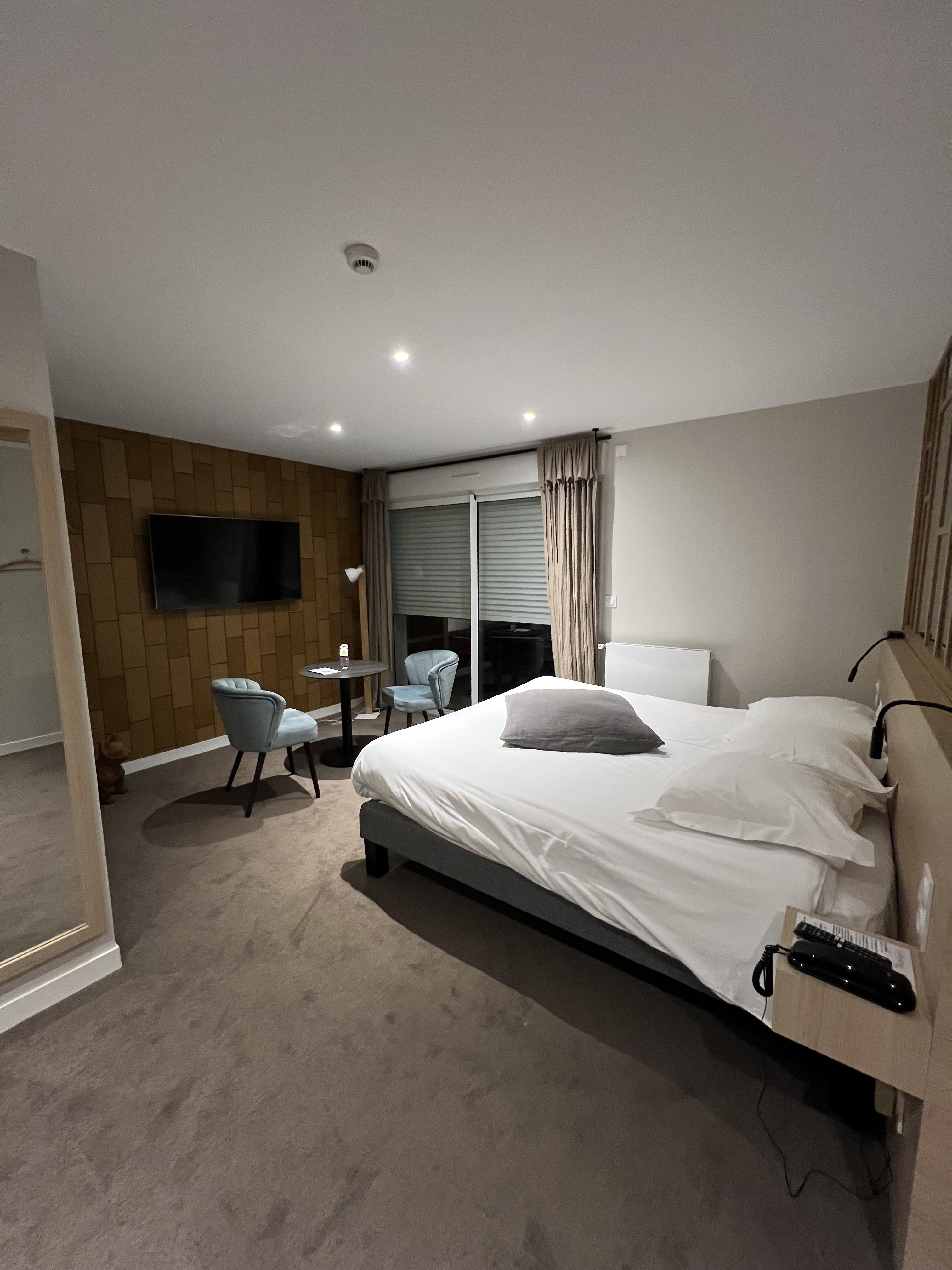 Un magnifique Hotel au calme non loin de Rennes.chambre ultra confortable avec coin salon;zone spas inclus;accueil merveilleux et petit déjeuner excellent ;dommage nous n'avons pas eu le temps de manger au restaurant mais se n'est que parti remise.