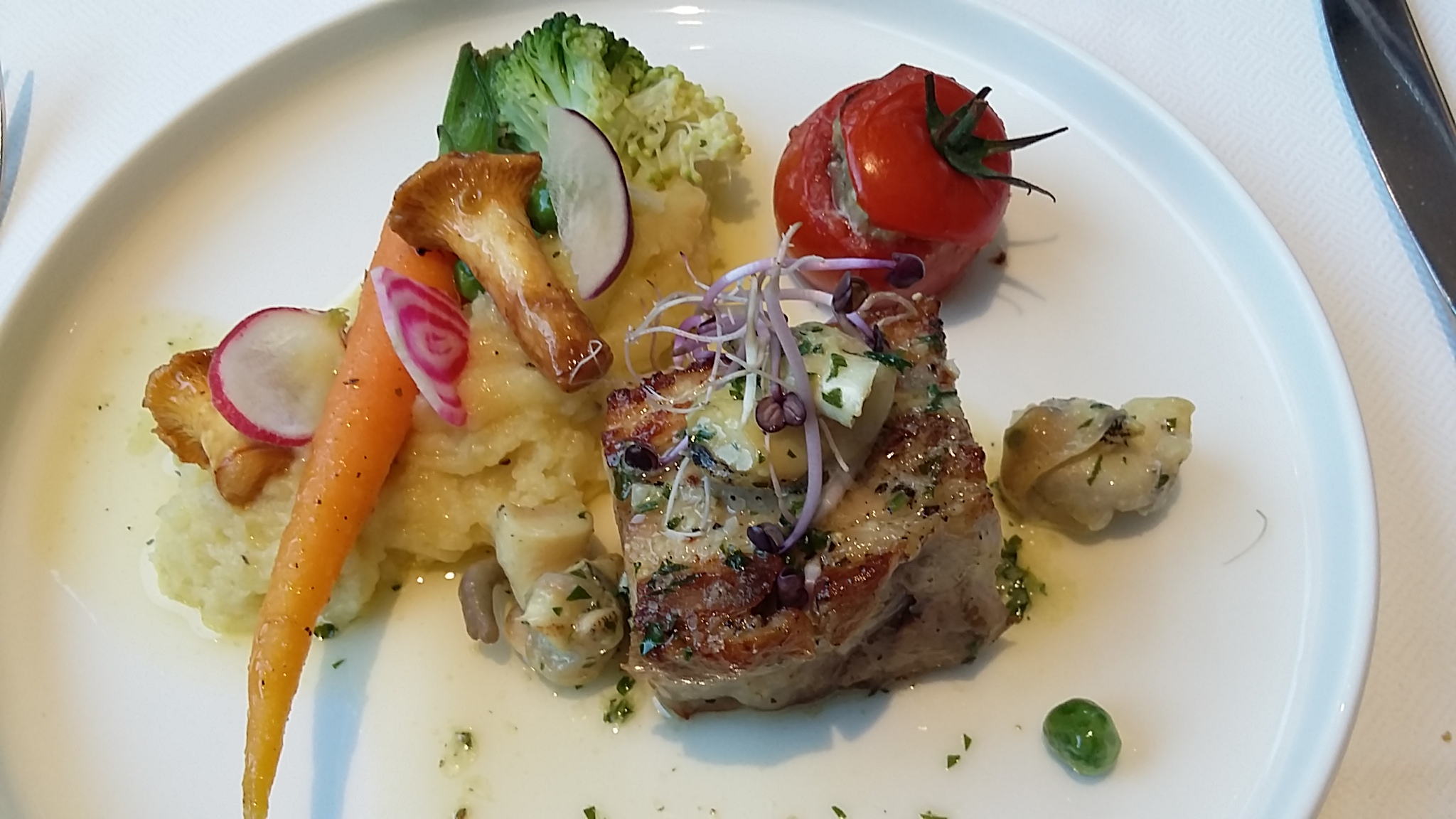 Présentation des plats agréables à l'oeil. Les produits bons (poissons,viande, dessert). Le repas dinatoire aussi..