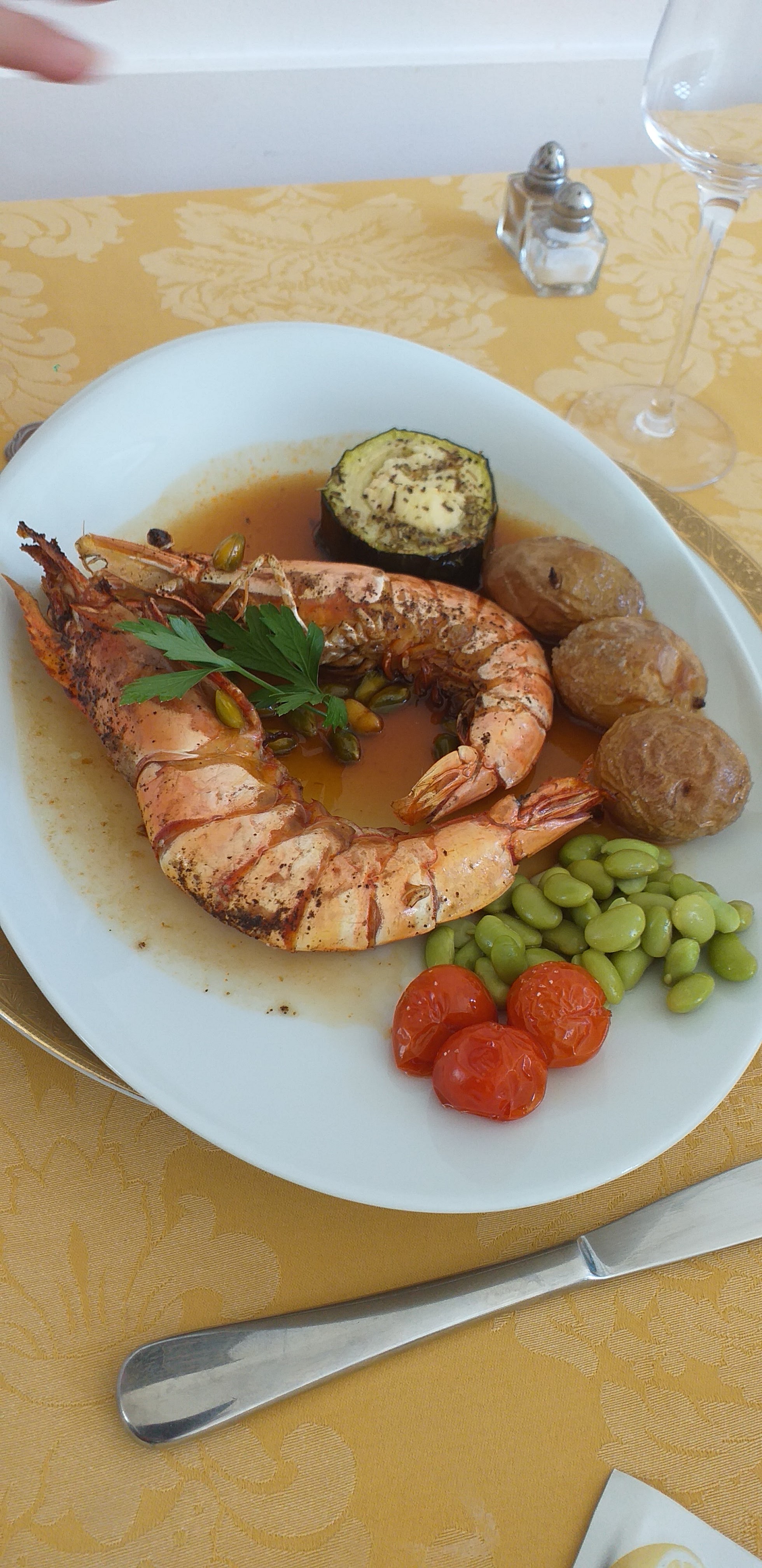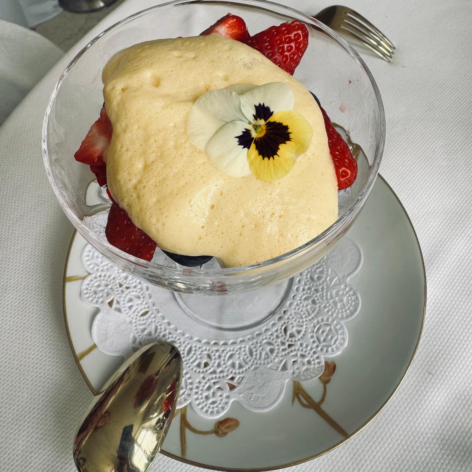 Bon repas dans un bel endroit. Avec un bon champagne service discret mais sympathique nous recommandons