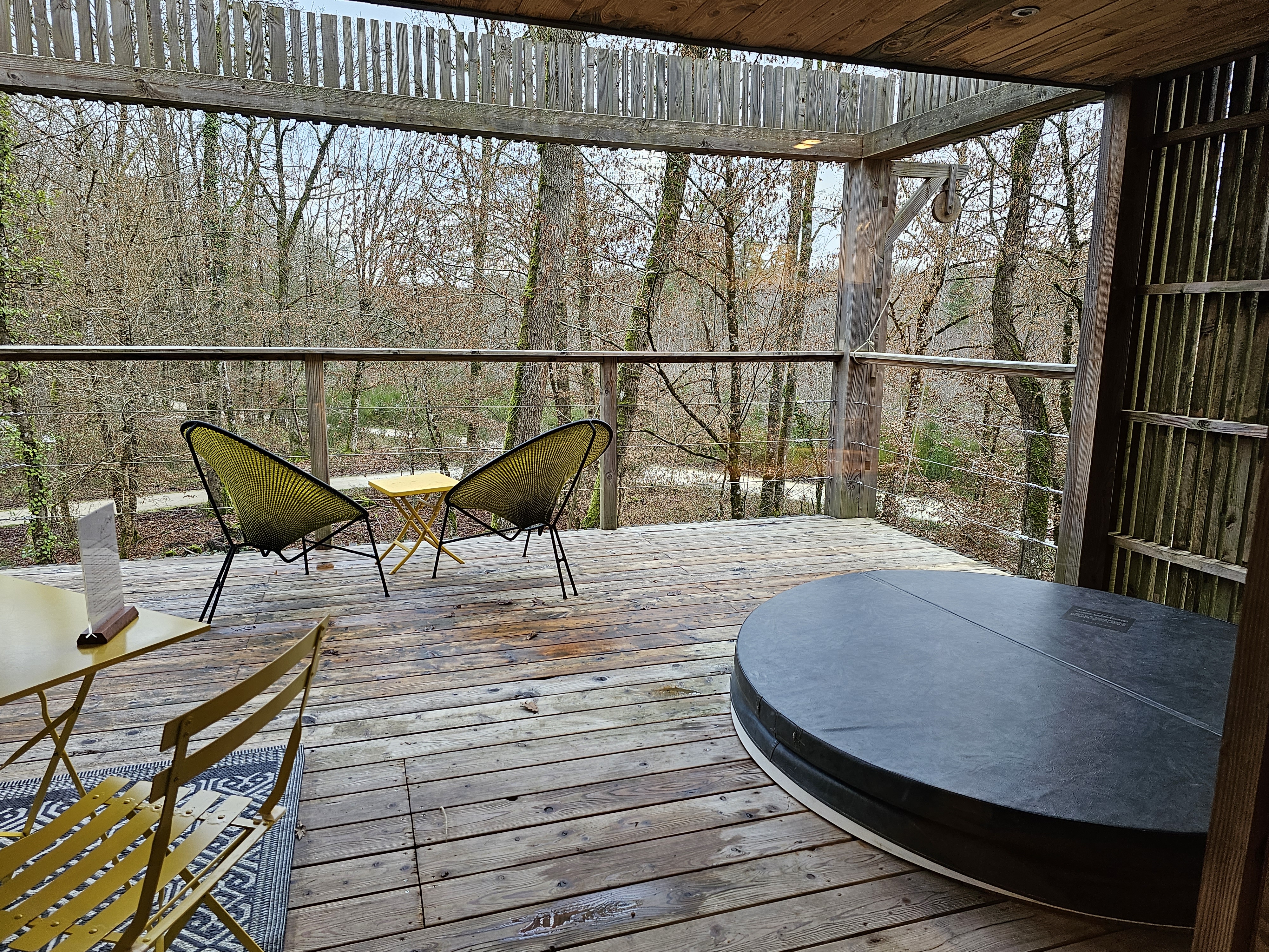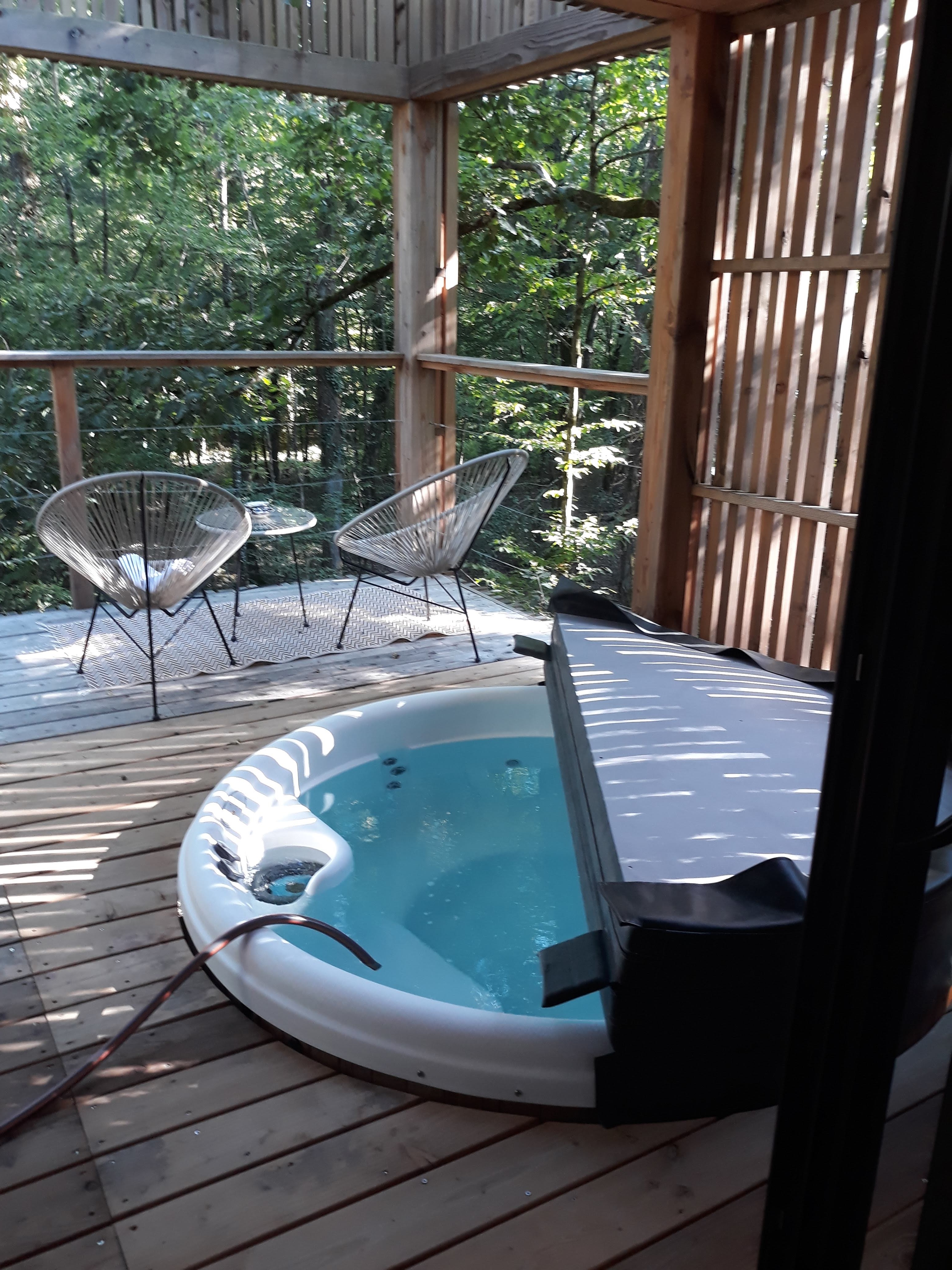 Un coup de coeur pour ce séjour dans un cadre exceptionnel au milieu de la forêt : une nuit dans un magnifique lodge perché dans les arbres, une petite scèance dans le jaccuzzi privatif, la chambre avec vue à 180° sur la forêt, et le matin, le panier petit déjeuner déposé à l'entrèe du lodge : que du bonheur!! Et comme c'est la canicule en septembre cette année, une après midi à la piscine avec déjeuner sur la terrasse du restaurant , Tout est parfait: accueil, lodge, restauration!!! Une adresse à retenir pour une échappée verte !!