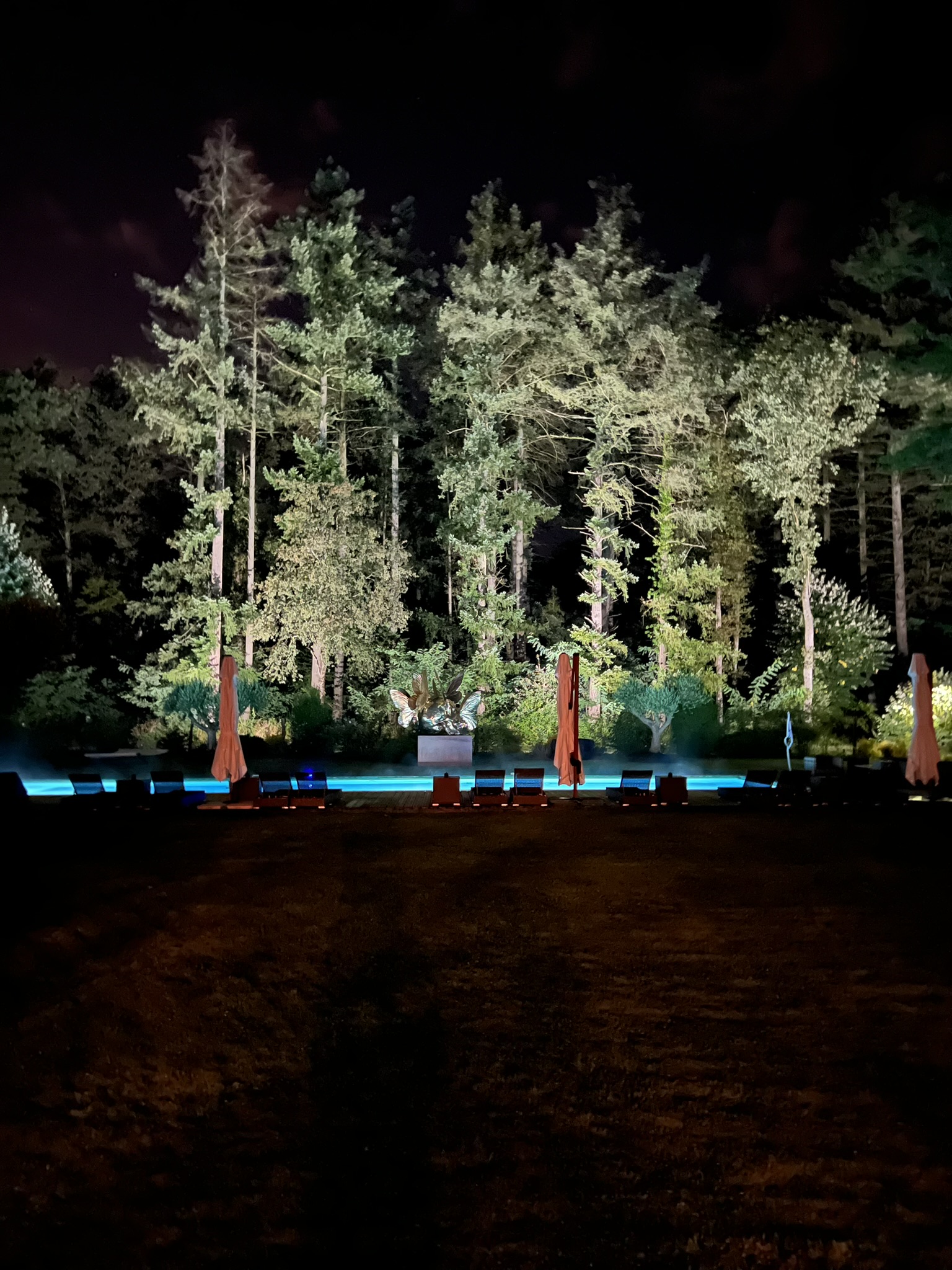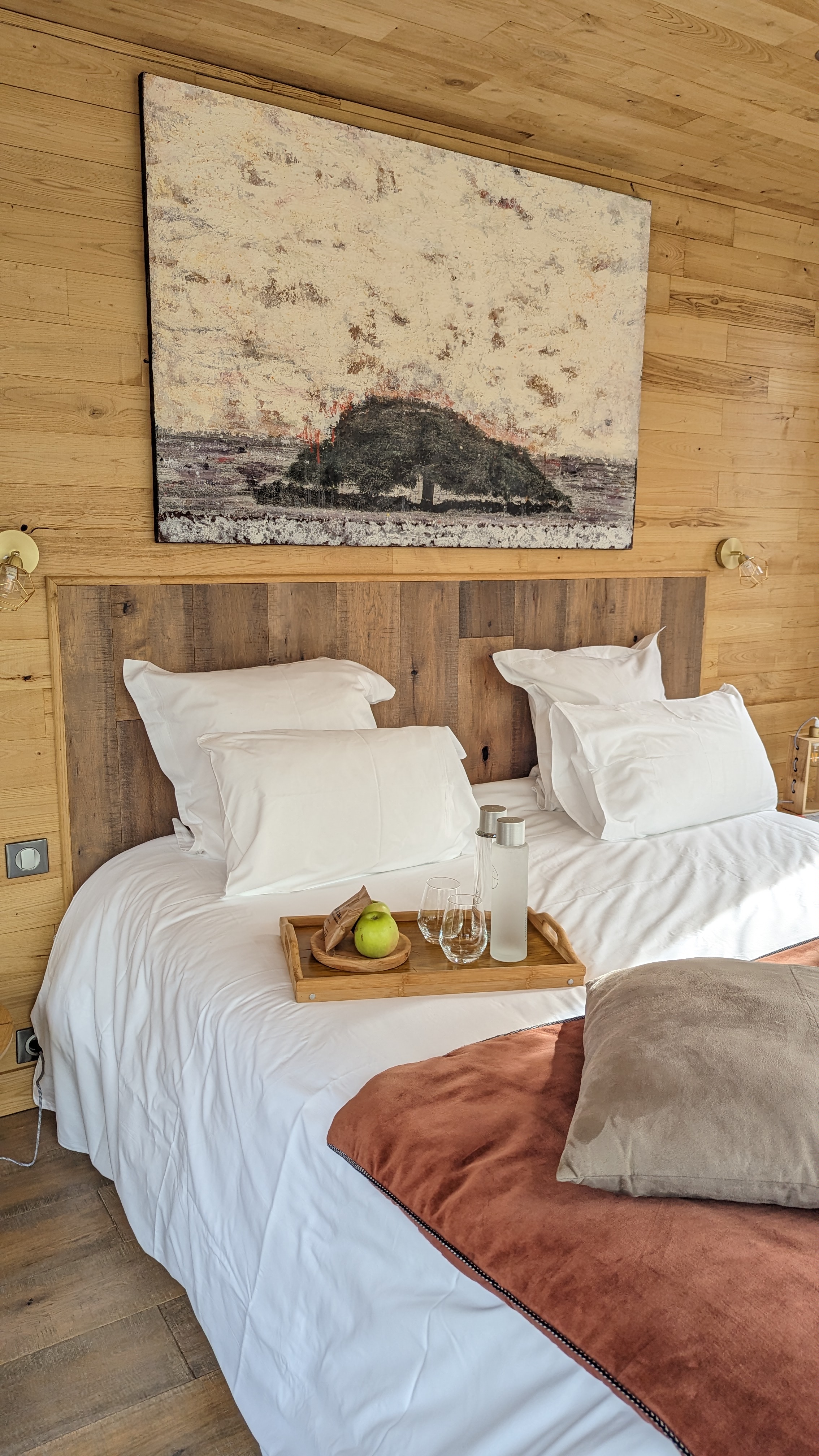 La magie opère dès l’arrivée, en passant par une monumentale sculpture de l’artiste AureleLostog. Nous sommes déjà parmi les artistes ! Chaleureusement accueillis par un personnel aux petits soins pour nous afin de nous faire passer un séjour inoubliable par des attentions personnalisées. Accompagnés en golfette électrique à notre Lodge choisi parmi tous les artistes ! Je recommande le Lost Lodge et le Yellow Shelter ! Des prises électriques Porsche à disposition pour recharger ma voiture électrique venue de Paris ;-))) Le bonheur de s’installer dans ce havre de paix et de créativité artistique perché en pleine forêt. Le bois… les bois nous entourent ! La magie opère ! Tout est pensé pour notre bien être ! Rien n’est laissé au hasard afin de combler nos envies. Le Jacuzzi sur la terrasse en bois au milieu des arbres sera notre grand bonheur à chaque retour de ballades … Le petit déjeuner de produits gastro et locaux servi dans un panier nous attendant le matin, un délice des sens !! Je recommande 3 nuits si l’on peut … le dépaysement et le lâcher prise sera au rendez vous équivalent à une semaine ailleurs ! Nous avons testé le massage Deep Bee … une création de l’équipe du Spa pour les hôtes des Lodges ! Un pur bonheur ! Un séjour qui sera à jamais gravé dans ma mémoire sensorielle ! Hâte de revenir !!