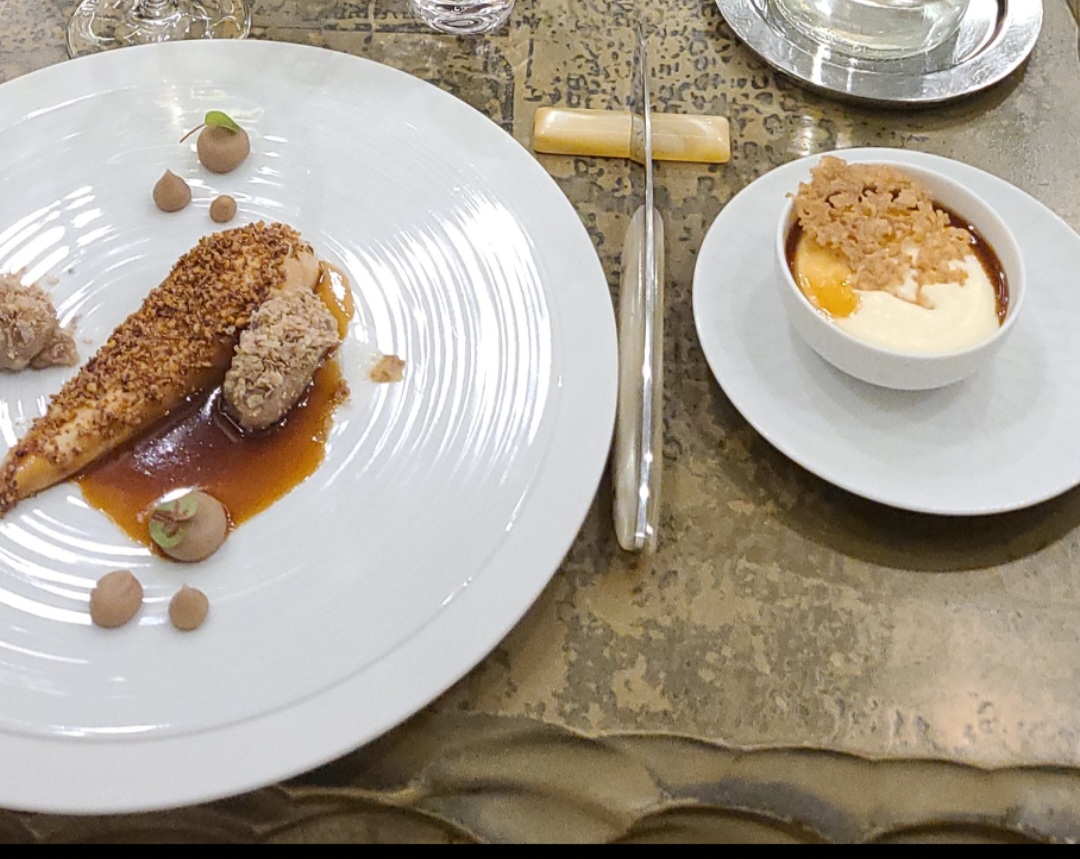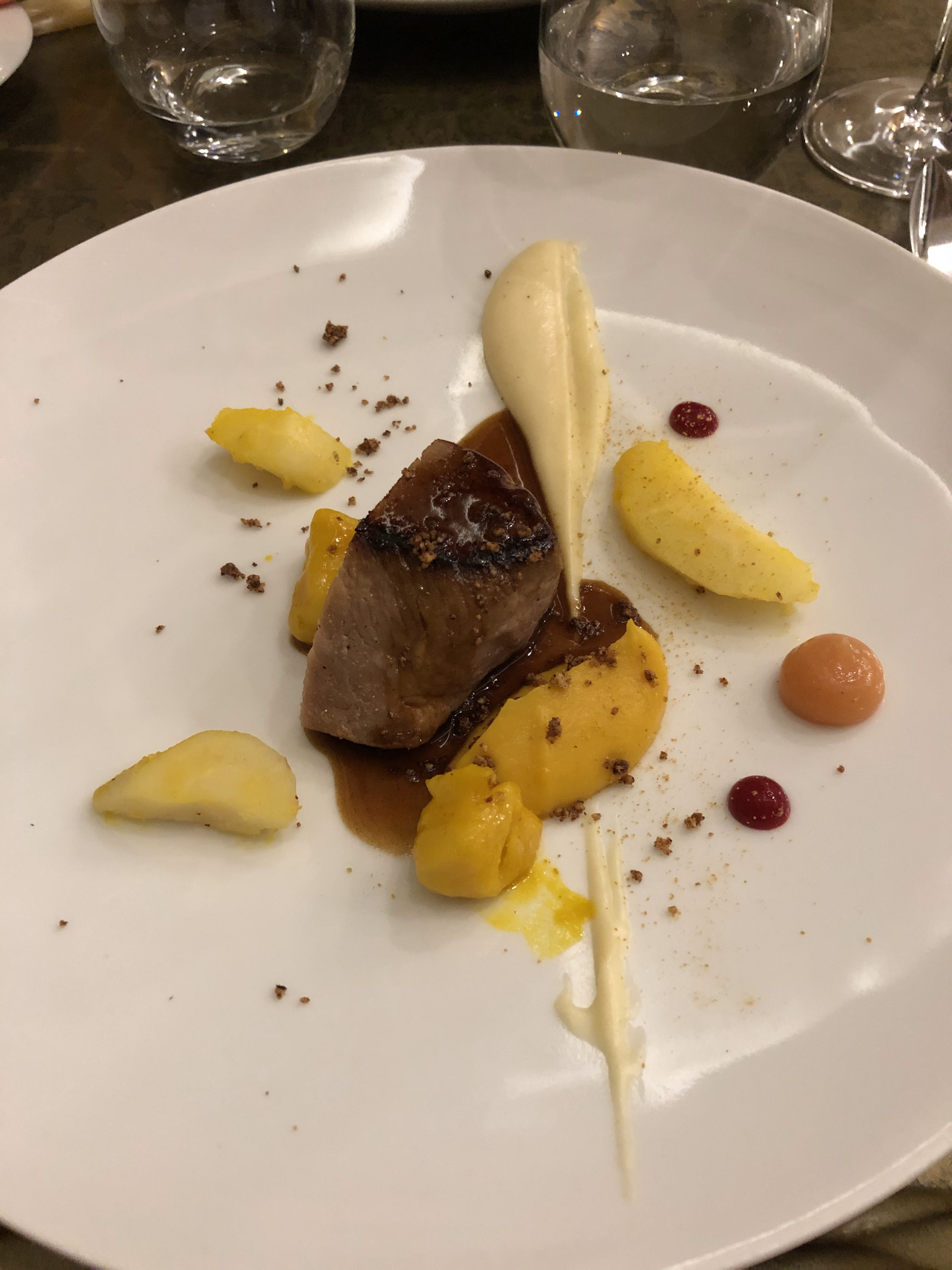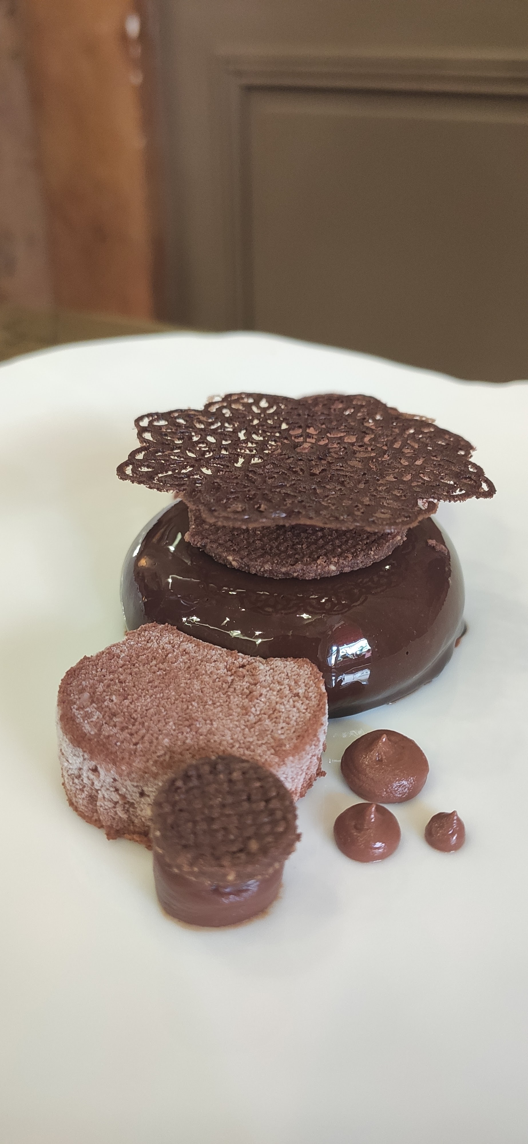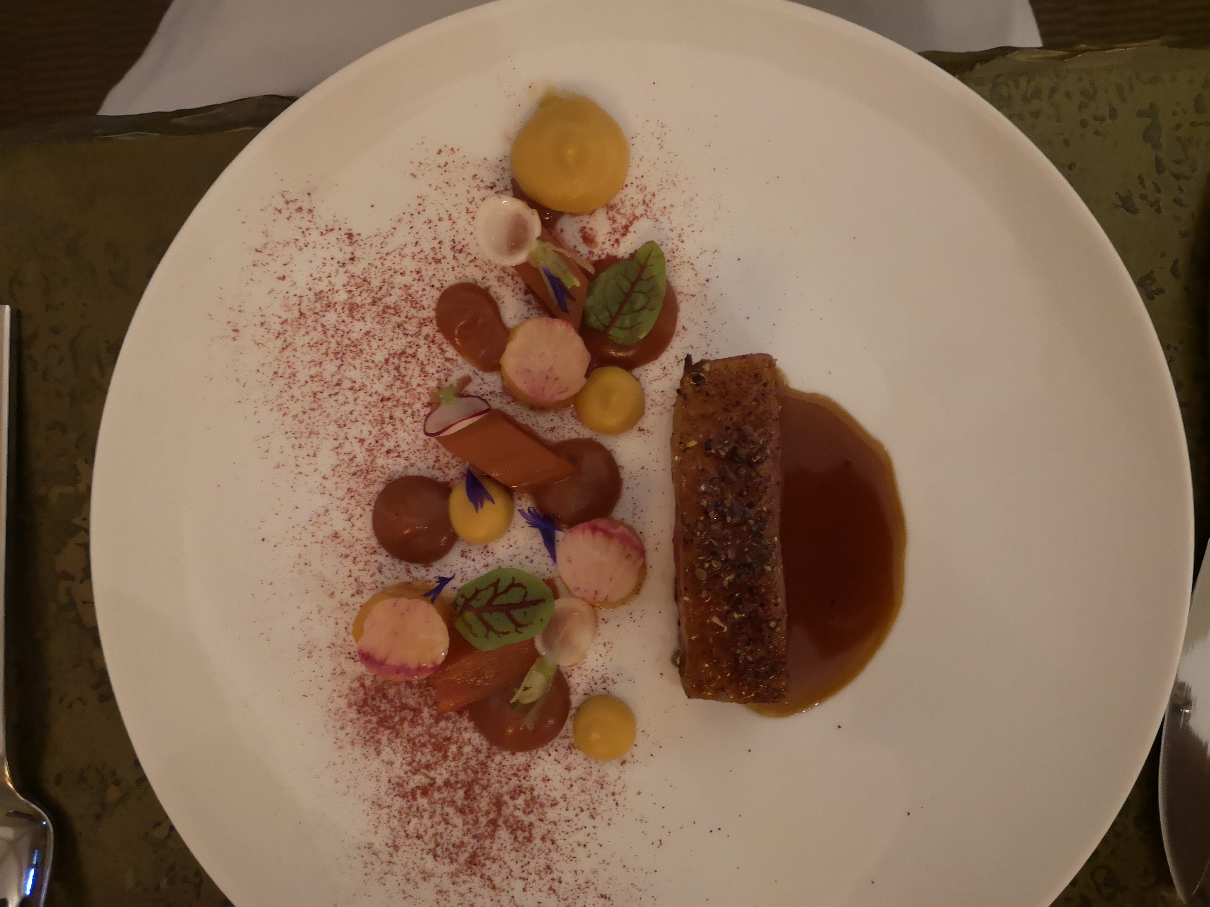 La réduction accompagnant les œufs très salés, le veau beaucoup trop cuit, pas de fourchette pour manger la viande, le verre de Chassagne du Dne de la Vougeraie 2020 avec une oxydation prématurée et surtout vraiment très dérangeant le responsable et le sommelier qui n’ont pas arrêtés de discuter avec la table derrière nous et pendant la quasi-totalité du dîner. Le dîner avançant la dame parlait de plus en plus fort et vous finissez par n’entendre que la conversation. Au tarif du dîner cela est loin de correspondre à ce que l’on attend d’un étoilé digne de ce nom.