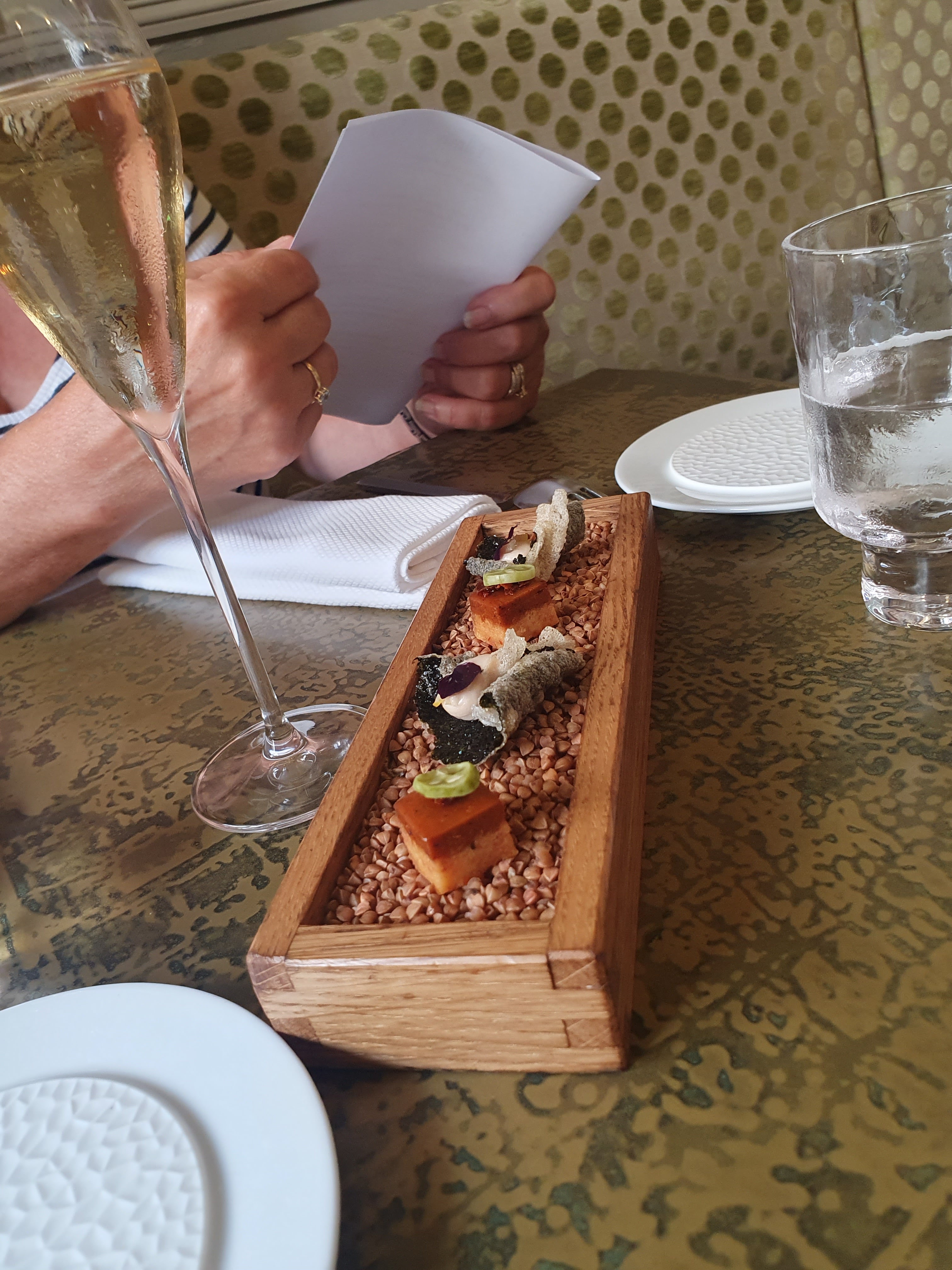 Absolument rien à dire , la nourriture était absolument incroyable , le temps entre chaques plats ni trop long ni trop court à nos goûts . Nous avions demandé un repas végétarien et je n'ai pas du tout été déçue de ce côté non plus . L'experience ce fait aussi niveau service le personel de salle étais vraiment très agréable et efficace , pas trop envahissant mais absolument adorable et très humains . La préstation générale était parfaite , au dessus de nos attentes et vaux parfaitement le prix .