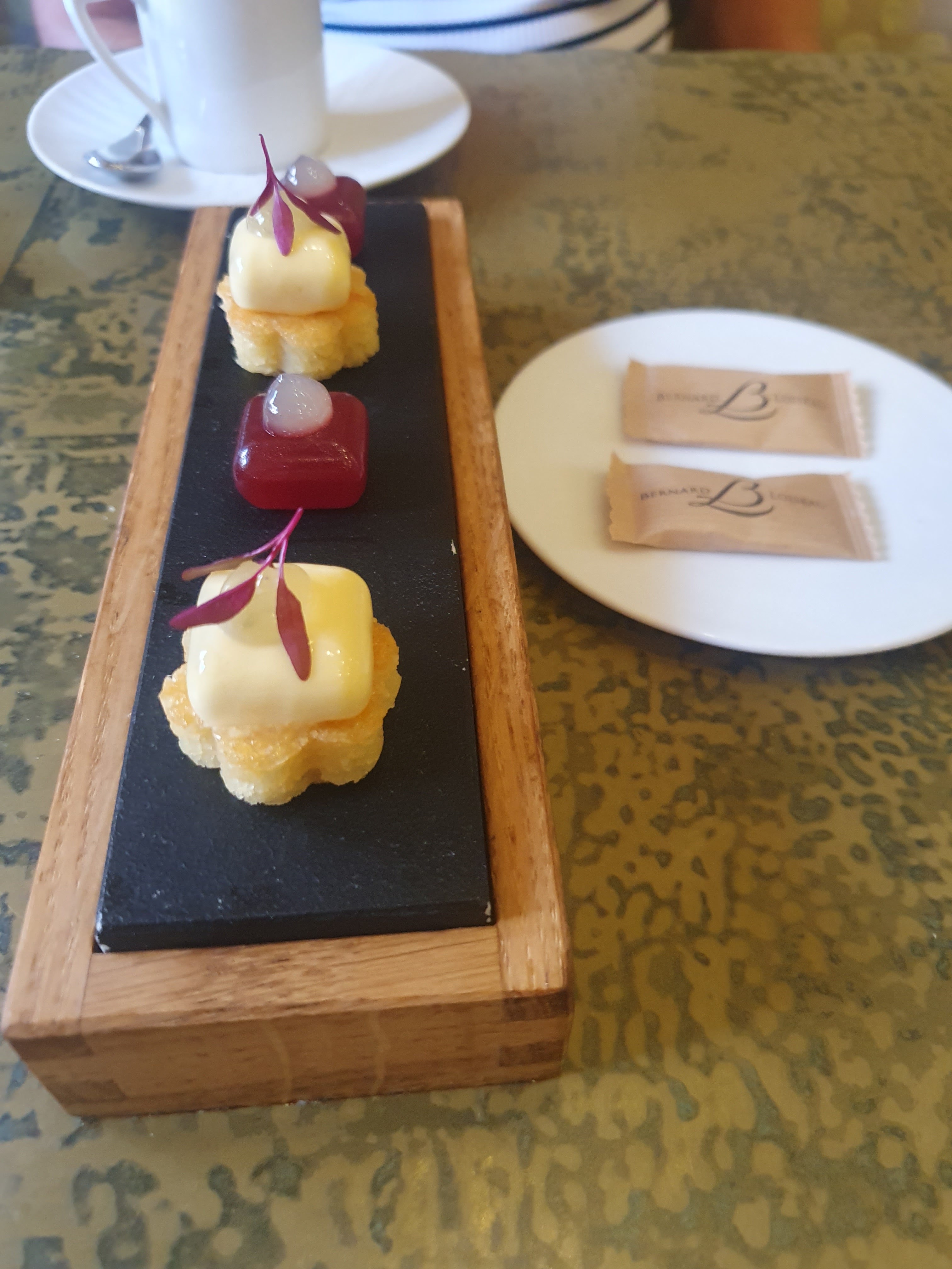J’ai rarement aussi bien mangé. Loiseau des Ducs est situé dans un hôtel particulier du XVIe siècle, en bordure de la Place de la Libération, et le cadre est superbe : salons feutrés (qui peuvent être privatisés), hautes voûtes gothiques, fauteuils profonds, tout vous fait quitter ce siècle et entrer dans un monde intemporel de luxe et de raffinement. Le chef Louis-Philippe Vigilant et la chef pâtissière Lucile Darosey, tous deux des anciens de Saulieu formés par Bernard Loiseau, proposent une expérience culinaire merveilleuse, toute en délicatesse et en créativité dans le respect des produits et des saisons. D’un bout à l’autre de ce repas, j’étais vraiment aux anges. Plusieurs saveurs dont le nom m’intriguait ont su totalement me convaincre – tout était surprenant, vrai et délicieux. J’en suis repartie enchantée et sans même avoir la sensation d’avoir commis un excès.