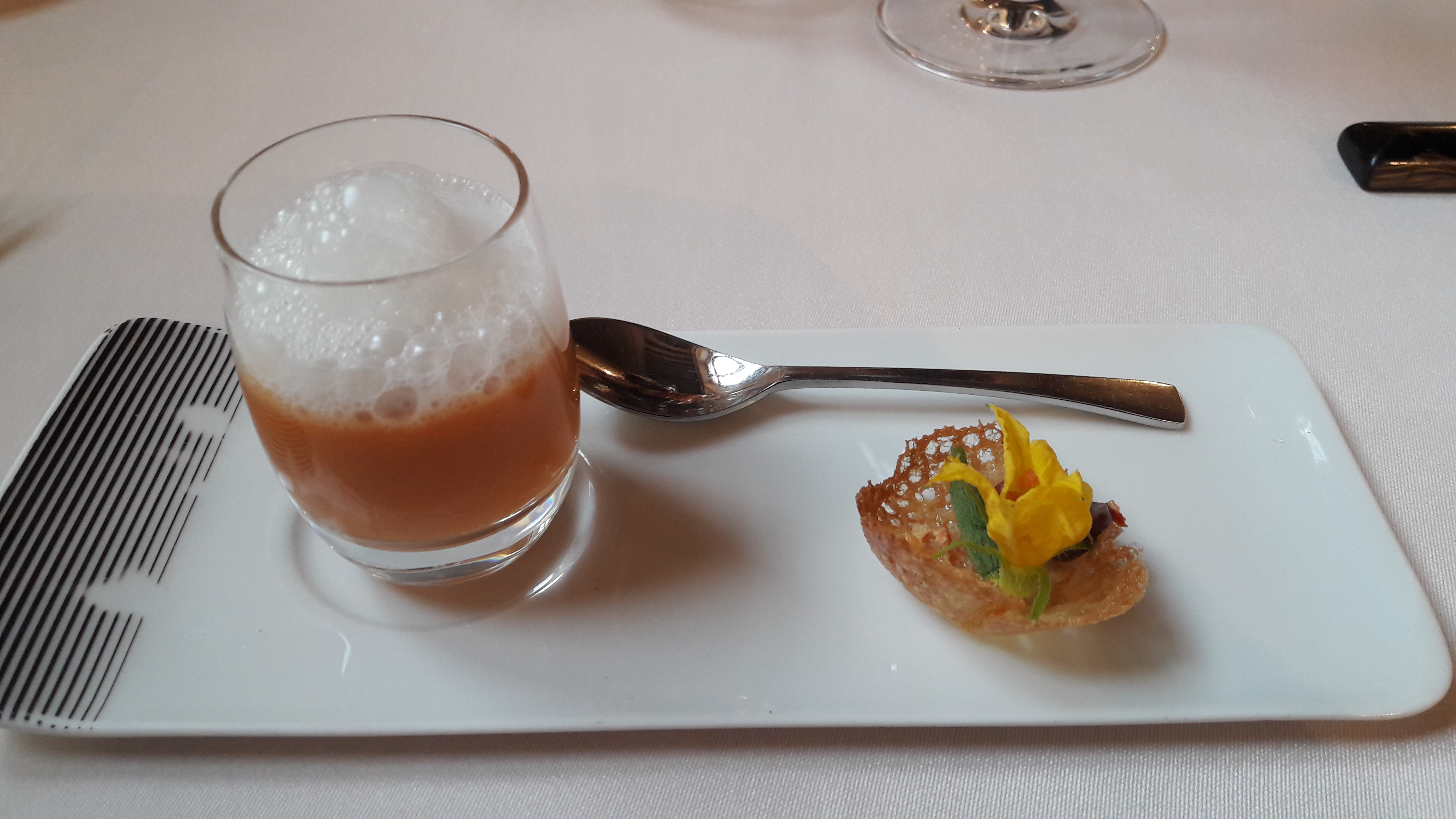 De l'accueil, en passant par le service et la cuisine c'était une suberbe découverte. Une expérience culinaire qui m'a conquise grâce à des plats aux intitulés classiques mais qui ont été chacun de belles révèlent la saveur et sublime les produits : n'hésitez pas à vous laisser tenter par le gaspacho, le cromesqui d escargot (réconciliation avec l escargot), le pâté en croûte, le bar ou le cochon accompagnés d' une purée qui saura vous surprendre favorablement. Avant de terminer par le chariot de desserts ou la suggestion de moment. Merci aux équipes en salle et cuisine (parfaite maîtrise des saveurs et des cuissons) pour cette belle découverte et ce beau moment.