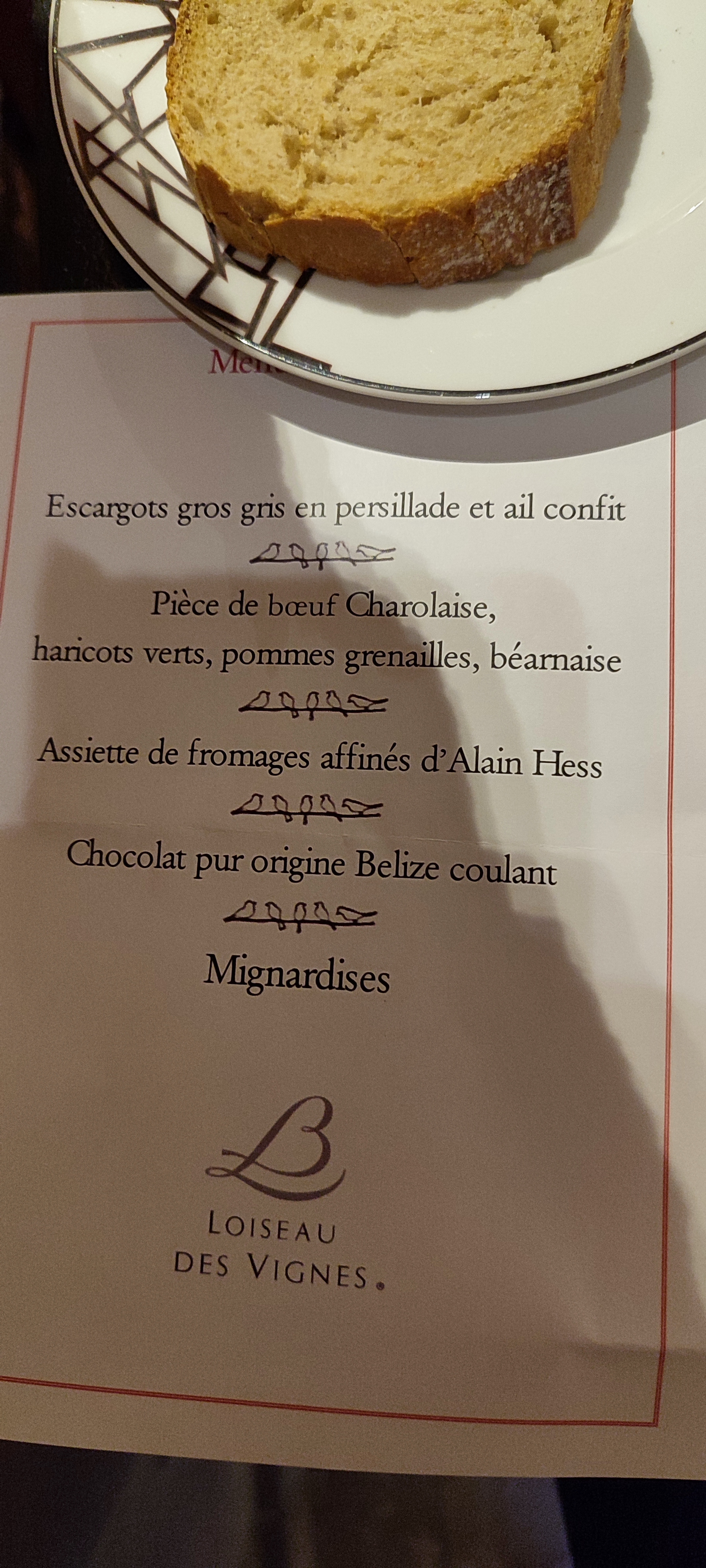 Excellent repas merci à toute l'équipe de Loiseau des Vignes