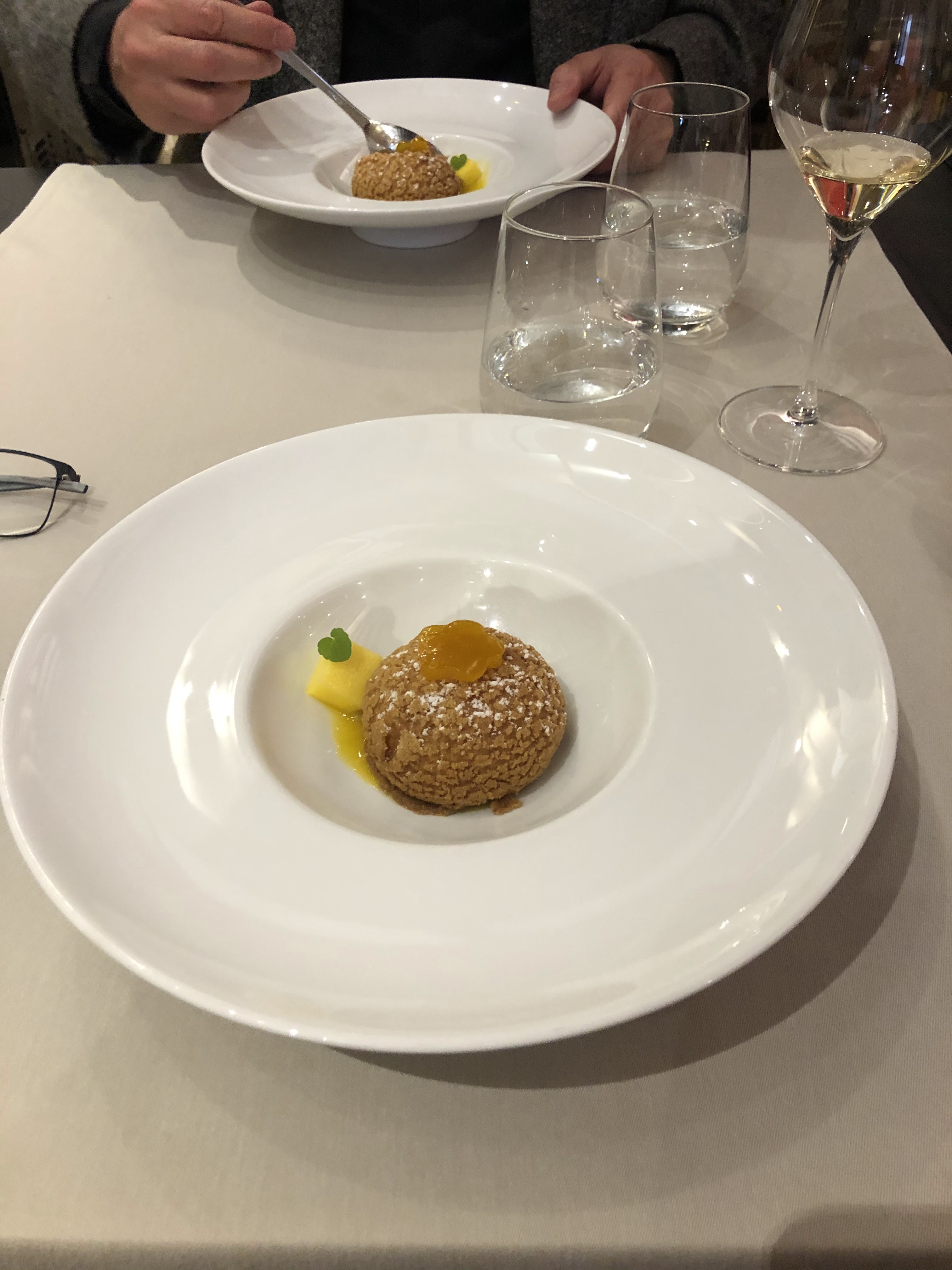 Aperitif, 2 entrées, un plat et un dessert en 3 heures. C'est beaucoup trop long ! Sinon le personnel est avenant et souvent gêné par la cuisine qui ne suit pas. Sans crier au génie, les plats sont soignés et réalisés avec de bons produits. La collection de vin au verre est impressionnante. Merite tout juste don étoile M..