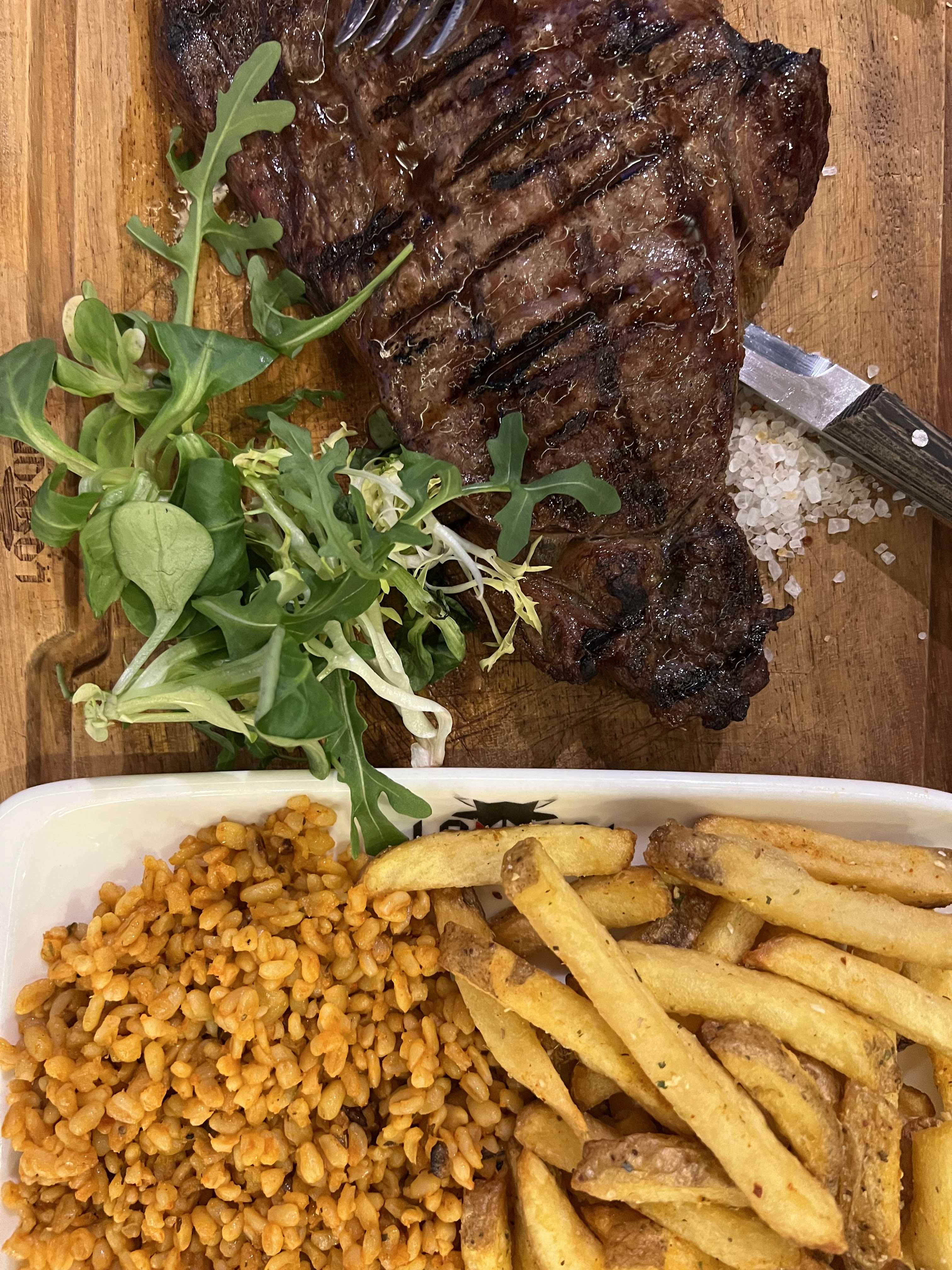 Super restaurant, belle décoration et super propre. Très grand restaurant qui peut accueillir beaucoup de personnes. Vous pouvez prendre jusqu’à 2 accompagnements pour des portions largement suffisantes. L’entrecôte, la brochette de poulet, le boulgour, le riz, les frites, les légumes, la burrata et la salade de fruits sont EXCELLENTE !!!! Je recommande le restaurant les yeux fermés !! Le personnel est tout aussi accueillant et souriant.