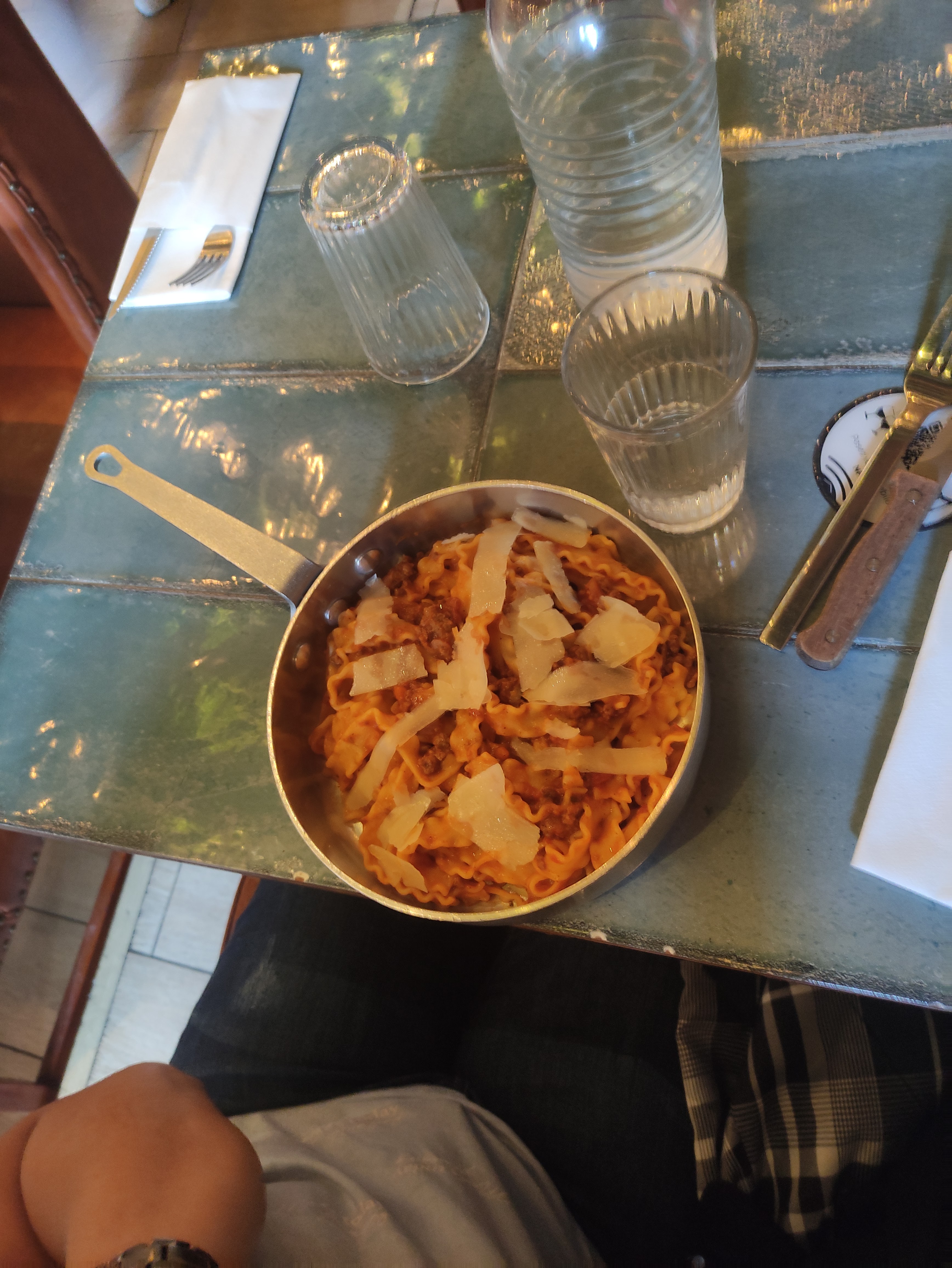 Déception plus grande que la quantité de pâtes servie dans nos assiettes.. La cuisine est bonne mais trop basique pour le prix et la quantité Je ne sais pas si c'est fait de telle manière a encourager à la consommation de boissons, desserts ou autre La table était un peu collante et quand nous sommes arrivés à notre table, une chaise était mouillée