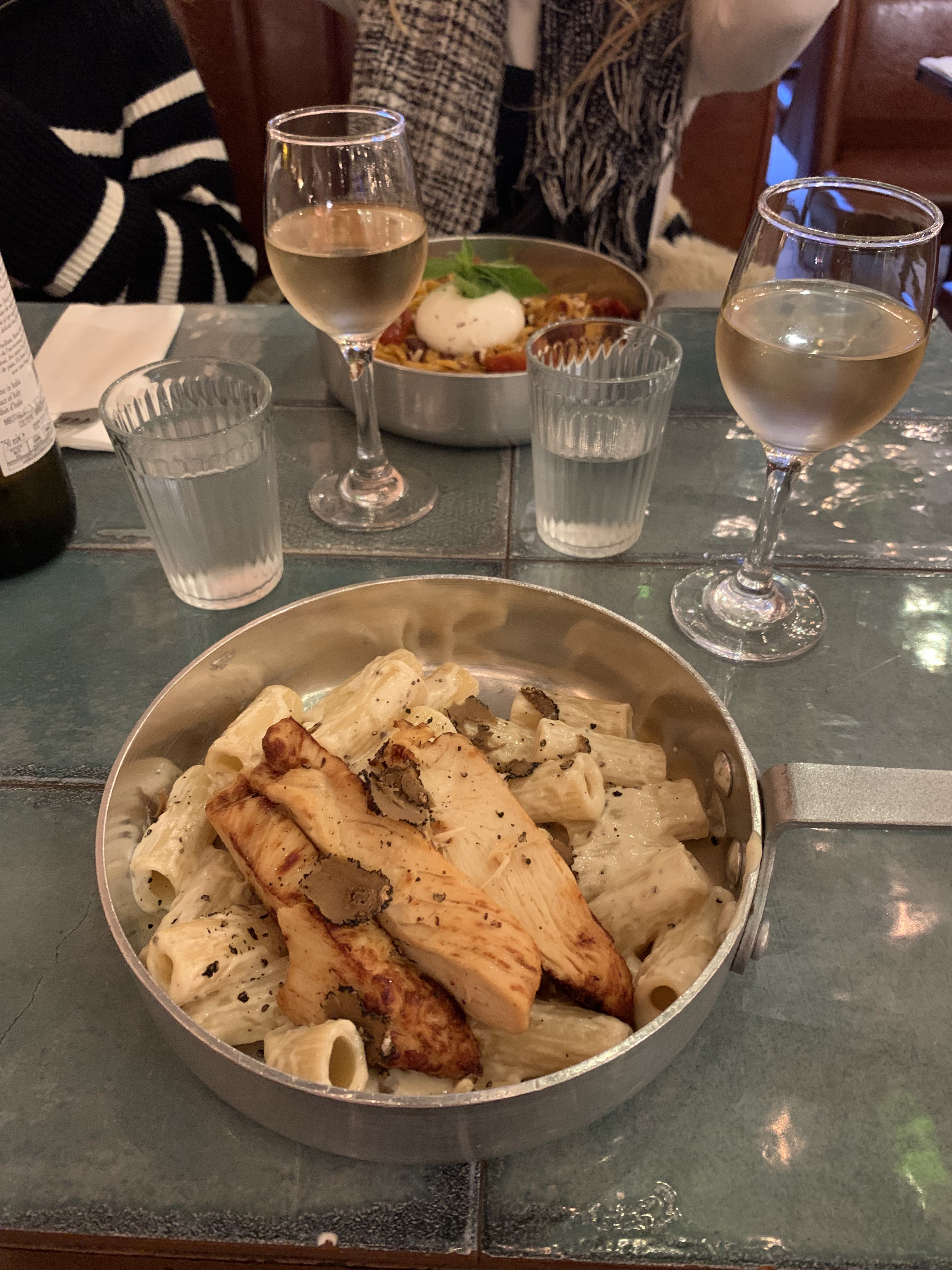 Après quelques recommandations, on s’est laissé tenter par ce petit restaurant italien. On est accueilli par une équipe très chaleureuse et une décoration soignée. Le cocktail sunshine est parfaitement exécuté avec un équilibre de saveurs maîtrisé. On a demandé une citronnade mais on ne l’a jamais eu c’est bien dommage.. Pour les plats, le choix s’est avéré très compliqué: tout donnait envie ! On a finalement choisi les Rigatoni Truffe d'été et Poulet avec une crème a la truffe, aiguillettes de poulet rôties, noisettes à la truffe et des copeaux de truffe d’été: c’est tellement succulent que les mots ne suffisent pas pour le décrire ! La salade césar en revanche était un peu décevante: pas d’œuf poché mais plutôt un demi œuf dur, les croûtons n’étaient pas faits à l’instant et il y avait un goût désagréable et la sauce était un peu liquide. Pour le dessert, le tiramisu framboise était à la hauteur de nos attentes et nous a fait oublié les quelques bémols.