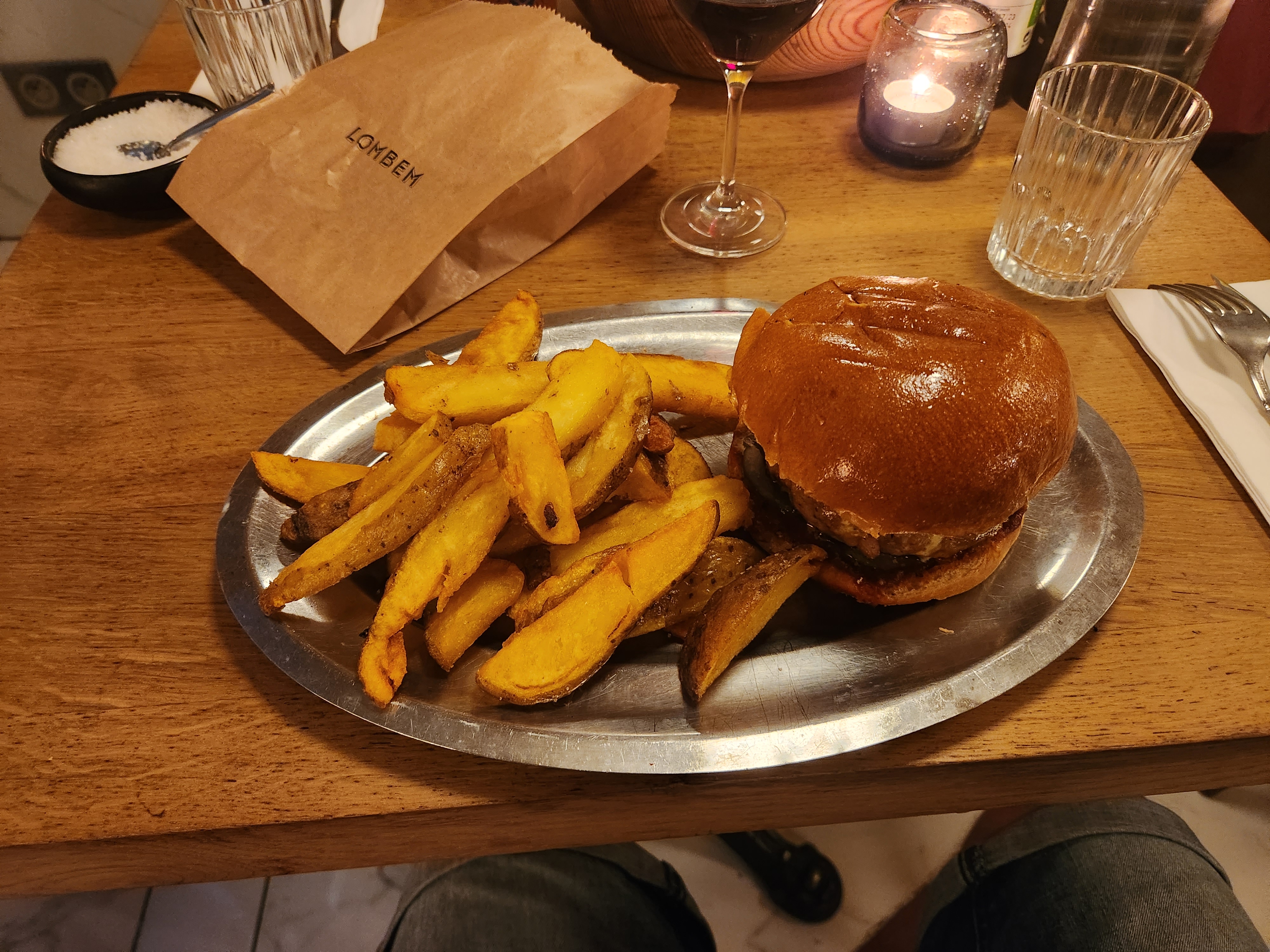 Le Lombem est un restaurant niché dans le très beau passage des Panoramas. La spécialité est la viande, depuis le burger jusqu'à la côte de bœuf de 1,2kg.La carte est courte, tout est frais, la viande est bonne, les prix sont tout à fait corrects, le service est cordial, le cadre correct. Donc je recommande, même si ce n'est pas la découverte de l'année.