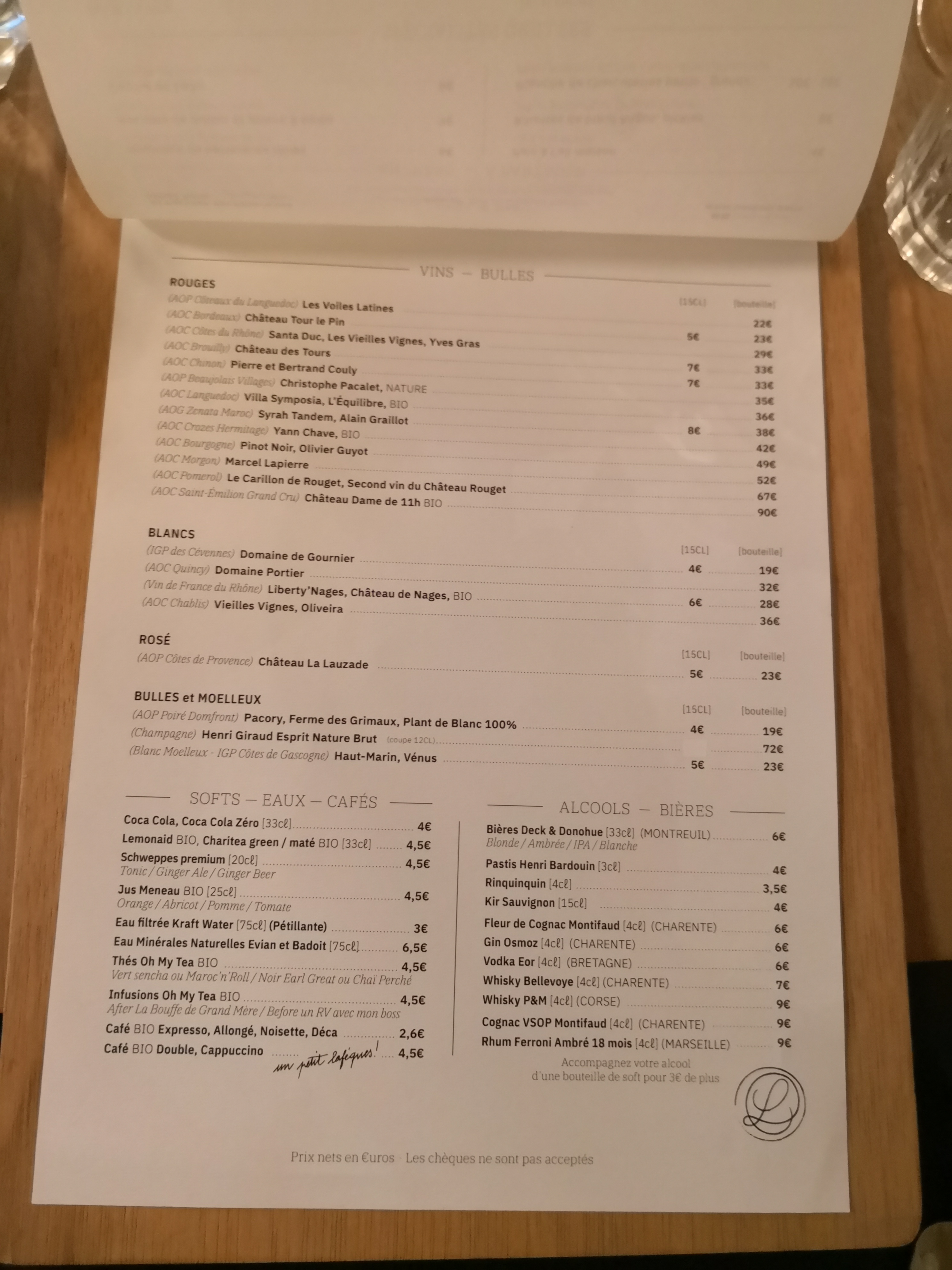 Des produits de qualité ! Le service est toujours très agréable et on est bien conseillé ! Le localisation du lieu est parfaite et le restaurant a beaucoup de charme avec une décoration soignée ! Petit coup de coeur sur le bar caché au sous sol après avoir dîné !