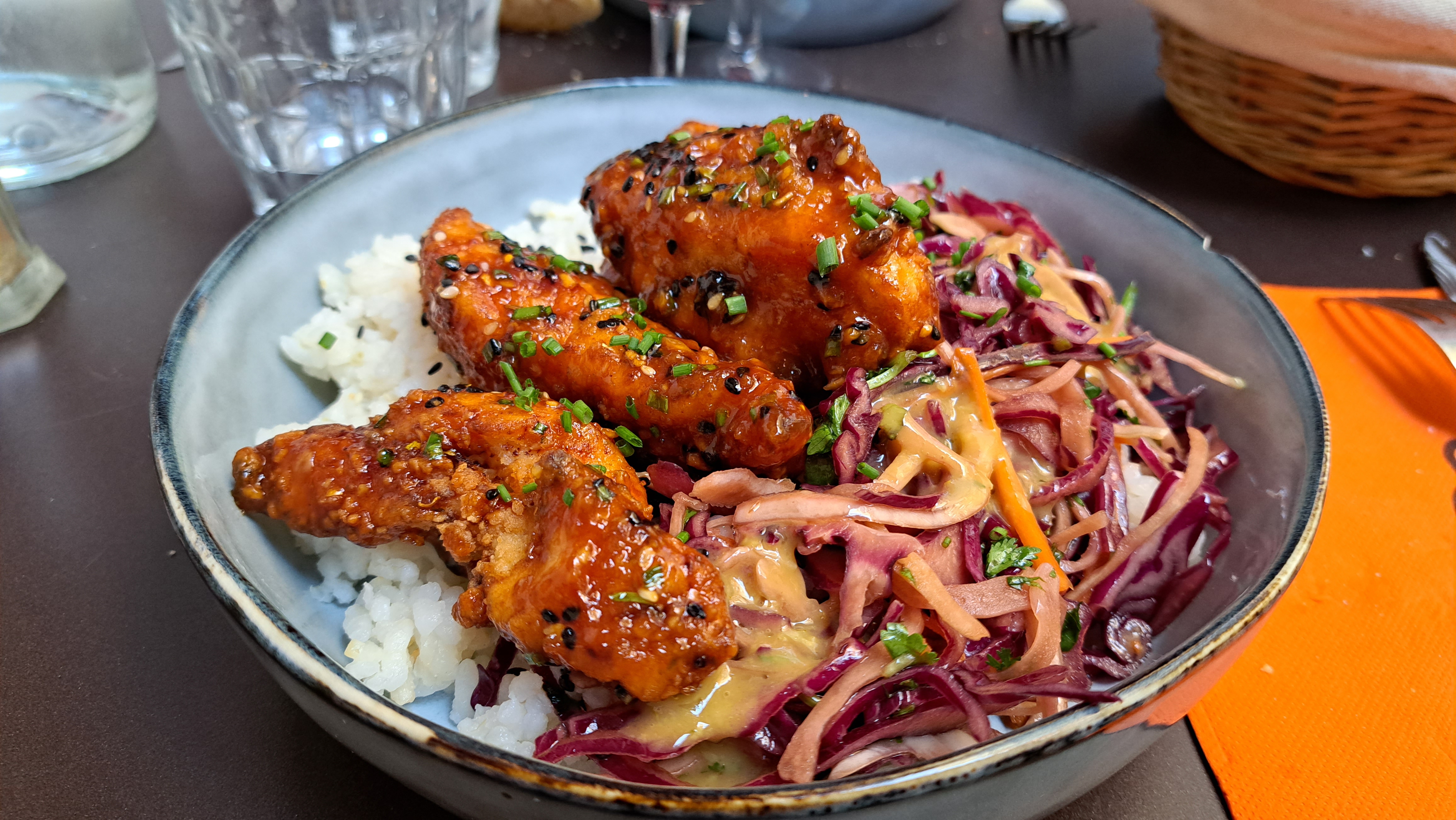Accueil, amabilité, qualité du service et des plats, jolie terrasse au calme, tout y est favorable pour un repas de qualité et ce fut le cas. Mention spéciale également au plat du jour, du poulet croustillant à l'asiatique. Un pur délice et j'en reprendrai les yeux fermés s'il y en a au menu quand je reviendrai !...