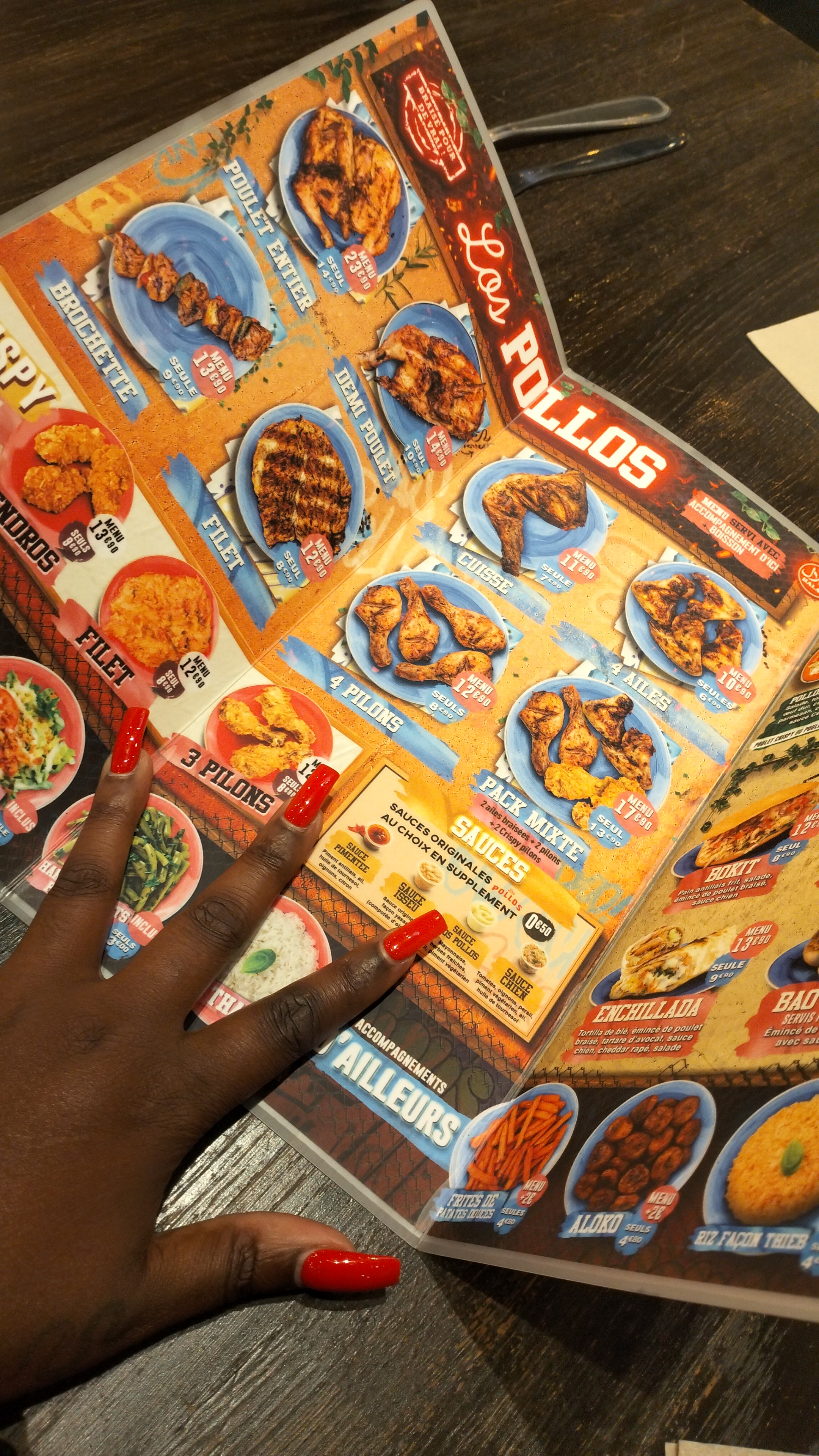 J'en ai beaucoup entendu parlé donc j'ai décidé de tester. Il y avait pas mal d'attente pour la prise de commande. La personne ayant pris la commande était fort sympathique. Un membre de l'équipe vous attribue une table. J'étais sur une table basse: pas du tout pratique et agréable pour manger. Impossible de mettre les jambes sous la table donc obligée de se mettre sur le côté ou de rester les jambes grandes ouvertes. Le repas est arrivé rapidement Quantité généreuse de frites. Pour le poulet un peu déçue: j'avais demandé le poulet piquant, il n'était pas du tout piquant, un peu fade. La sauce pimentée en supplément: uniquement de l'huile comme vous pouvez le voir sur la photo. En gros bof...