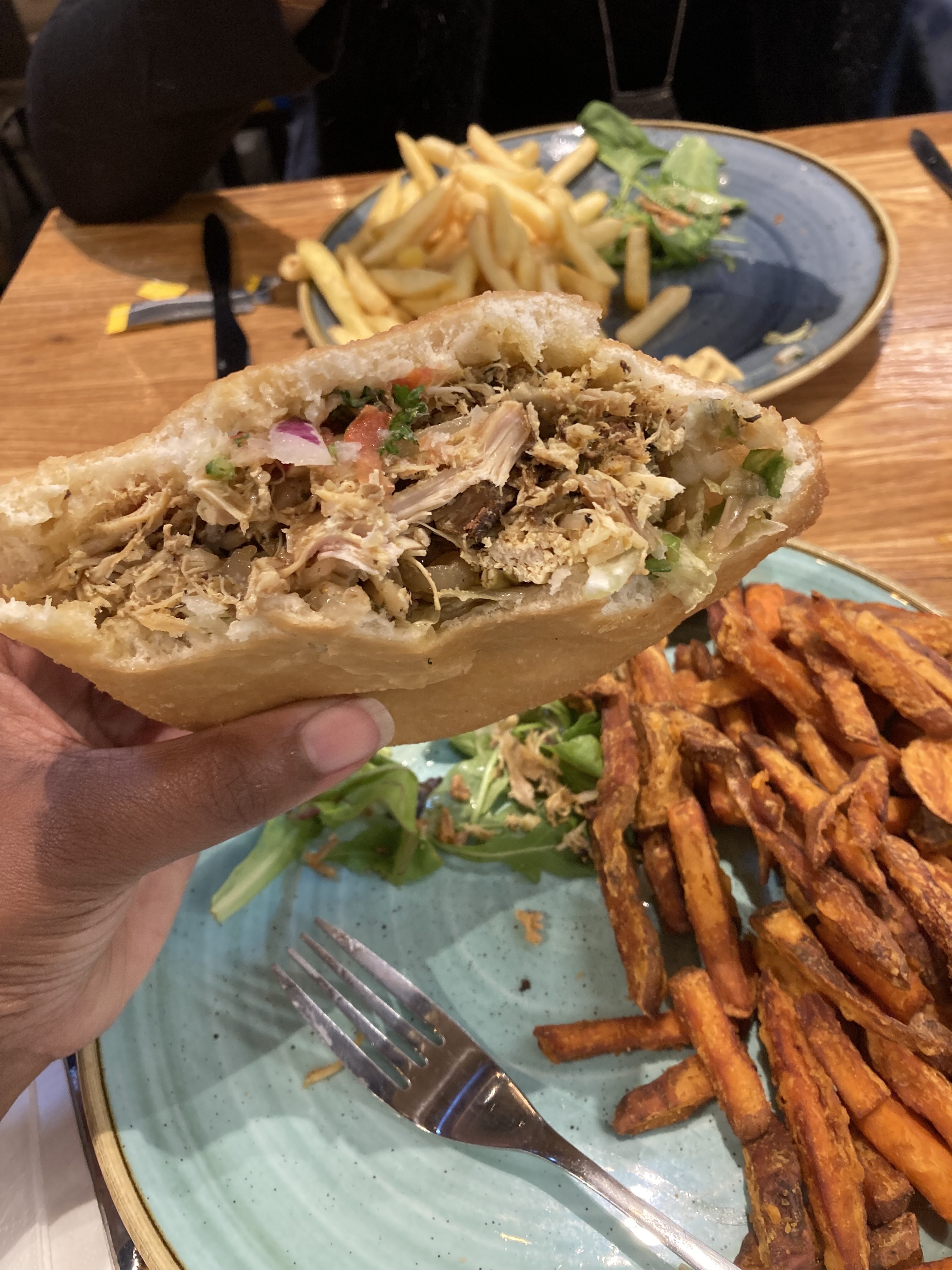 Les frites patates douces étaient mangeables. Par contre, heureusement que j'ai déjà mangé des bokits dans ma vie car j'aurais été dégoûté de ça à vie. J'ai demandé un bokit au poulet, j'ai eu un bokit à l'huile. J'ai pas réussi à finir. Et quand on demande des serviettes supplémentaires car il y en a partout, on dirait que chaque centime compte. Ça a l'air de vraiment pas plaire. Un des 2 jeunes n'était pas du tout aimable. Je ne recommande pas. L'insistance pour qu'on s'assoie à l'extérieur, je l'ai compris vu qu'il n'y avait personne ce fameux jeudi soir à 21h00. Mais on nous faisait ressentir quand même une pression pour terminer rapidement