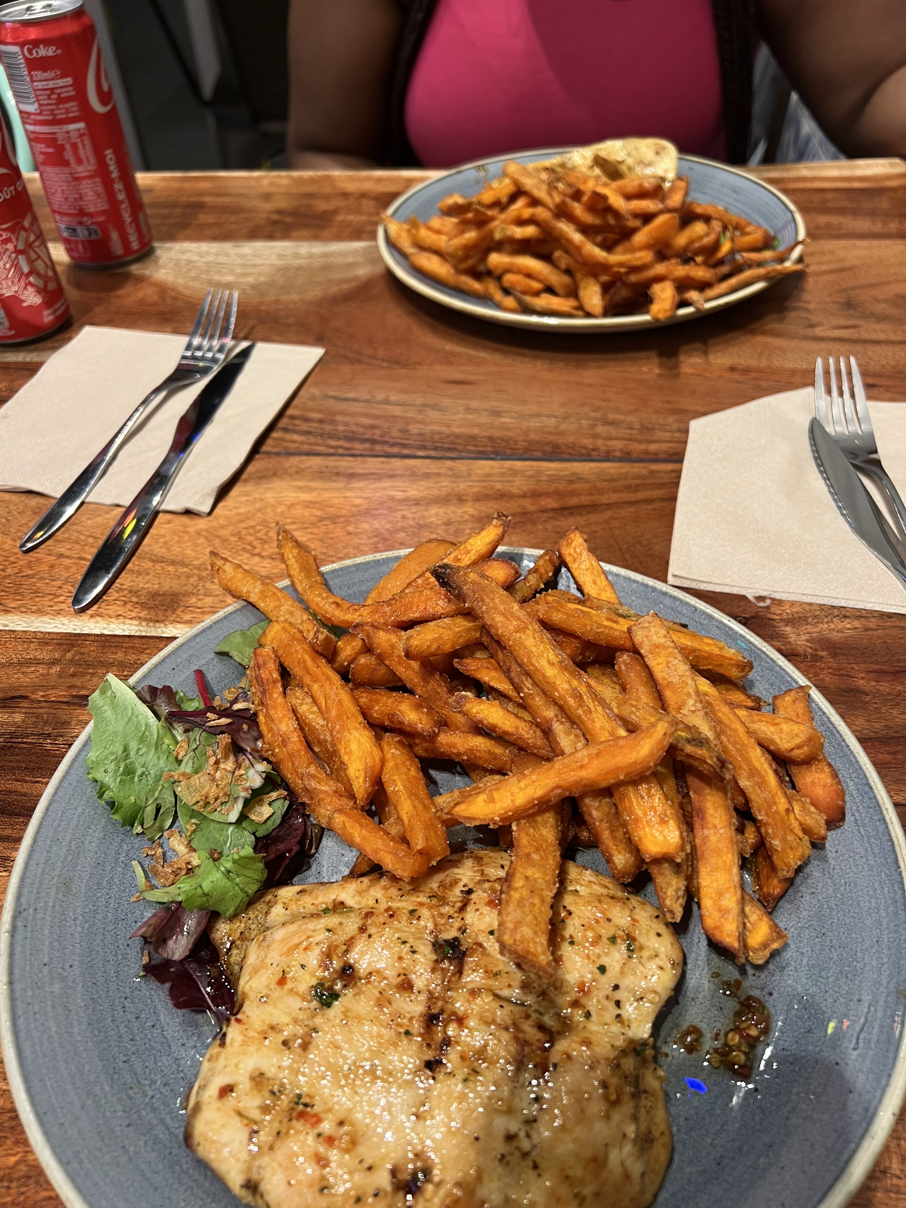 Le cadre du restaurant est très sympa. Le personnel y est accueillant. La Cuisse de poulet avec les frites de patate douce est un régal.