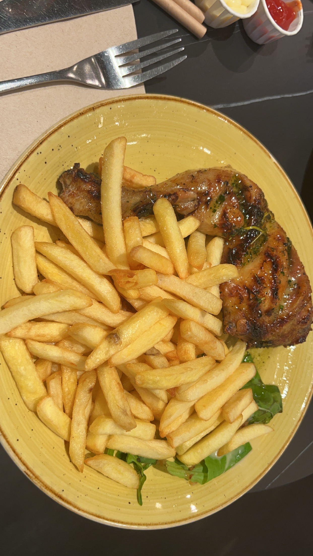 C’était très bon que ce soit le poulet, les accompagnements et l’assaisonnement des plats, en plus les portions sont généreuses. Le personnel est sympathique et dynamique. Que des bons points 👍