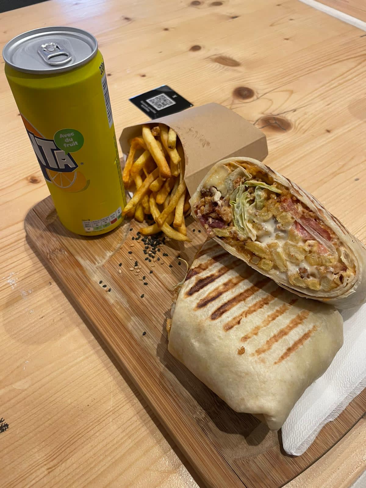 Je déconseille vivement , on dirait que les frites ont étaient réchauffées au micro onde , tacos sec et avec peu de goût , de plus le prix est excessif ( 16€90 pour un tacos en menu ) . Première et dernière fois pour ma part …