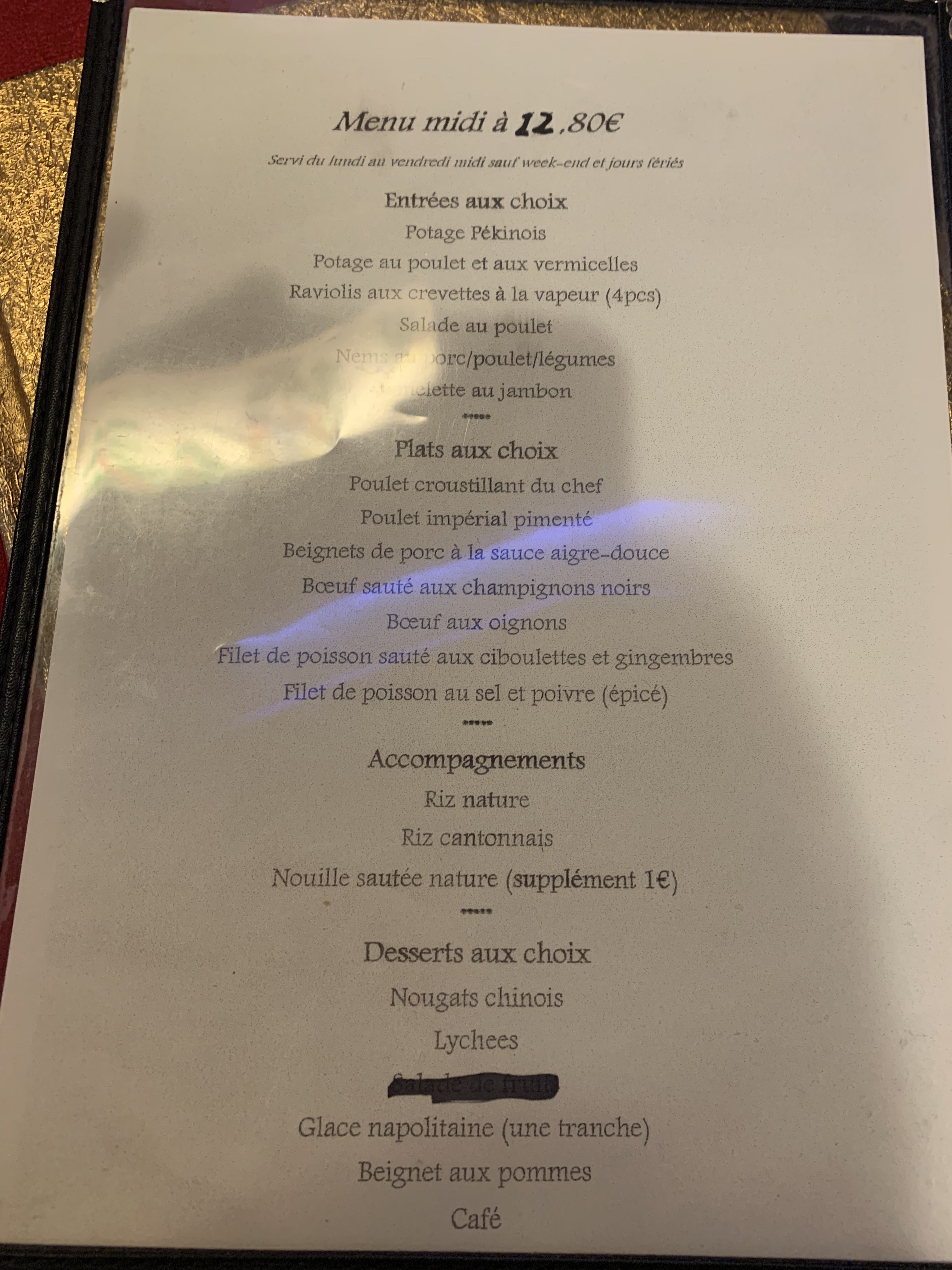 Je suis allée dans ce restaurant plusieurs fois, je n’ai jamais été déçue - le service est rapide, les plats excellents et les serveurs et serveuses super gentils. À mon récent passage j’ai goûté les nems aux légumes, le poisson à la sauce aigre douce, le vermicelle transparent, l’excellente eau de Coco, la bière chinoise et le chocolat liégeois. Tout était parfait !