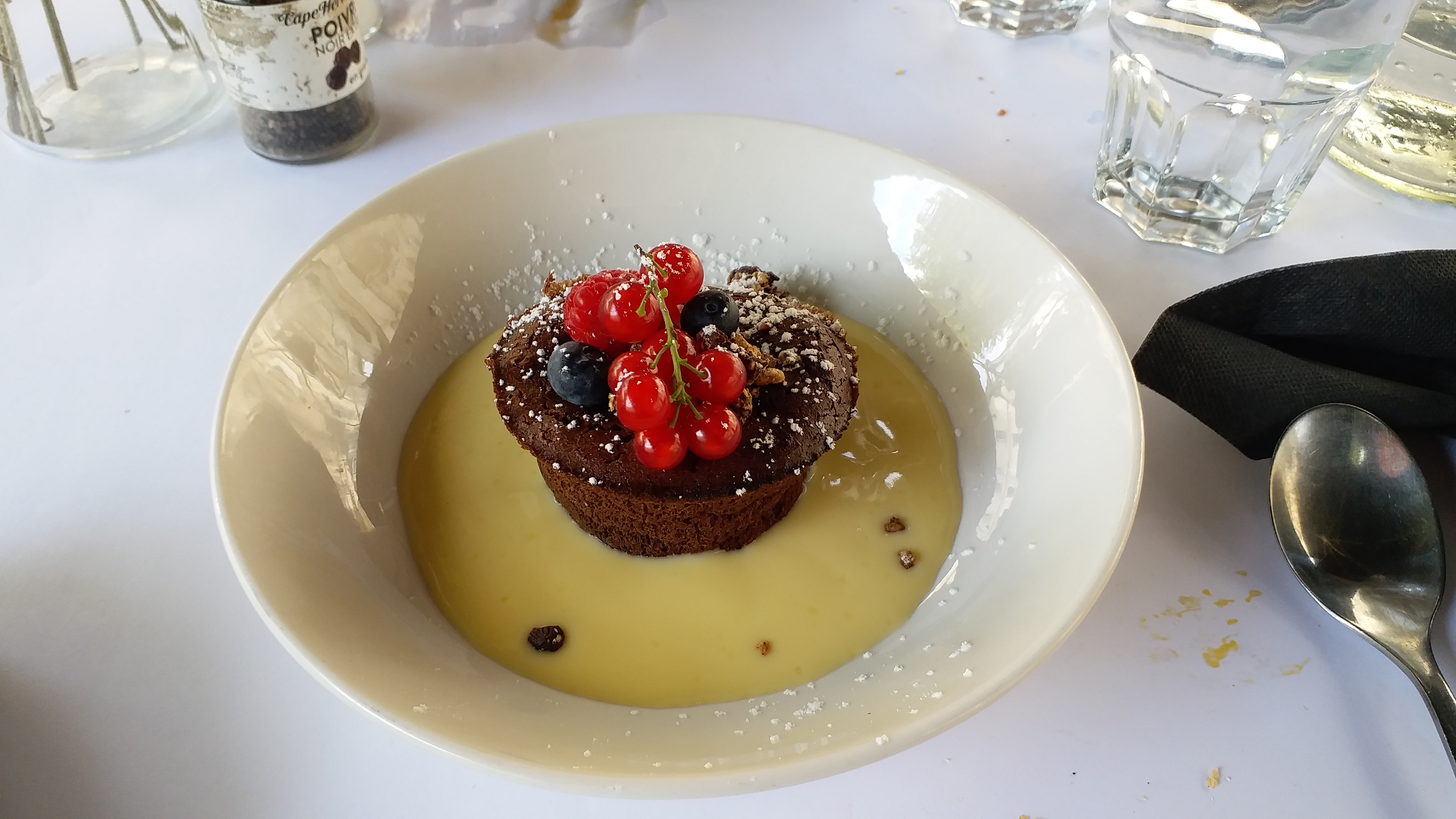 L'endroit est magnifique. Service très sympathique. Le premier plat (plat principal) de lentilles au curry (vagan) est très bon. Mais le dessert, le coulant au chocolat, est la pire chose que j'ai jamais mangée de ma vie.