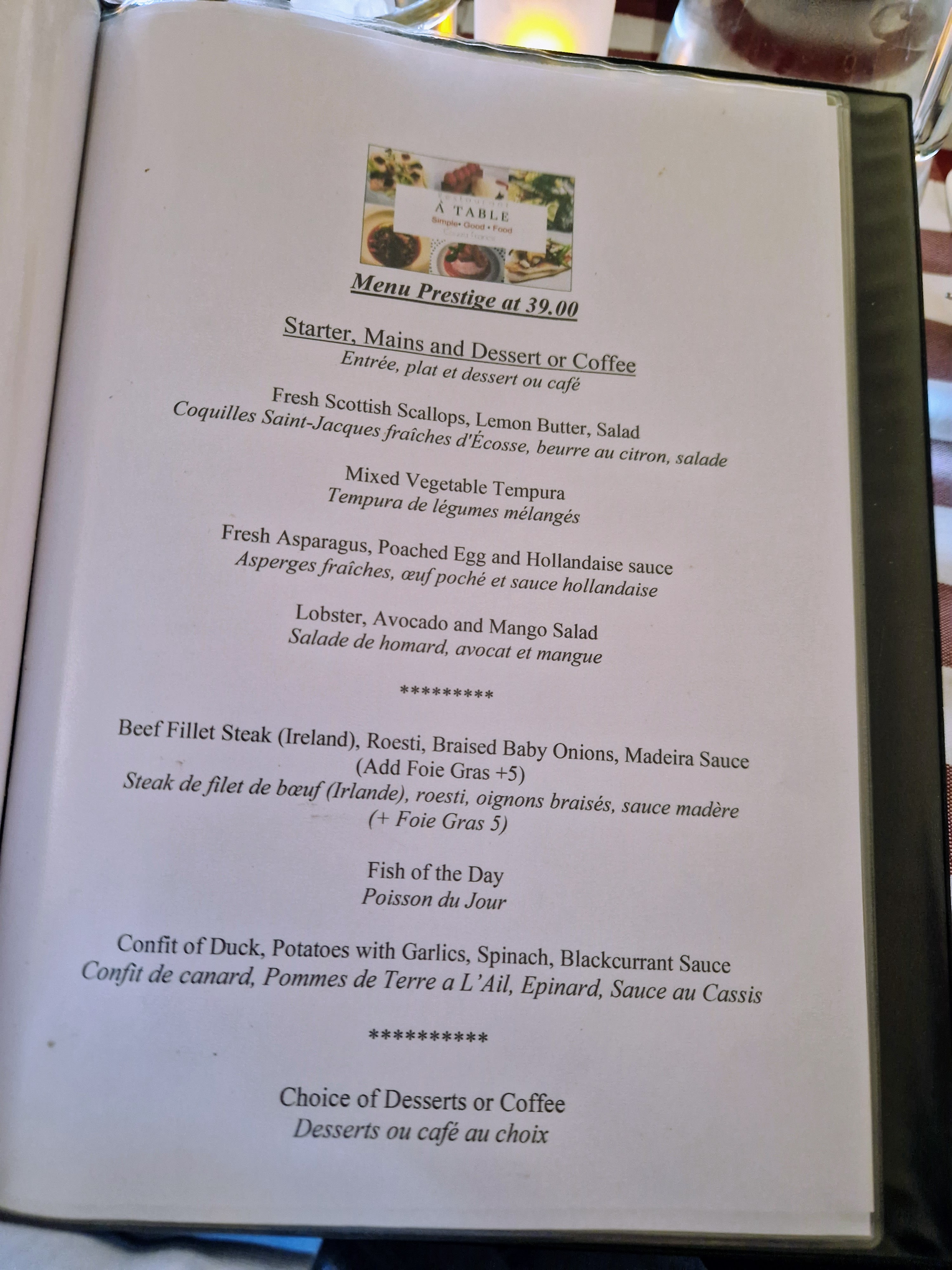 Le nouveau nom est A table, c'est excellent, très bon chef. Plats soigné et présentation de classe, et en plus pas cher ( 20 euros entrée et plats)