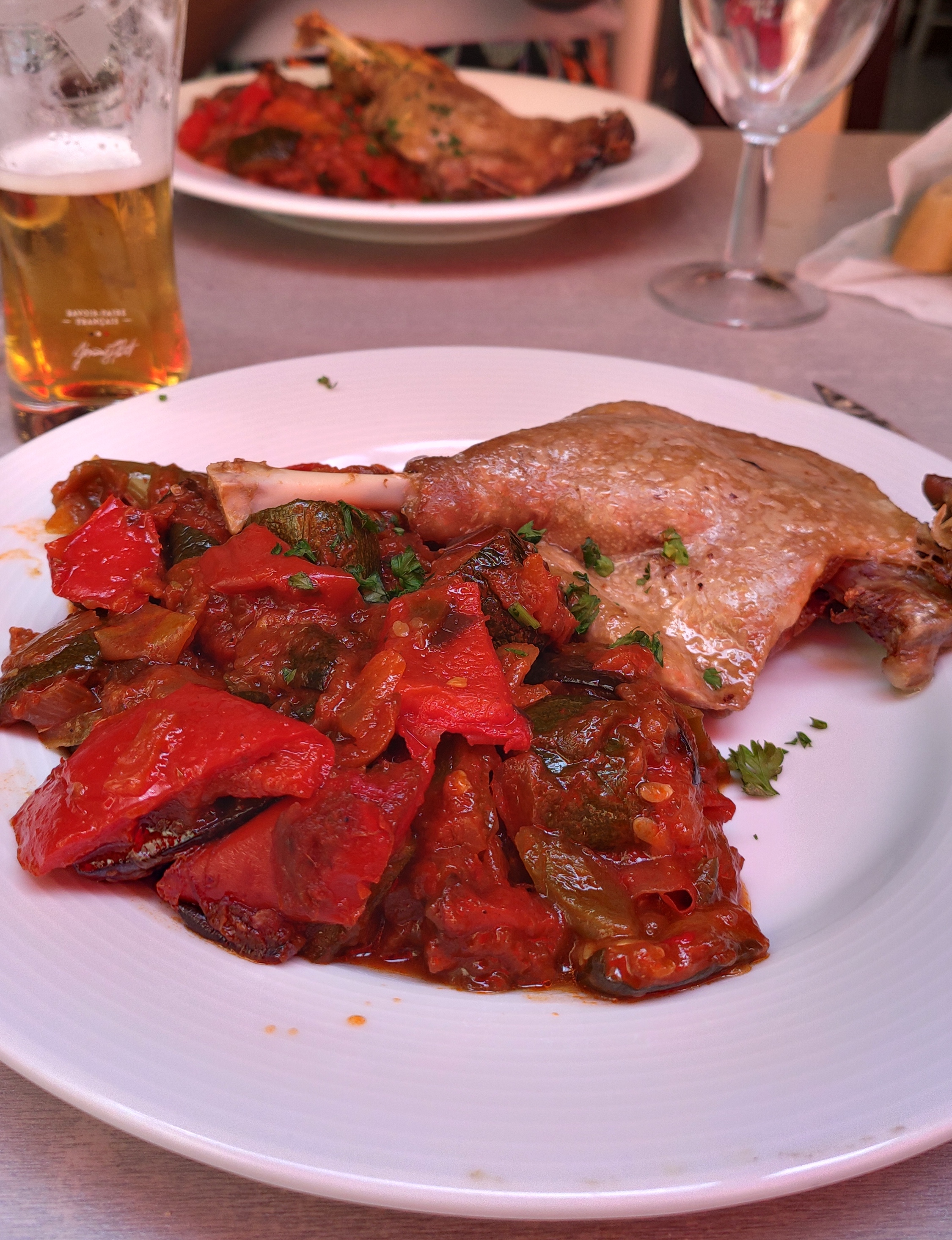 Salade Entrée généreuse (gésiers) suivi d'un magret frites maison et ratatouille Tout etait super je conseille de réserver Nous y sommes allés un mardi mais à 8h30 toute la terrasse était pleine
