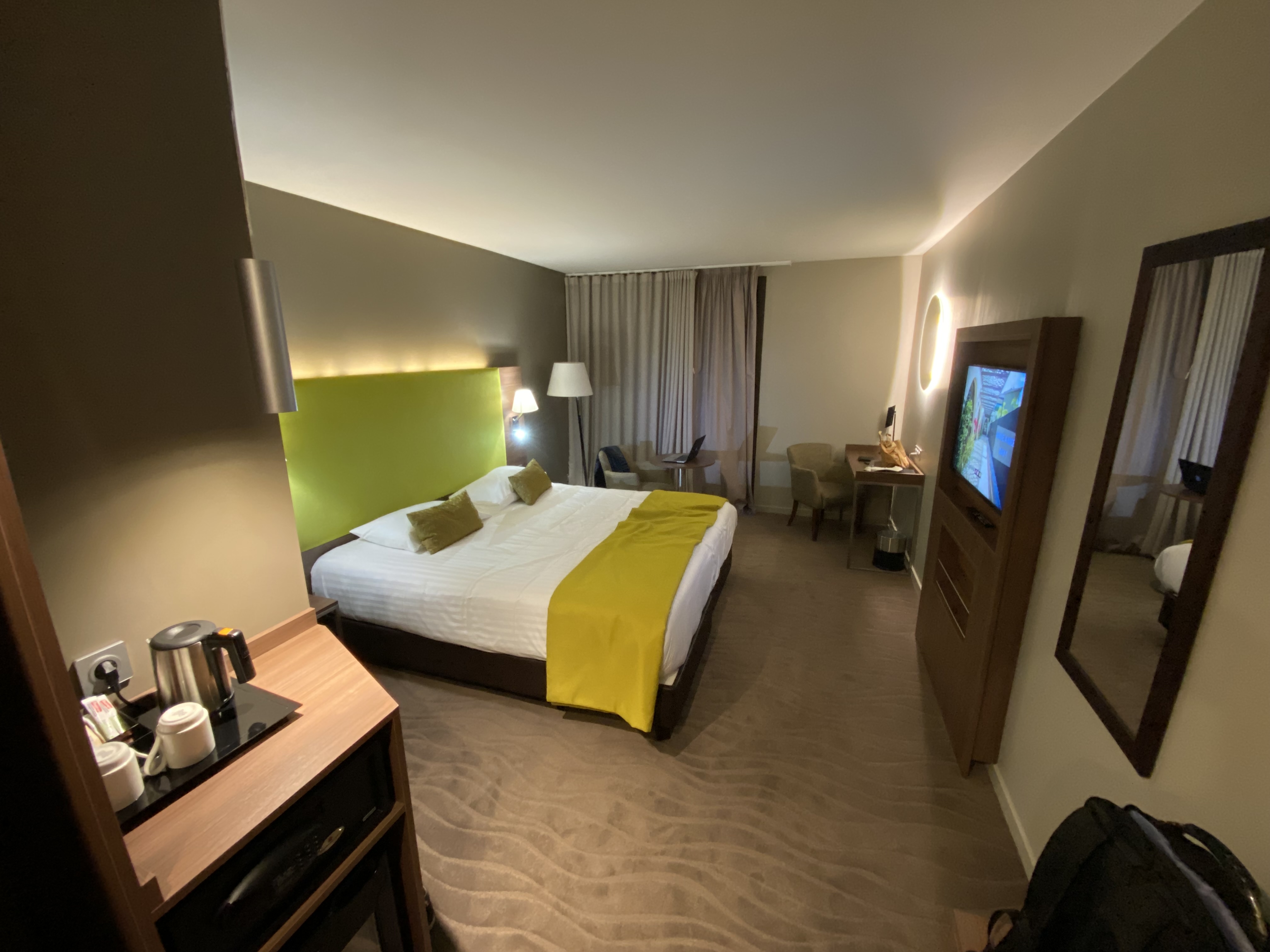 Les chambres sont parfaite (mise à part quelque traces dans la salle de bain mais il s'agit plus d'usure que de propreté) , le plateau d'accueil est parfait pour prendre une petite boisson le soir. Par contre , les services sont en dessous d'un quatre étoiles. Le petit déjeuner est copieux mais tout était industriel et le buffet n'a pas été complété au fur et à mesure du service. C'est bien dommage même si je comprends la logistique pour éviter le gâchis, je trouve ça dommage que des pains au chocolat par exemple , ne soit pas servit pour tout le monde. De plus quand je suis arrivée, il restait quasiment plus aucune table dressées , j'ai vu des personnes le faire eux même (probablement des habitués). Je pense vraiment que peu , voir rien n'était vraiment fait maison (mis à part une découpe de fruit et la cuisson des œufs/ bacon). Pour quasiment 20€ c'est décevant. Enfin j'ai dîner le soir sur place, la carte a l'extérieur n'est pas la carte que vous avez à l'intérieur (ce serait judicieux de mettre à jour). Le dîner était bon , et les prix sont en adéquation avec ceux de la région. Le service était correct également. Je pense qu'une carte un peu plus réduite et plus locale serait un gros plus pour cet hôtel qui accueille pas mal de congrès. En tout cas je remercie beaucoup la personne de l'accueil de mon arrivée qui a été extrêmement gentille et serviable.