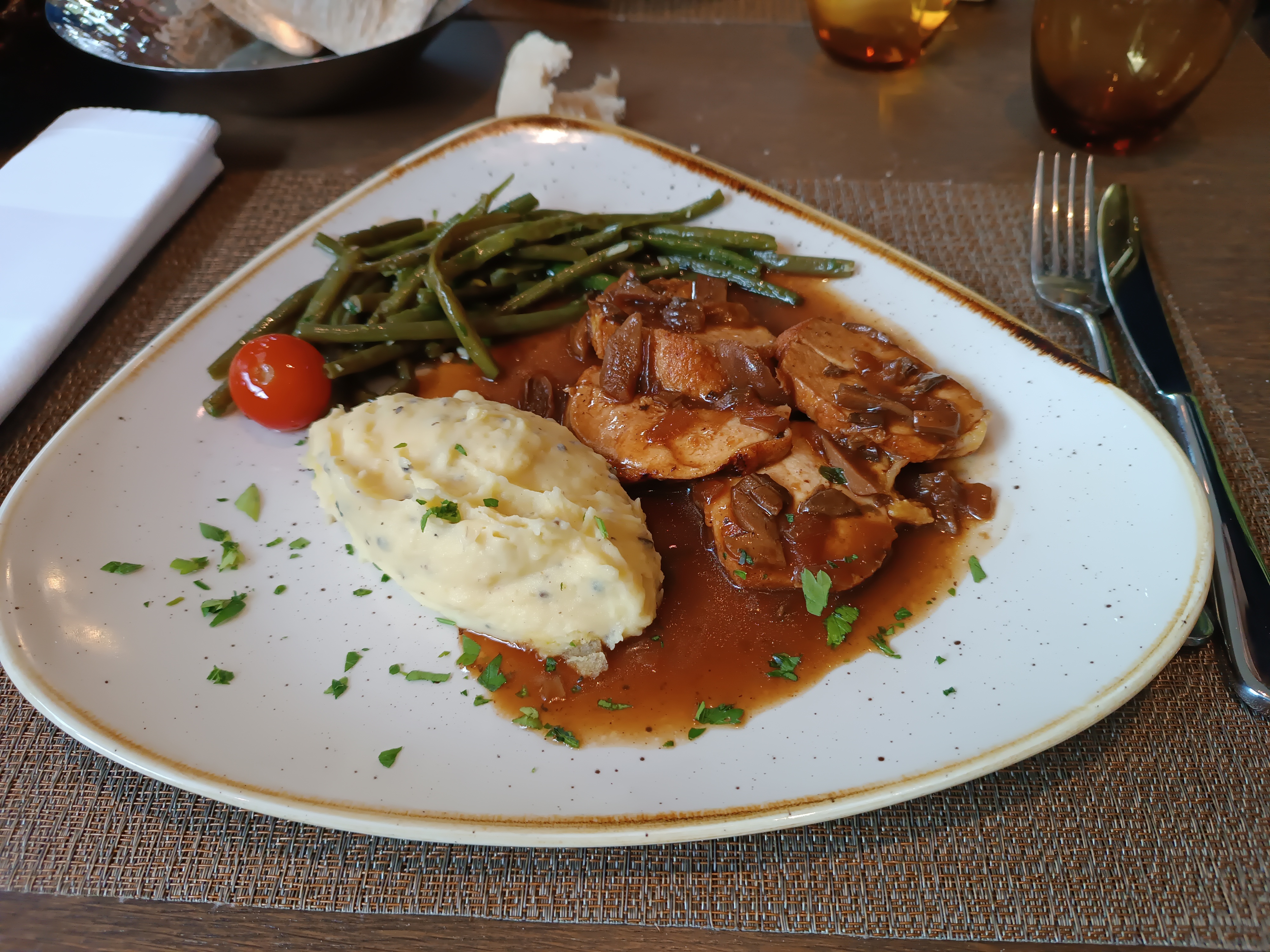 Restaurant agréable ,propre et nous avons tres bien mangé,alors les raviolis à la truffe un régal je m'en souviens encore, la serveuse agréable 👍👍👍🦋