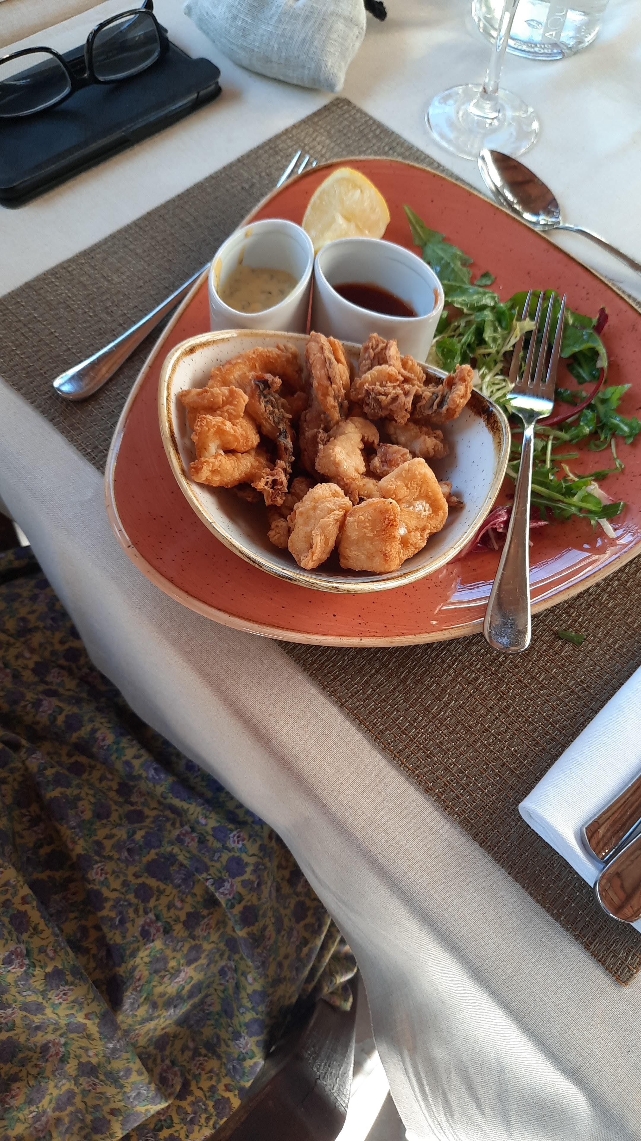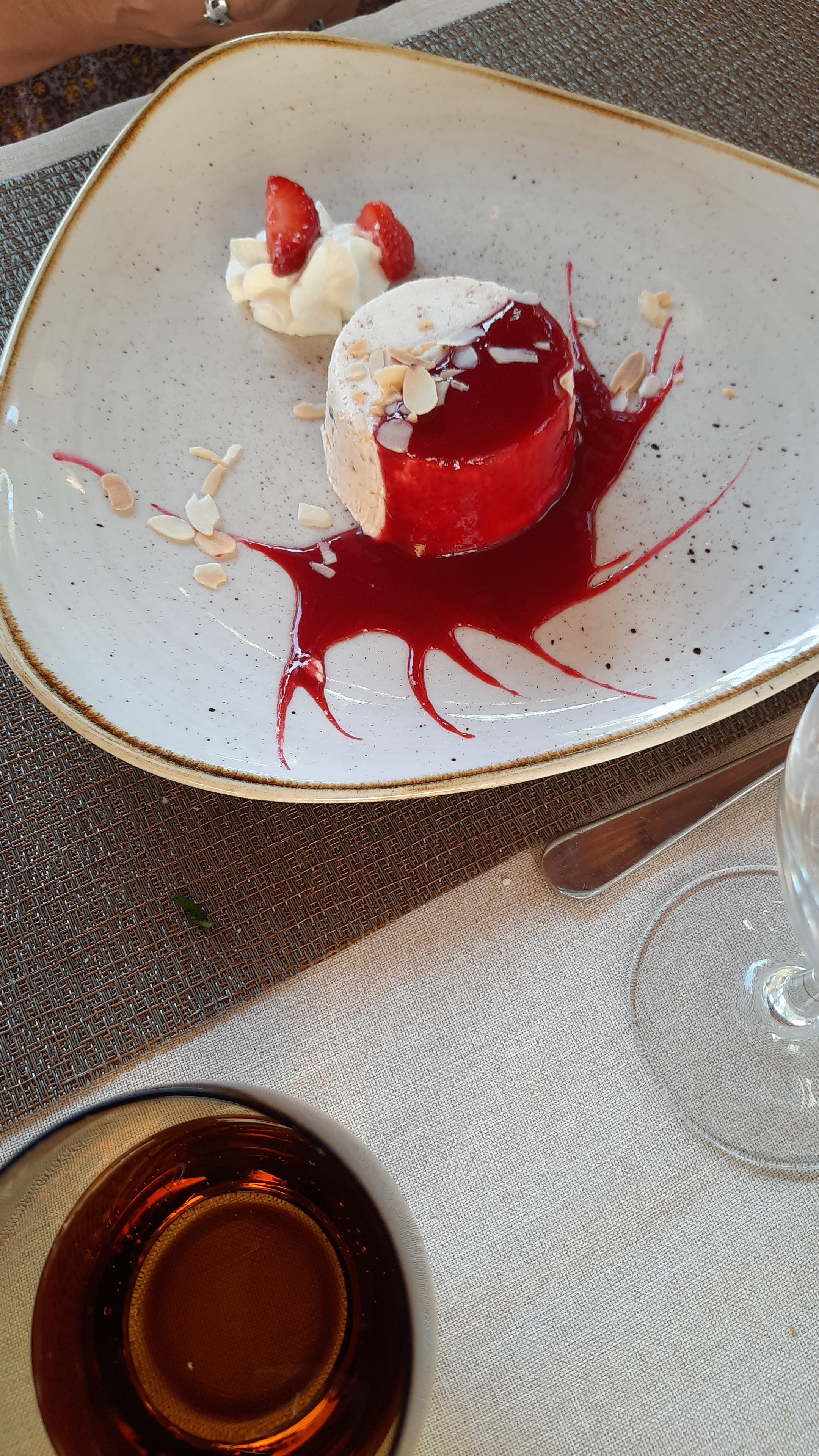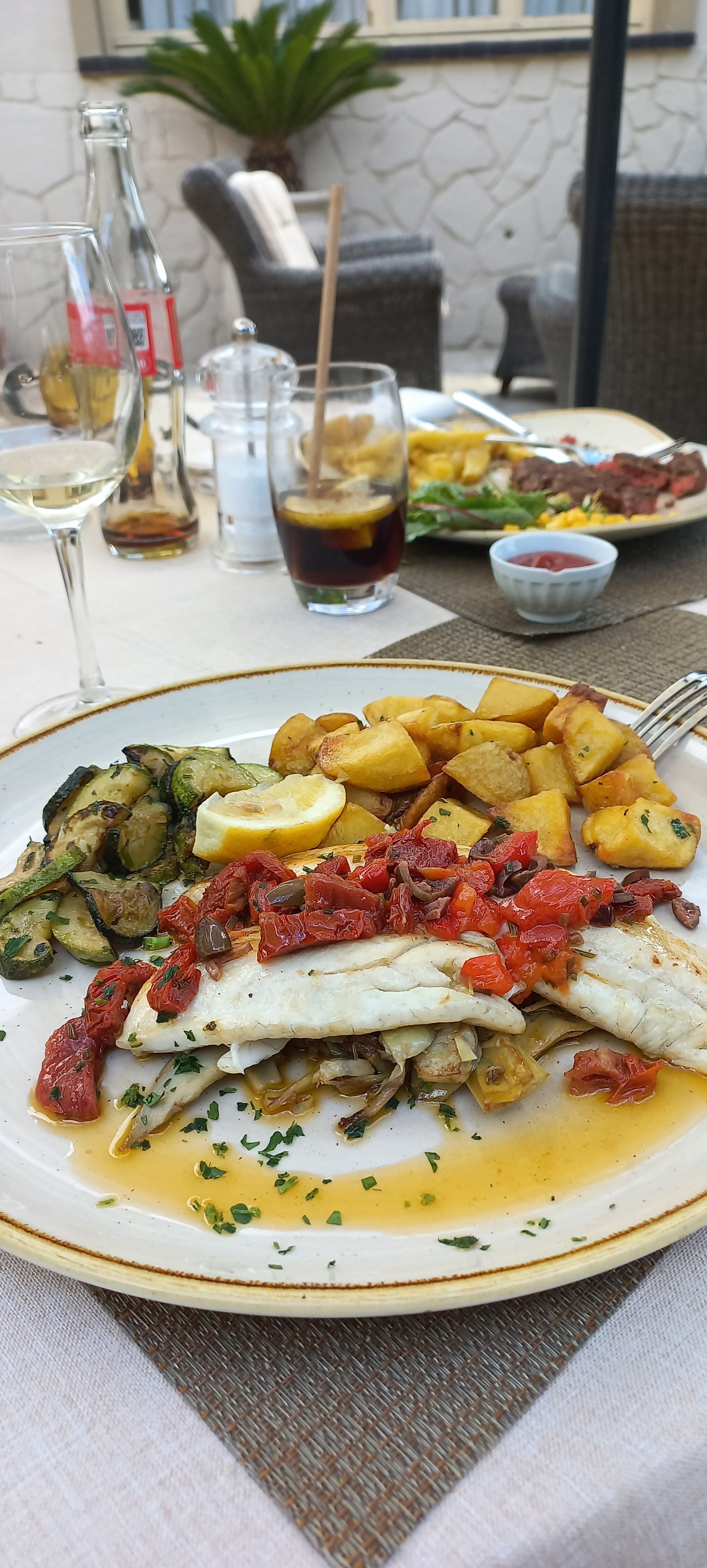 Restaurant génial !!!! On a mangé en terrasse dans un cadre sublime à l'abri de la chaleur avec des fontaines relaxantes. Nous nous sommes régalés avec les raviolis maison (un régal) un superbe filet de loup délicieux et les ravioles à la daurade accompagné de noix de Saint Jacques délicieuse. Pour résumé tout est génial : lieu, repas et le personnel au top et très sympathique .