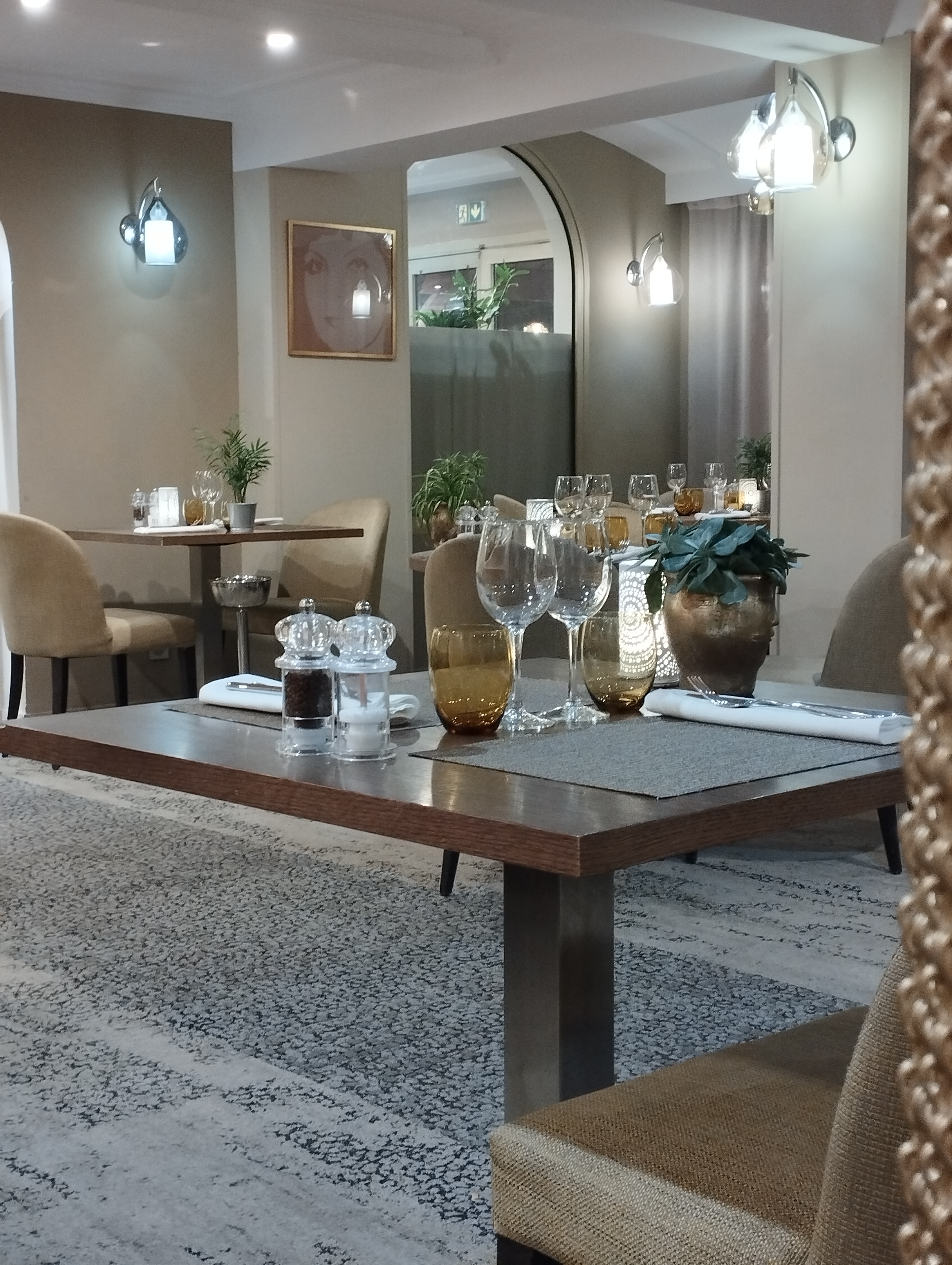 Invitée pour un anniversaire nous avons été très bien accueillis par l équipe de restauration. Agréable repas, de l amuse bouche au dessert tout était PARFAIT 👌. service ultra professionnel d une très grande qualité de prestations. Les quantités dans les assiettes sont généreuses, bien présentés. Les extérieurs sont jolis et cosy. Nous avons eu le plaisir de voir sur plusieurs panneaux le nom de la salle réservée ainsi que nom et prénom de celle qui fêtait son anniversaire. Je recommande malgré qu il faut garder en tête que c est un hôtel 4 étoiles.