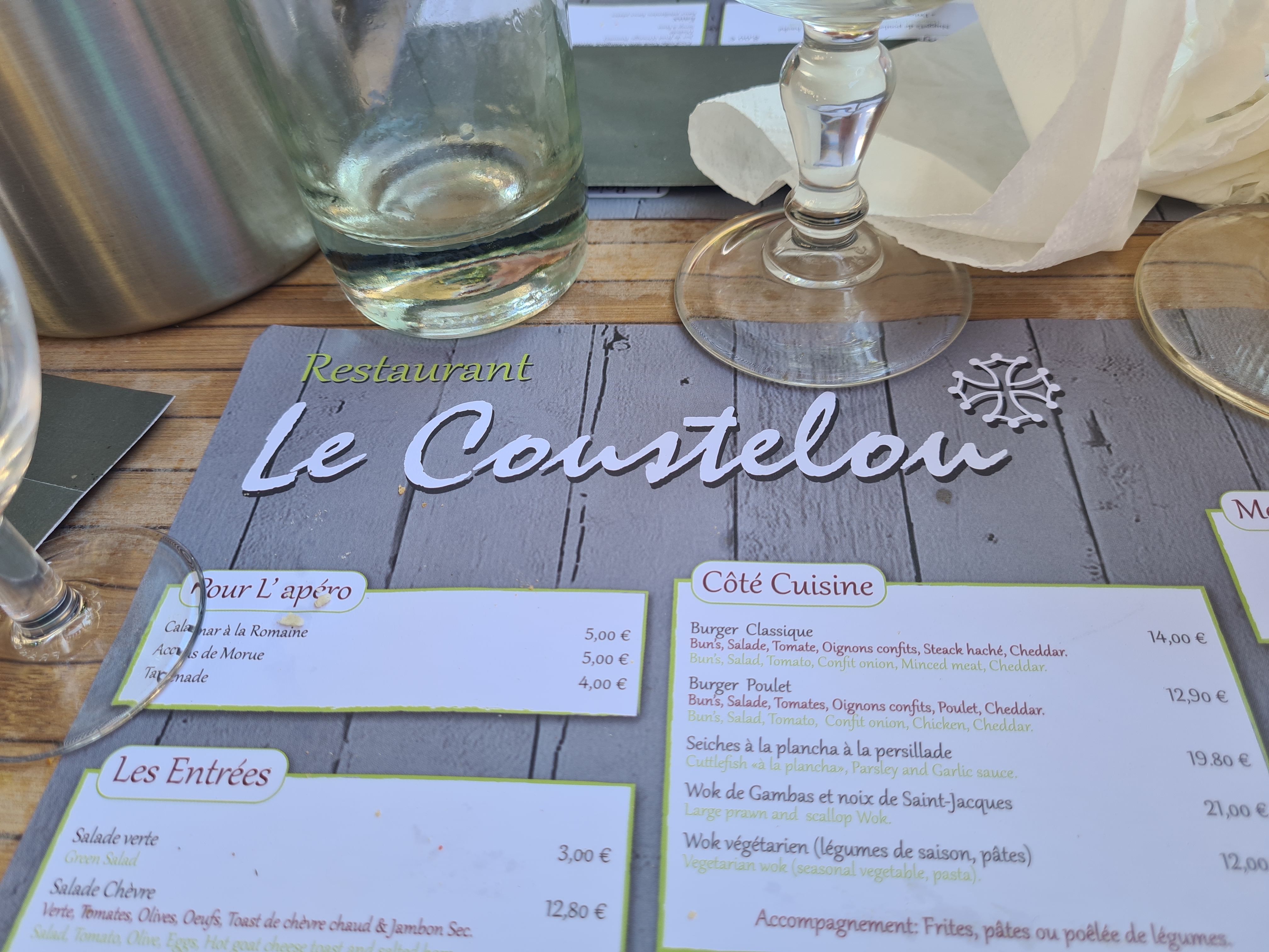 Peu de choix, attente entre chaque plat, commande non respecté et coustellou servi encore rouge et coriace, serveur très agréable par contre le patron très antipathique, non commercial voir agressif je n'y retournerais jamais et ne le conseil en aucun cas
