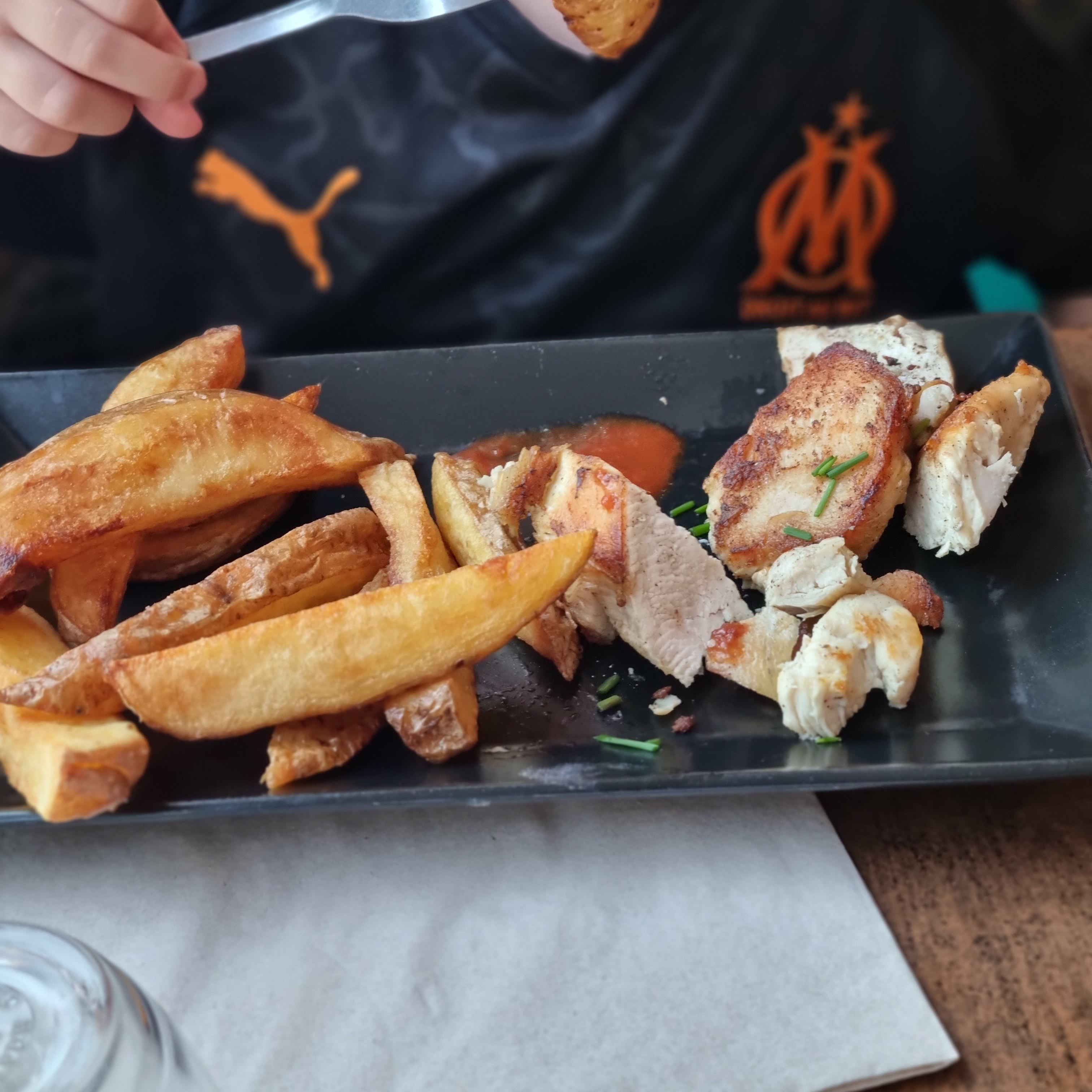 Ça faisait longtemps que je n'avais pas mangé d'aussi bonnes frites. L'assiette végétarienne est magnifique. L'équipe est super sympa. Bravo à tous. Et en bonus l'île du Frioul. Le top.