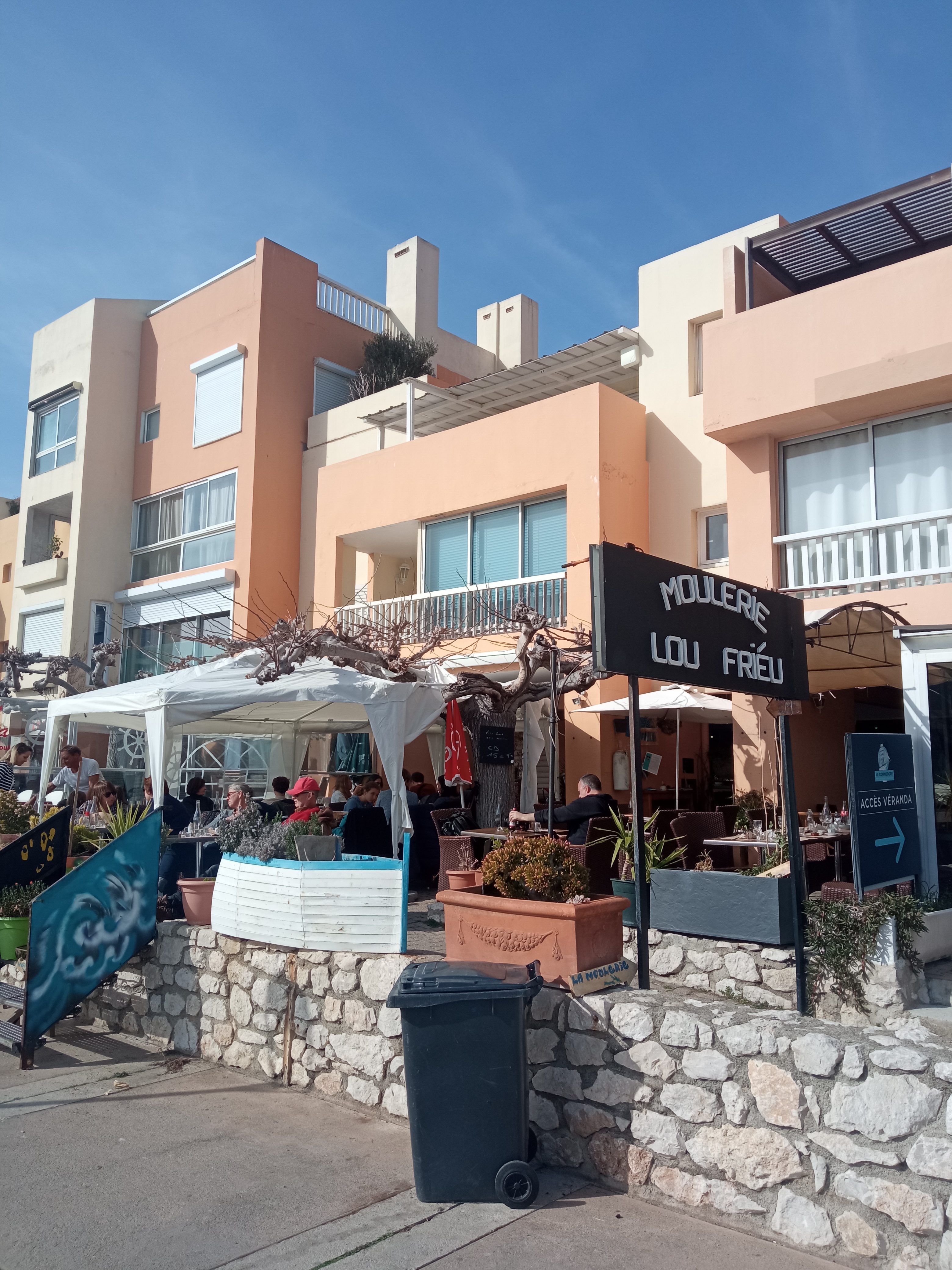 C'était parfait ! Un petit restaurant/moulerie avec une vue incroyable sur le port du Frioul, face à l'eau. L'ambiance est conviviale, la serveuse est aux petits soins, vraiment très gentille. Tout était parfait. La salade de poulpe frais... Wow! Ma soeur et moi n'avons jamais mangé cela. Le poulpe était tendre et moelleux à l'intérieur et croustillant à l'extérieur. Agrémenté de petits légumes et aromates frais, qui contrastent avec la tiédeur du poulpe. C'était vraiment un régal ! Je recommande à 1000% !! Nous avons ensuite commandé des moules sauce roquefort (bien crémeuse et gourmande) et sauce curry (cuisinée au lait de coco donc légère). Les frites maison sont délicieuses et servies avec la mayonnaise et le ketchup maison. Le vin rosé bio était très bon et bien frais (parfait quand il fait très chaud!) Nous avons vraiment été conquises. Tout était parfait. J'y retournerai avec d'autres membres de la famille sans hésitation!