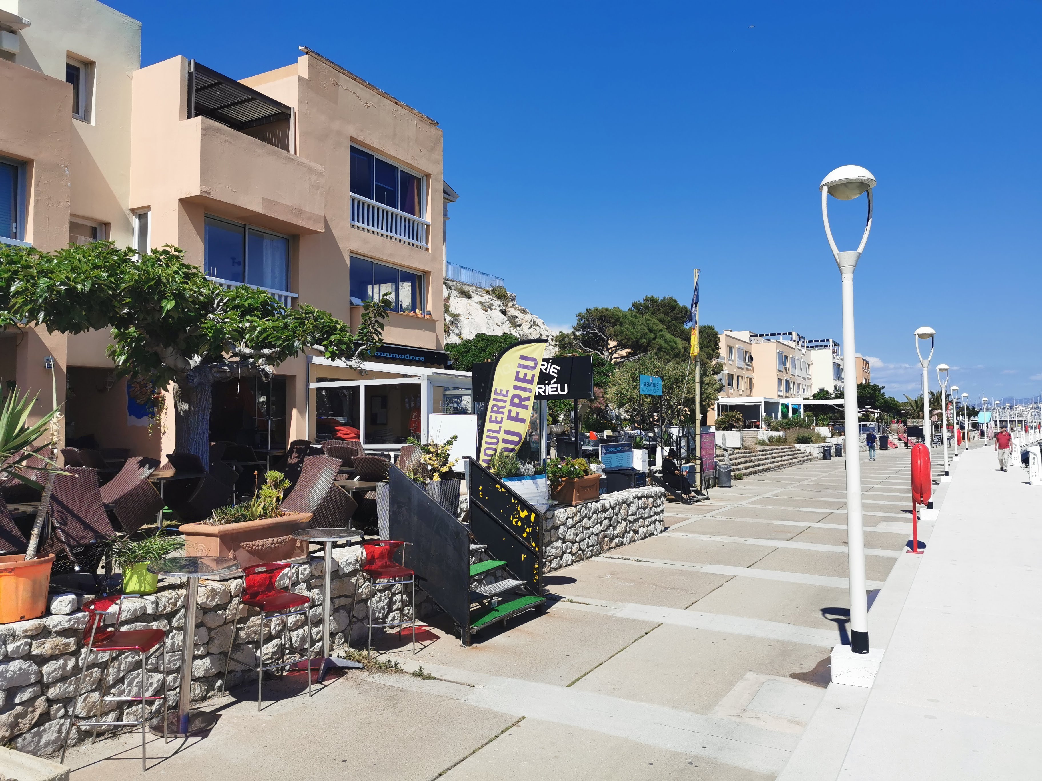 Nous nous y sommes rendus en début de soirée afin de profiter jusqu'au bout des charmes de l'île du Frioul. Ce restaurant est situé aux abords du port de cette île. Donc au calme car pas de voitures sur l'ile.....Nous avons pu déguster un plat de moules accompagné de frites. Que dire à part que c'était très bon. Que le personnel agréable et souriant. Que la vue est très sympa et en prime le prix est tout à fait correct. En résumé ne pas hésiter.
