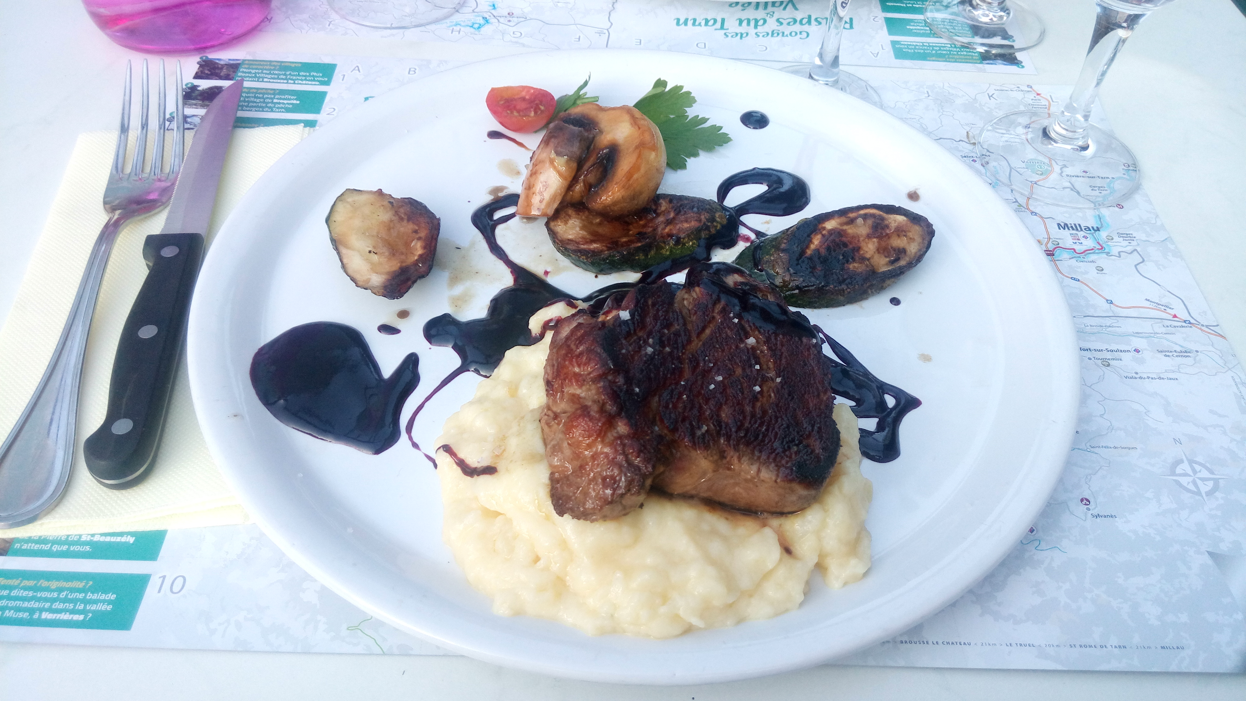 Une entrecote de l'aubrac, fondante a souhait, un délice. Tres bon accueil et repas savoureux. C'est bon l'aveyron!