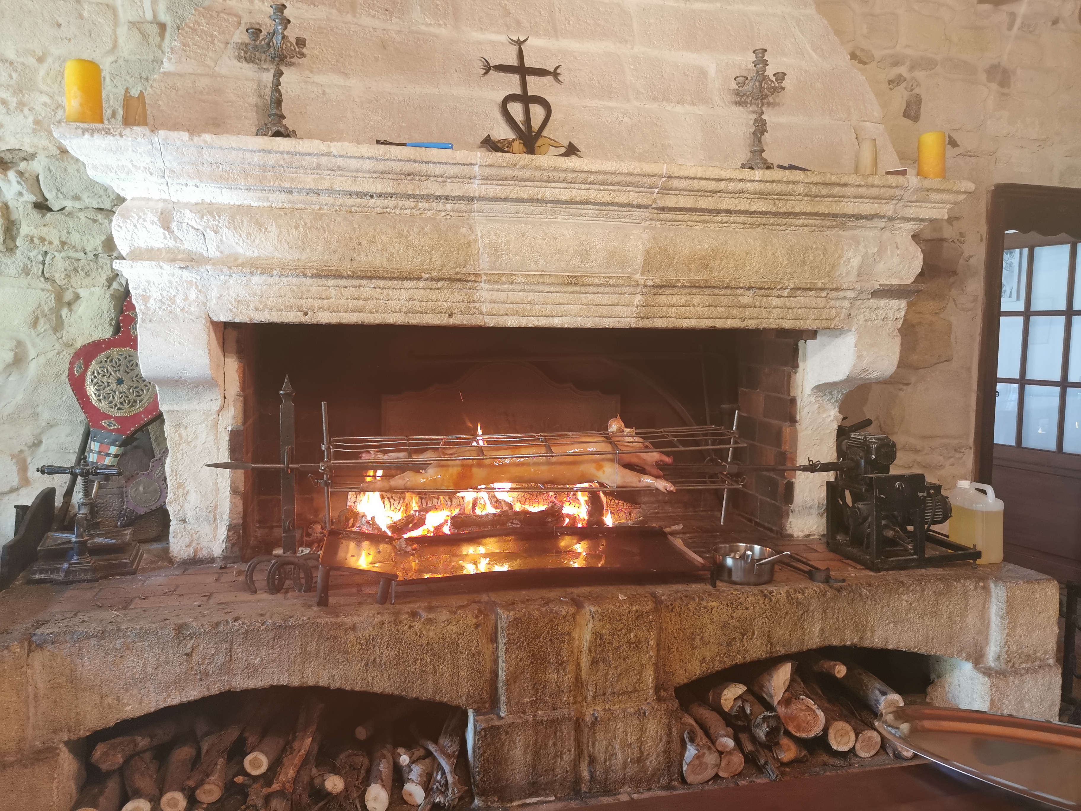 Quel bel endroit, un très bon repas, sandre à la cheminée et cochon de lait à la broche. Cuisson parfaite 👍, plateau de fromage et un dessert très rafraîchissent. Ambiance très originale. Personnel très aimable.