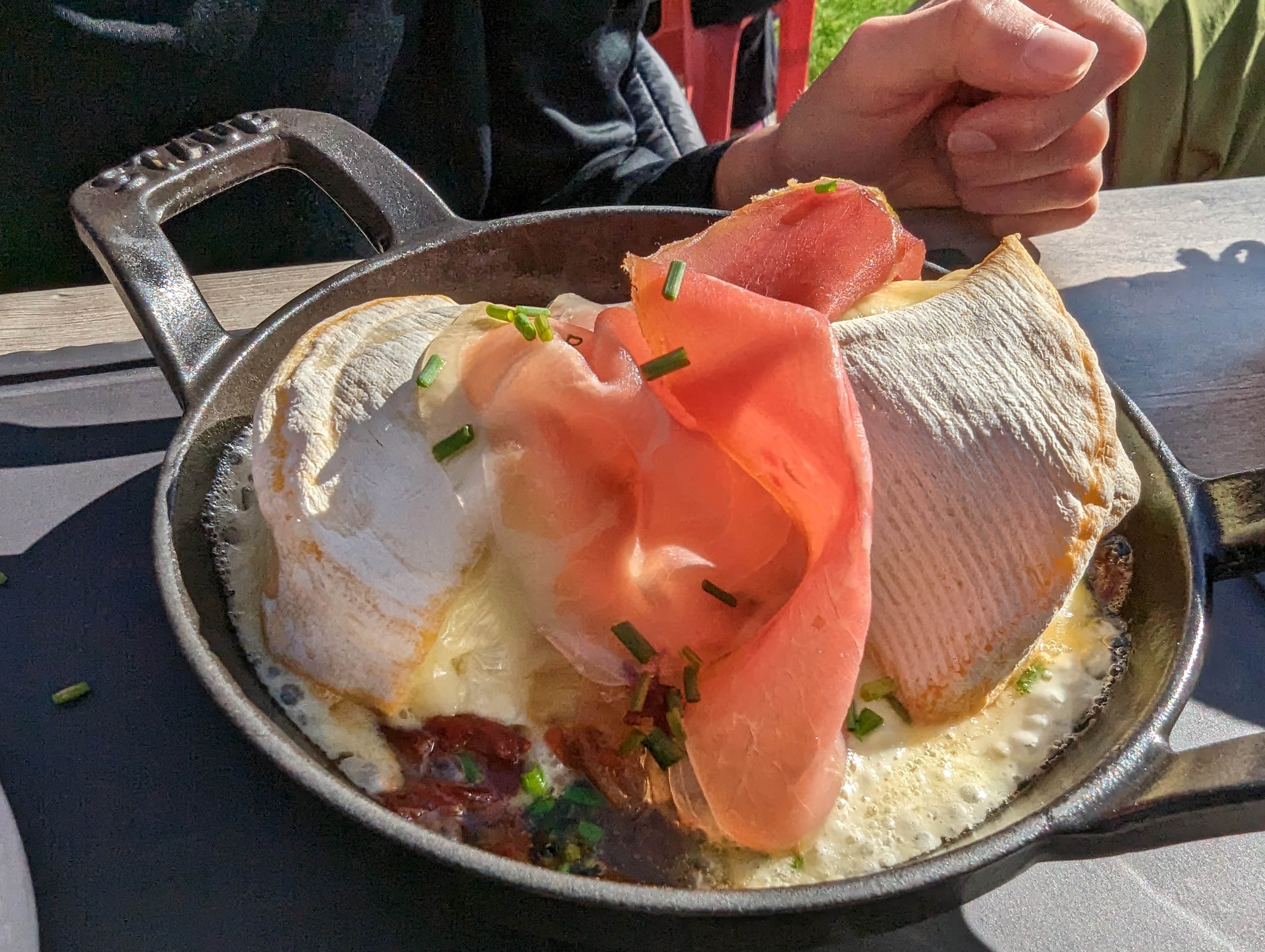 Superbe ambiance bien reçus, belle découverte de leur spécialité que j adore et le top vue sur le mont blanc magnifique.. je recommande ++++