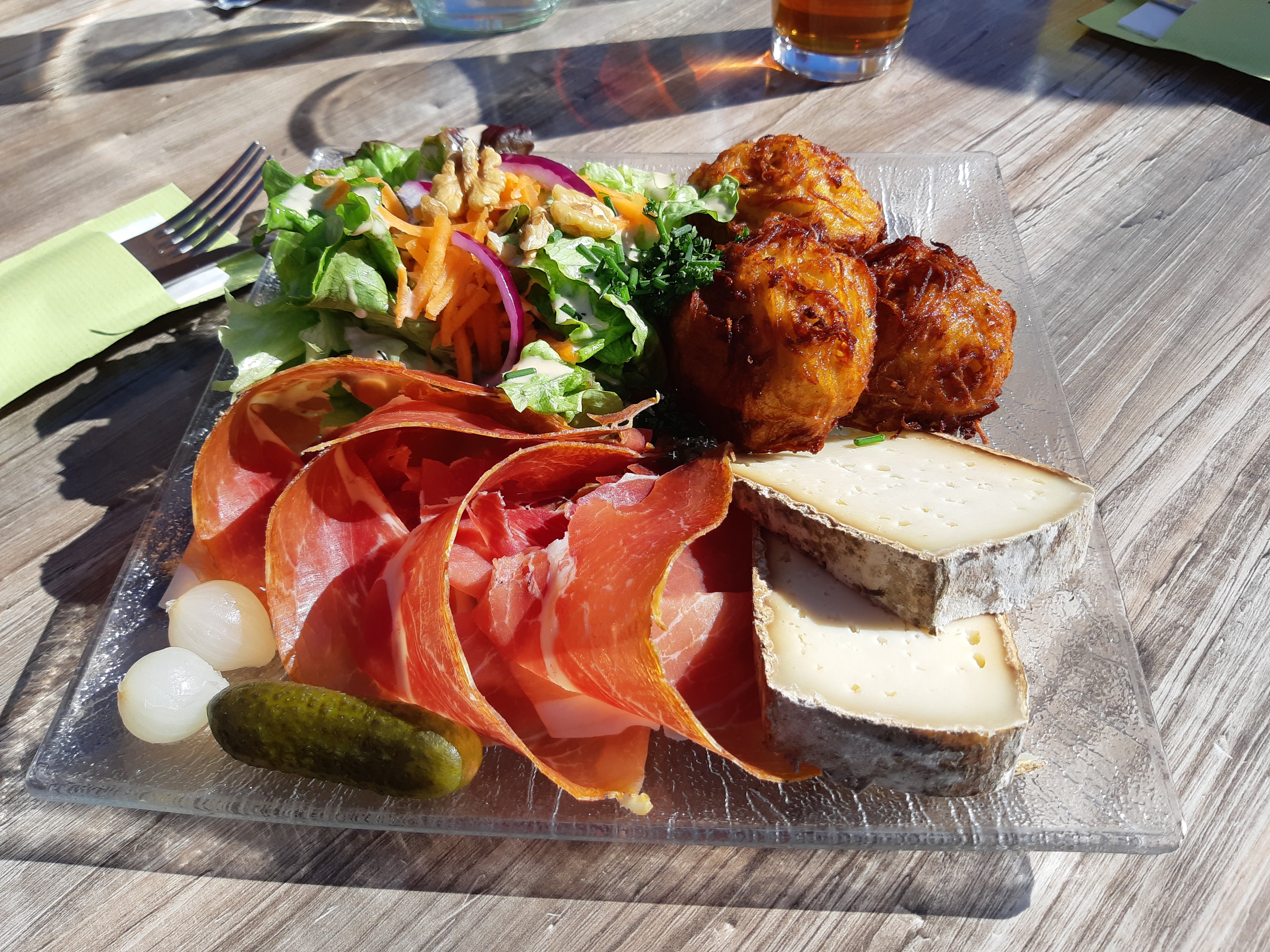 Avec une météo au rdv, un cadre idyllique extérieur mais l'intérieur reste très sympa également, nous nous sommes posé histoire de déjeuner ouf nous n'avions pas réservé mais l'équipe nous à fait une place malgré tout, nous avons pris juste une planche charcuterie et une planche fromagère, qui semblait de qualité, malgré tout je trouve que les prix pratiqués restent un temps soit peut élevé en général au niveau de la carte.