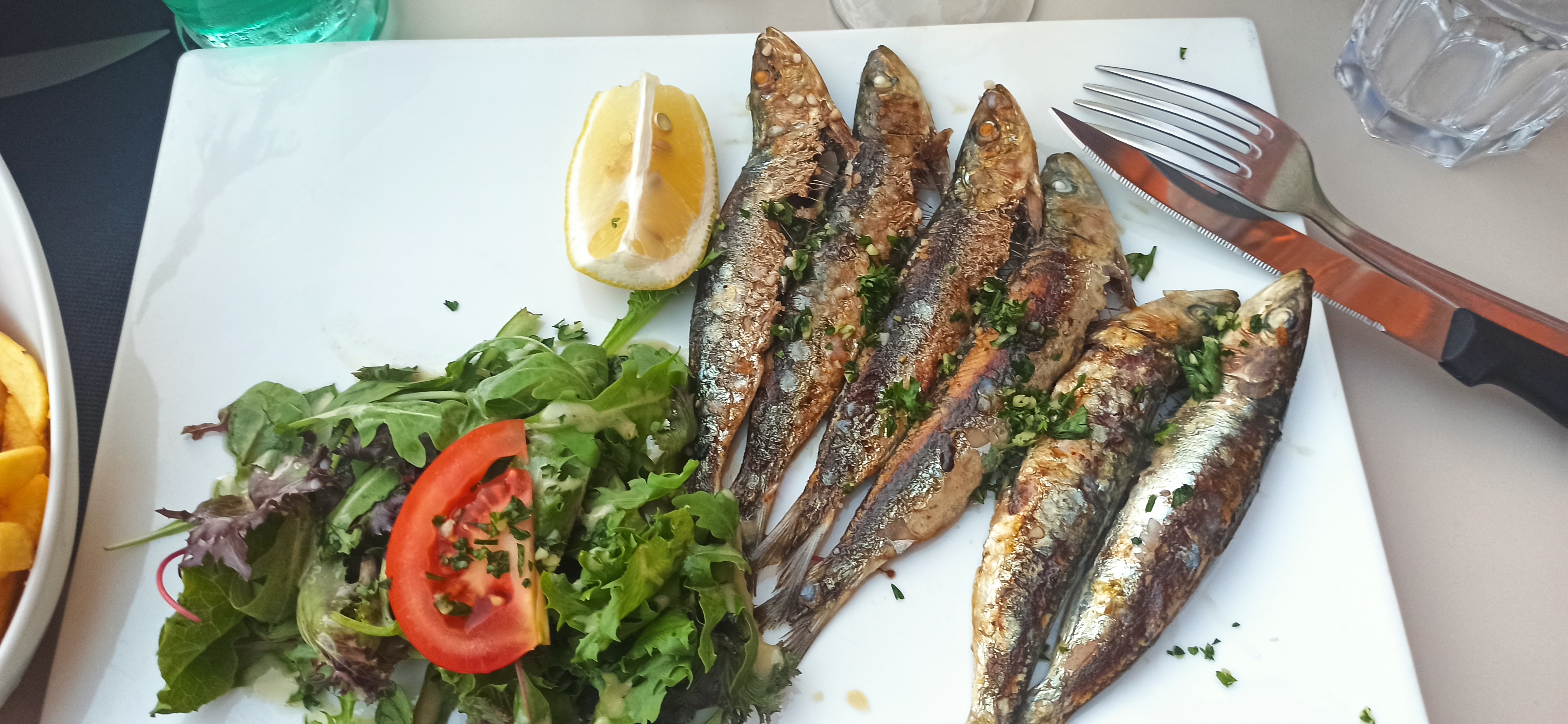 Restaurant calme et un grand large choix de plats j ai adoré les sardines grillés servit avec une salade et des frites à un prix très raisonnable