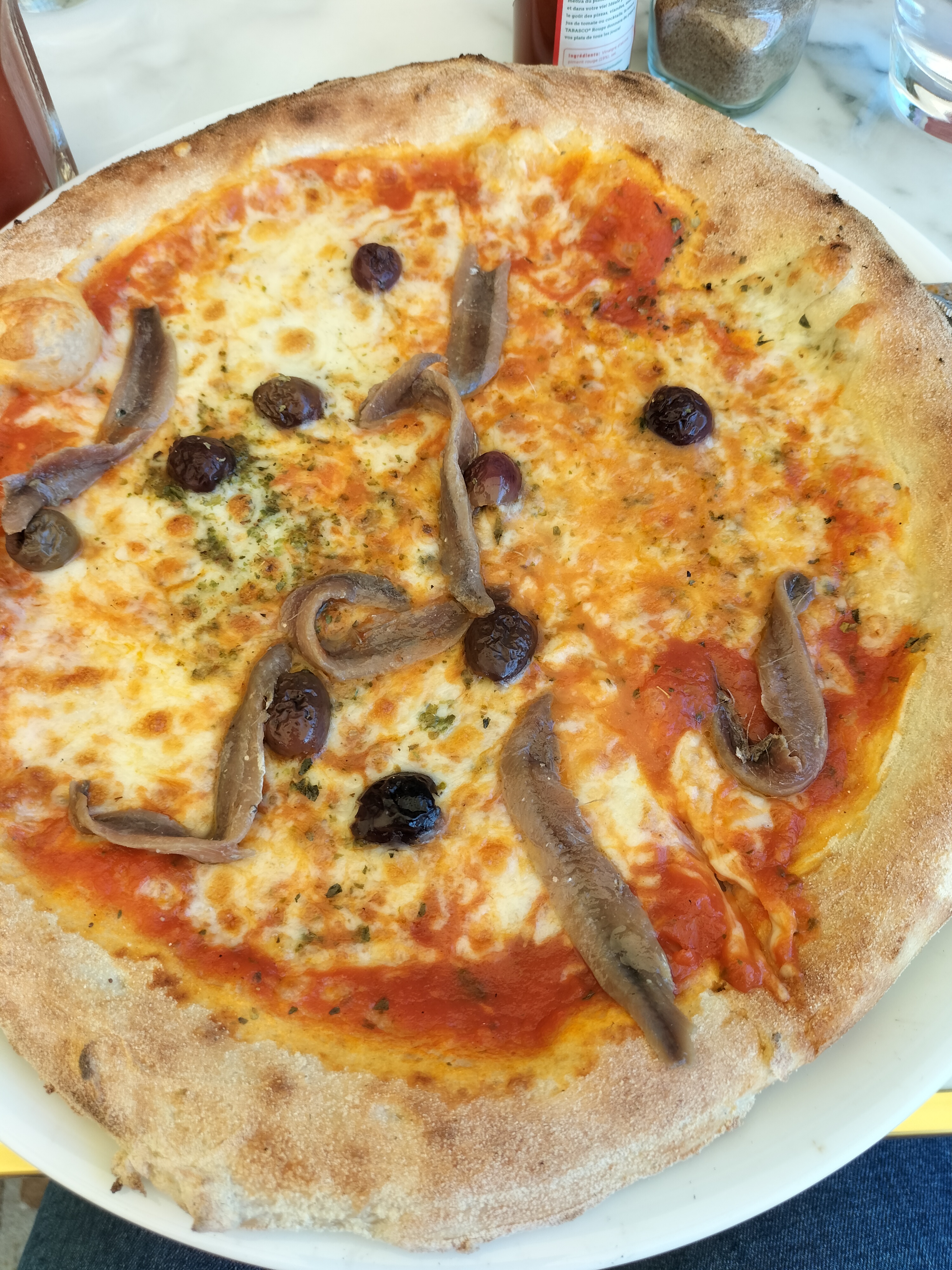 Très bon accueil, pizza à la hauteur de leur prix. De l'eau, des olives, du pain.....on y retournera
