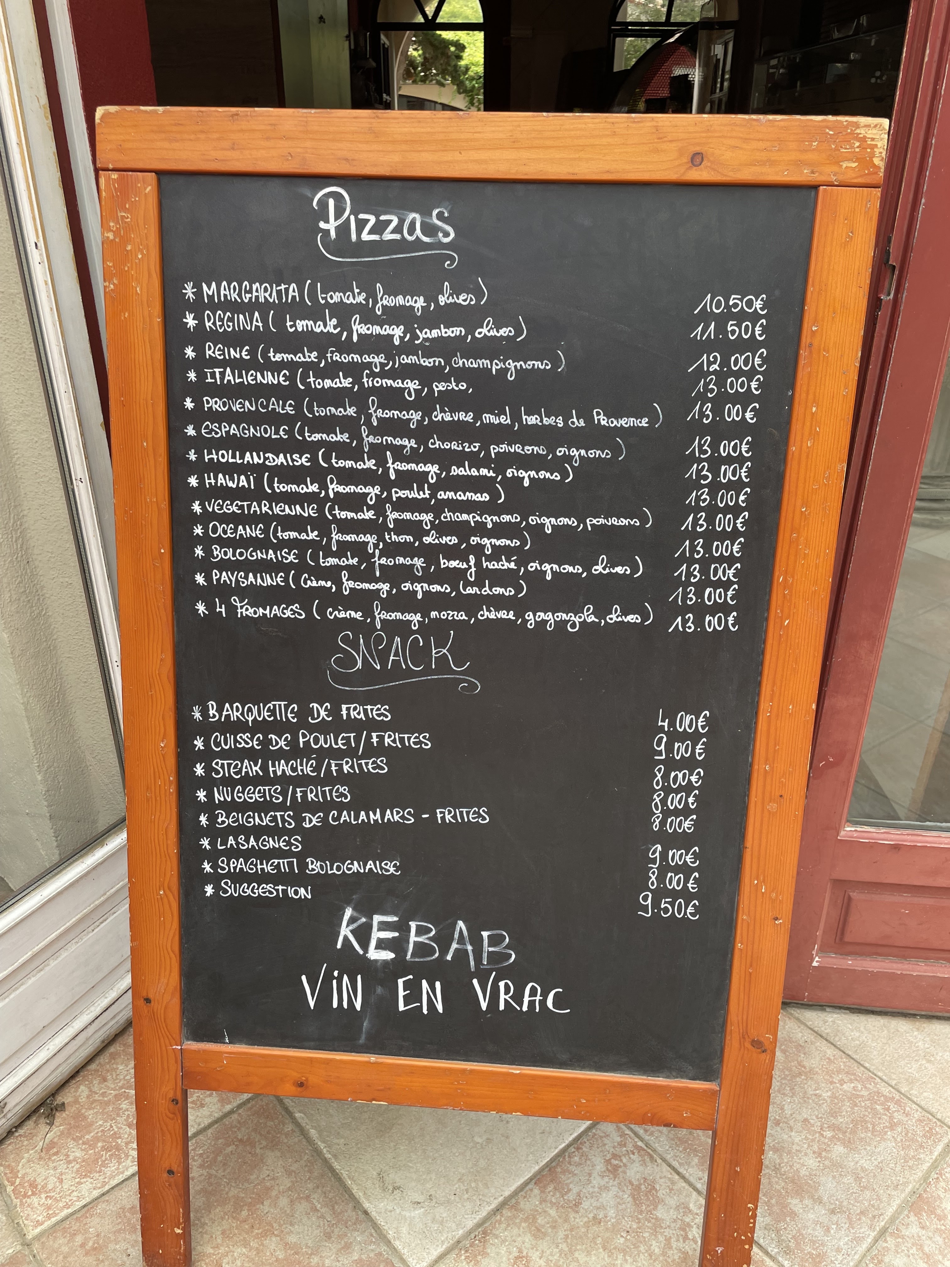 Pizza rapidement récupérée à 13 heures… super. Service amical. Mais ça a aussi son prix (Margarita & Tono ensemble 24,50€)